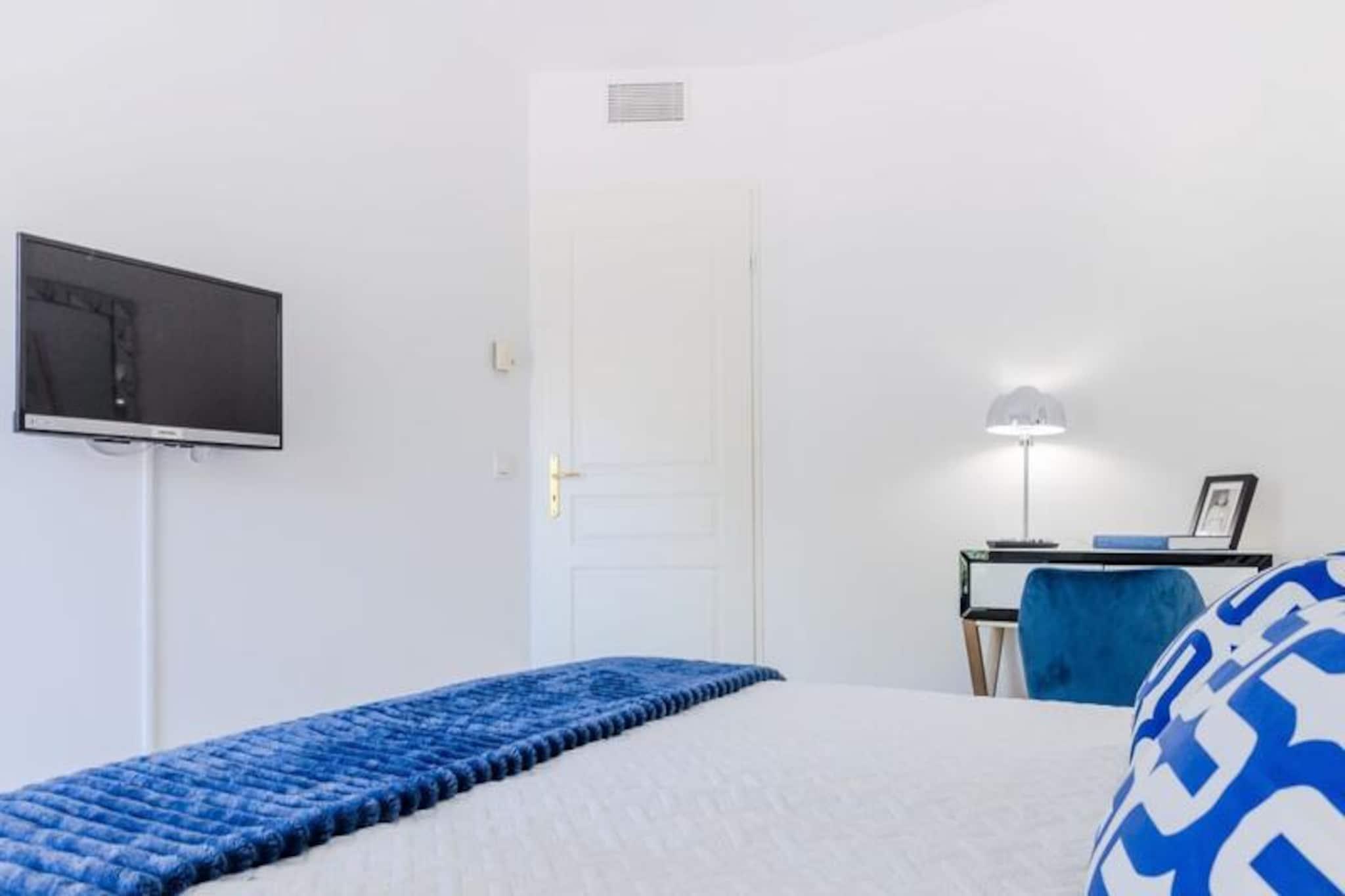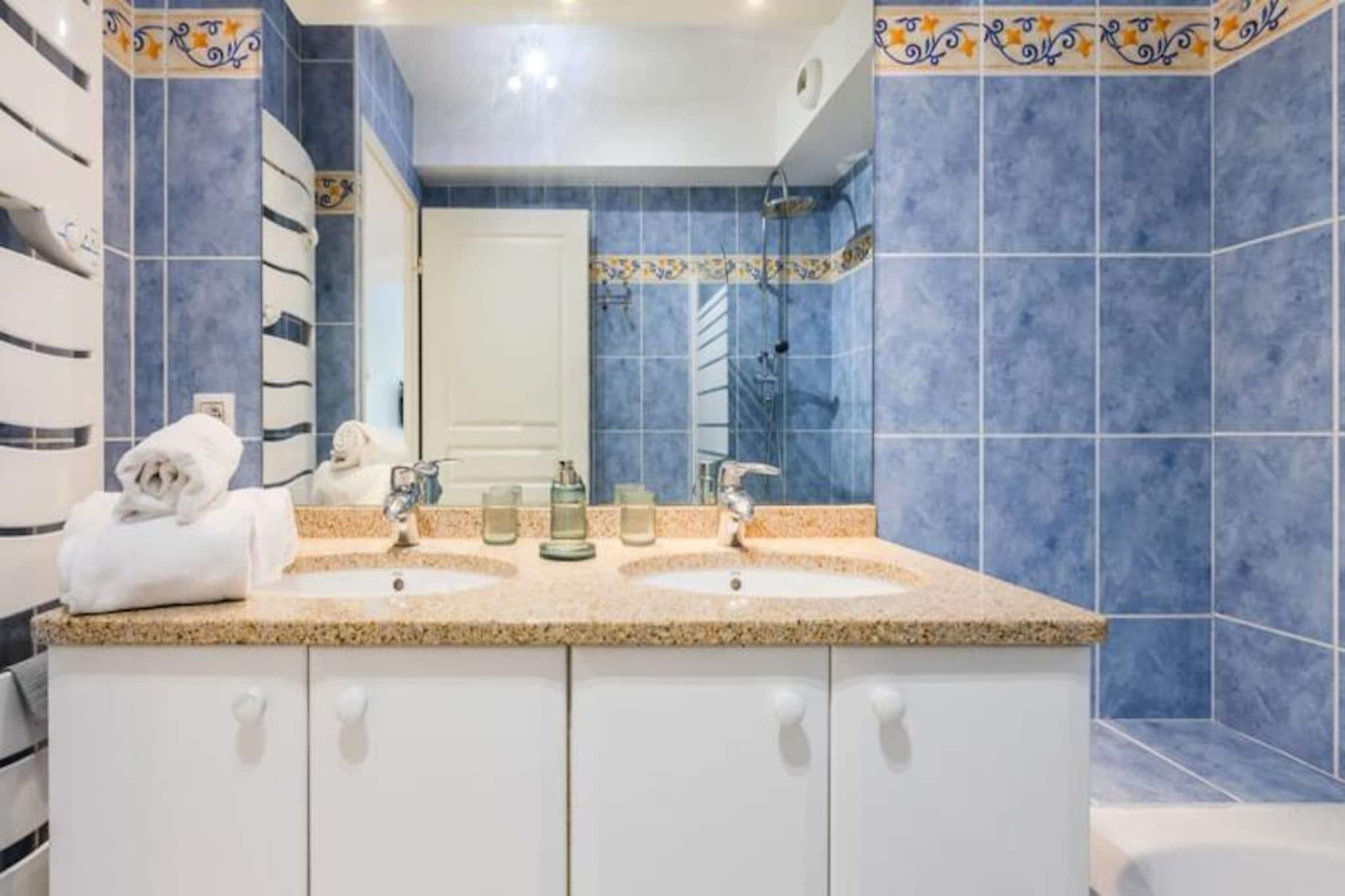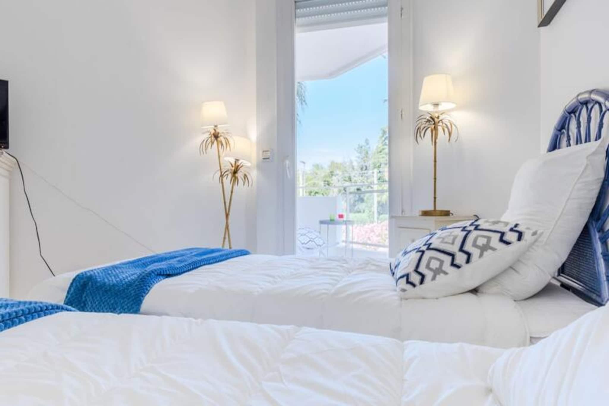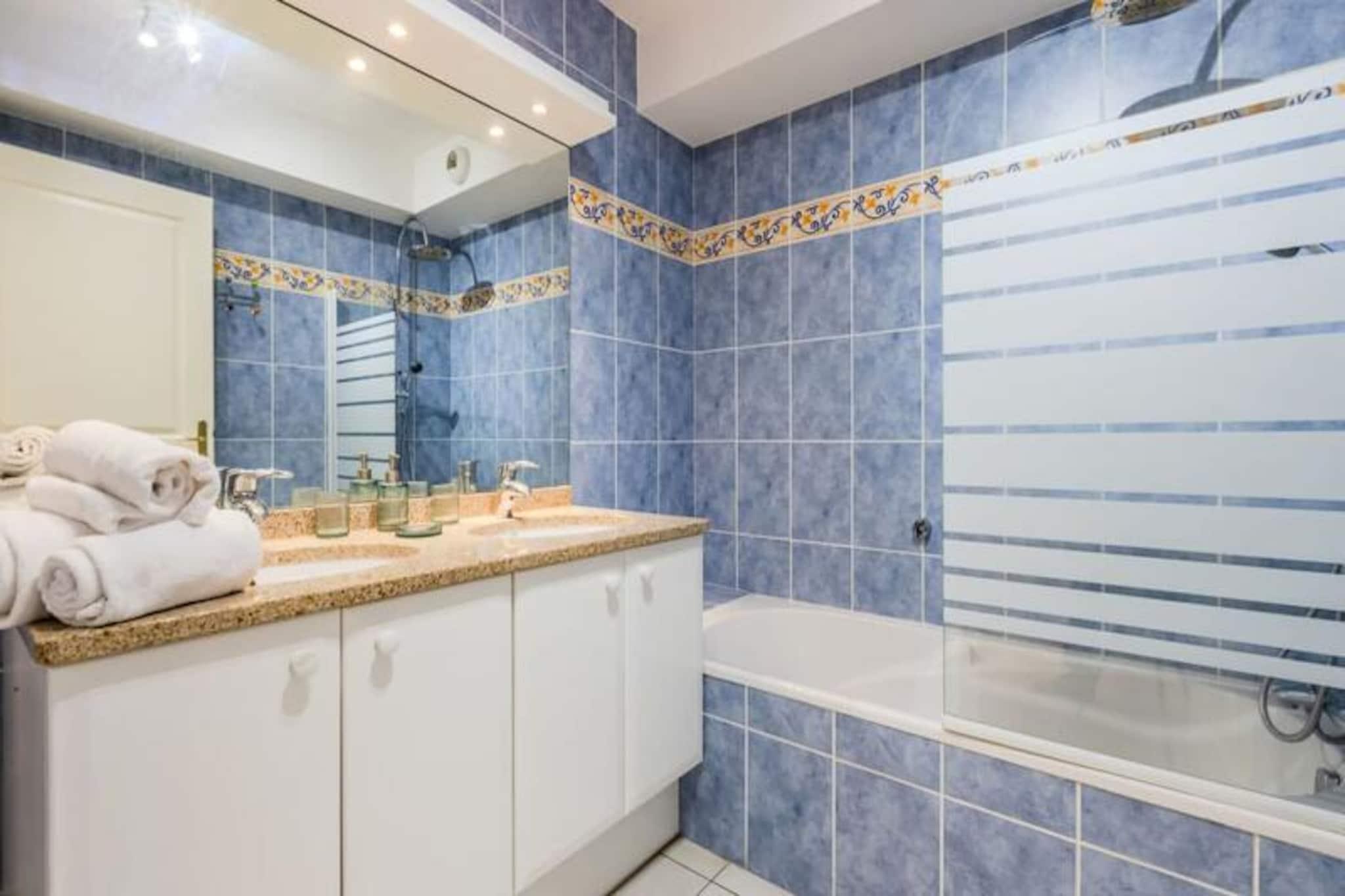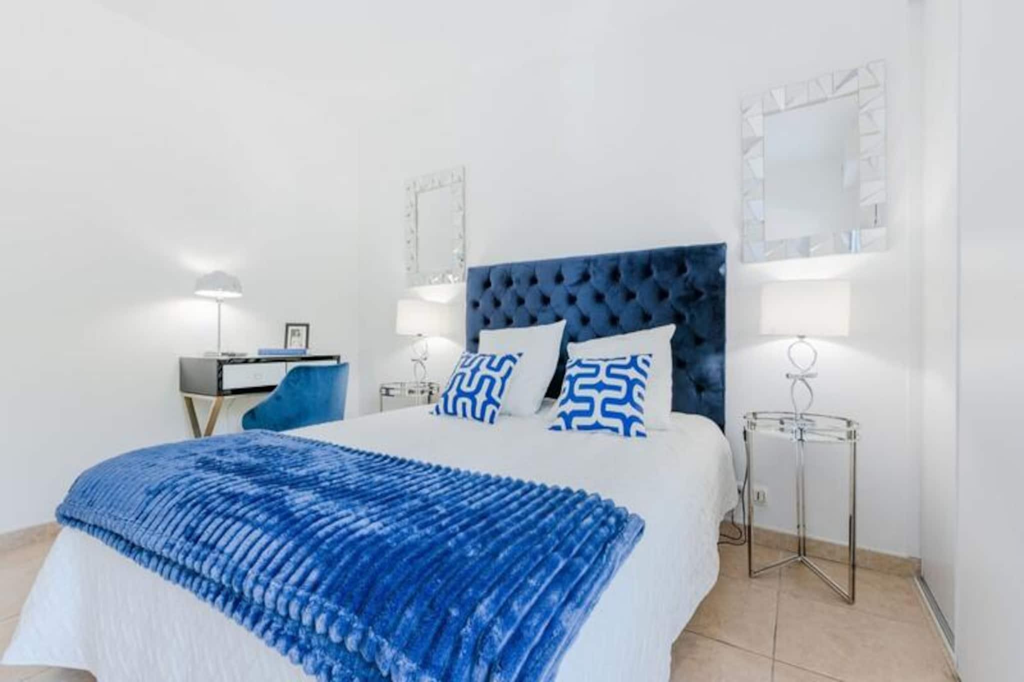 I hjertet af det prestigefyldte Palm Beach-distrikt inviterer denne elegante lejlighed på 65 m² dig til at opleve charmen ved den franske riviera. Fra det øjeblik du ankommer, sætter den rolige atmosfære i denne sikre, eksklusive bolig med en funklende swimmingpool og frodige omgivelser tonen for en virkelig afslappende ferie. Uanset om du nipper til kaffe på en af ??de to private terrasser eller nyder den delvise havudsigt, føles hvert øjeblik her som et tilflugtssted i luksus. \n\nTræd indenfor for at opdage et smukt renoveret rum designet til både komfort og stil. Den lyse stue åbner ud til en møbleret terrasse, perfekt til at slappe af i solen eller nyde spisning under åben himmel. Det åbne køkken, komplet med en morgenmadsbar og spiseplads til fire, sikrer, at hvert måltid føles specielt. De to soveværelser tilbyder en rolig tilflugtssted: det ene med to enkeltsenge, rigelig opbevaringsplads og adgang til terrassen, og det andet med en queensize-seng, et stort klædeskab og egen terrasseadgang. Et moderne badeværelse og separat toilet fuldender lejligheden, mens faciliteter som aircondition, Wi-Fi og smart-tv'er på alle værelser sikrer et problemfrit ophold.\n\nBare en kort gåtur væk finder du den gyldne sandstrand på Mouré Rouge-stranden og den pulserende atmosfære på La Croisette. Udforsk den charmerende landsby Palm Beach for friske croissanter, lokale delikatesser og butikker, eller begiv dig videre til det ikoniske Palais des Festivals og den travle Rue d'Antibes. Med privat parkering og concierge-service til din rådighed er denne lejlighed den perfekte base for at udforske Cannes og den franske riviera. Uanset om du er her for strandene, glamouren eller roen, lover denne ejendom en uforglemmelig ferie.