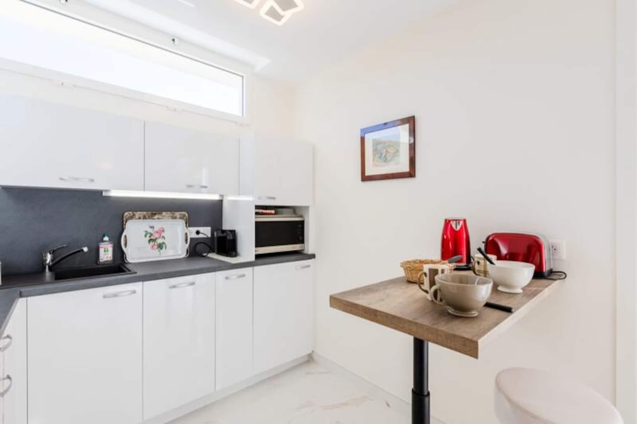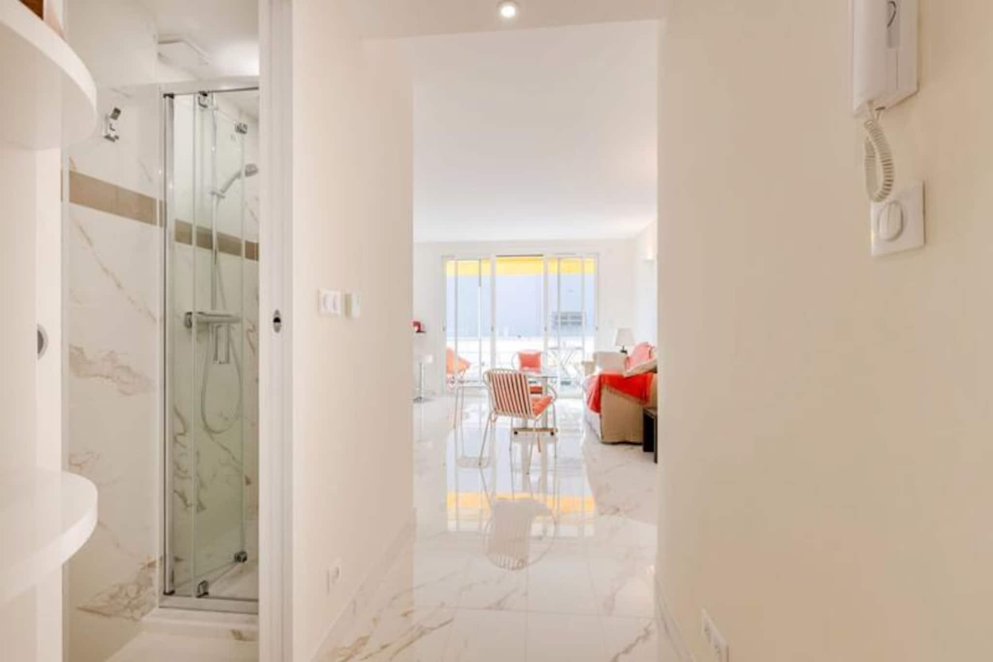 Træd ind i en verden af ??middelhavscharme og kystnær elegance i hjertet af Cannes' Palm Beach-distrikt. Denne smukt renoverede lejlighed tilbyder et roligt tilflugtssted kun få øjeblikke fra den ikoniske Croisetten, hvor den franske rivieras glamour møder roen ved havet. Forestil dig morgener med at slentre til stranden, eftermiddage med at udforske butikker og aftener med udsøgt mad med lyden af ??bølger i baggrunden. Uanset om du er her for afslapning eller eventyr, lover denne beliggenhed det hele. \n\nIndenfor er den 43 m² store lejlighed omhyggeligt designet til at blande komfort og stil. Det primære opholdsrum har et fuldt udstyret køkken med spiseplads, perfekt til at tilberede måltider med friske lokale ingredienser. Den livlige stue, komplet med en hyggelig sovesofa, åbner ud til en terrasse møbleret med havemøbler - ideel til at nyde frokoster under åben himmel eller et glas vin under stjernerne. Soveværelset, et paradis for afslapning, kan prale af en queensize-seng, rigelig garderobeplads og sin egen private balkon. Et elegant brusebadeværelse med marmoreffekt og et separat toilet fuldender boligen, hvilket sikrer, at hver detalje er skræddersyet til din komfort. \n\nTræd udenfor, og du vil være omgivet af det bedste, Cannes har at byde på. En kort gåtur ned ad Avenue Jean Cresp fører dig til Croisetten, Place de l'Étang og sandstrandene i Mouré Rouge. Inden for få minutter kan du nå Palais des Festivals, den travle Rue d'Antibes for shopping eller togstationen for at udforske Rivieraens skatte. Med aircondition, et sikkert kompleks og en stor fælles parkeringsplads kombinerer denne ejendom bekvemmelighed med luksus. \n\nUanset om du deltager i en festival, søger en romantisk ferie eller blot længes efter Rivieraens solbeskinnede charme, er denne lejlighed din port til uforglemmelige øjeblikke i Cannes.