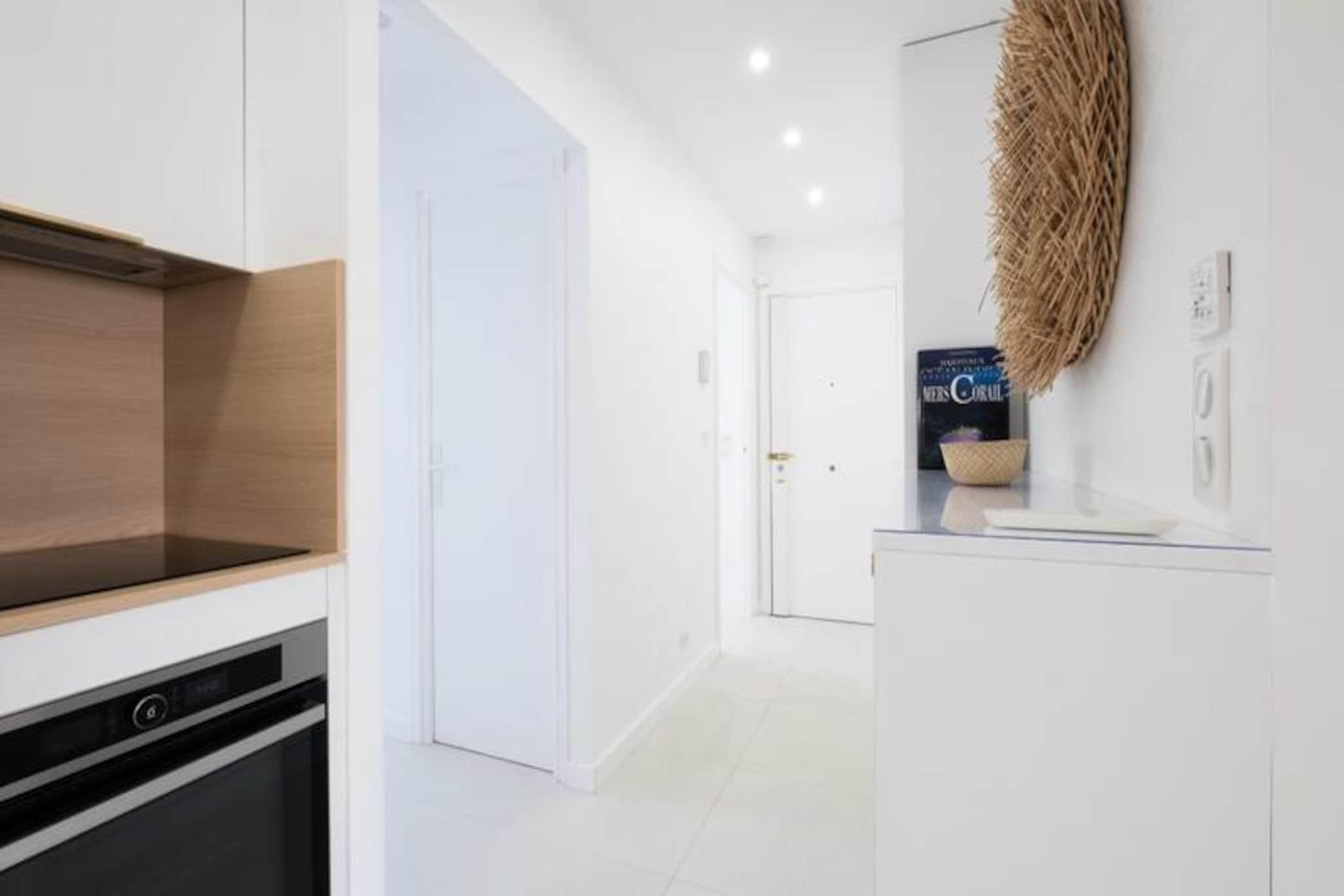 Træd ind i en verden af ??raffineret charme og kystnær elegance i denne smukt renoverede lejlighed med 2 soveværelser, perfekt beliggende i et roligt kvarter kun få øjeblikke fra den ikoniske Croisetten i Cannes. Forestil dig at slappe af på den vestvendte terrasse, mens de gyldne nuancer af middelhavssolnedgangen bader byen i varme og skaber uforglemmelige øjeblikke med familie eller venner. Dette fredelige tilflugtssted tilbyder en harmonisk blanding af moderne komfort og tidløs elegance og inviterer dig til at opleve det bedste af den franske riviera. \n\nIndenfor kan lejligheden prale af en stilfuld åben opholdsstue med en hyggelig stue med et stort fladskærms-tv, spiseplads til fire personer og et fuldt udstyret køkken med opvaskemaskine. Soveværelset tilbyder luksuriøs kingsize-seng, rigelig garderobeplads og eget fladskærms-tv, mens det andet soveværelse har to enkeltsenge og praktisk opbevaring. Et elegant brusebad og separat toilet sikrer praktisk og bekvemmelighed under dit ophold. Reversibel aircondition og Wi-Fi bidrager til komforten og sikrer en problemfri oplevelse året rundt. \n\nBare få skridt væk fører den pulserende Boulevard Eugène Tripet dig til den travle Rue d'Antibes, den glamourøse Croisette og det berømte Carlton Hotel, alt sammen inden for kort gåafstand. Uanset om du shopper, nyder cocktails ved havet eller udforsker Palais des Festivals, har du det bedste af Cannes lige ved hånden. Essentielle butikker, bagerier og et lille supermarked ligger kun to minutters gang væk, hvilket gør denne beliggenhed lige så bekvem, som den er betagende. \n\nDenne lejlighed er mere end bare et sted at bo; det er en invitation til at fordybe dig i Cannes' skønhed, kultur og luksus. Perfekt til par, familier eller venner, der søger en rolig, men central base, og den lover en uforglemmelig Riviera-flugt. Lad charmen ved denne udsøgte ejendom og dens uovertrufne beliggenhed inspirere dit næste eventyr.