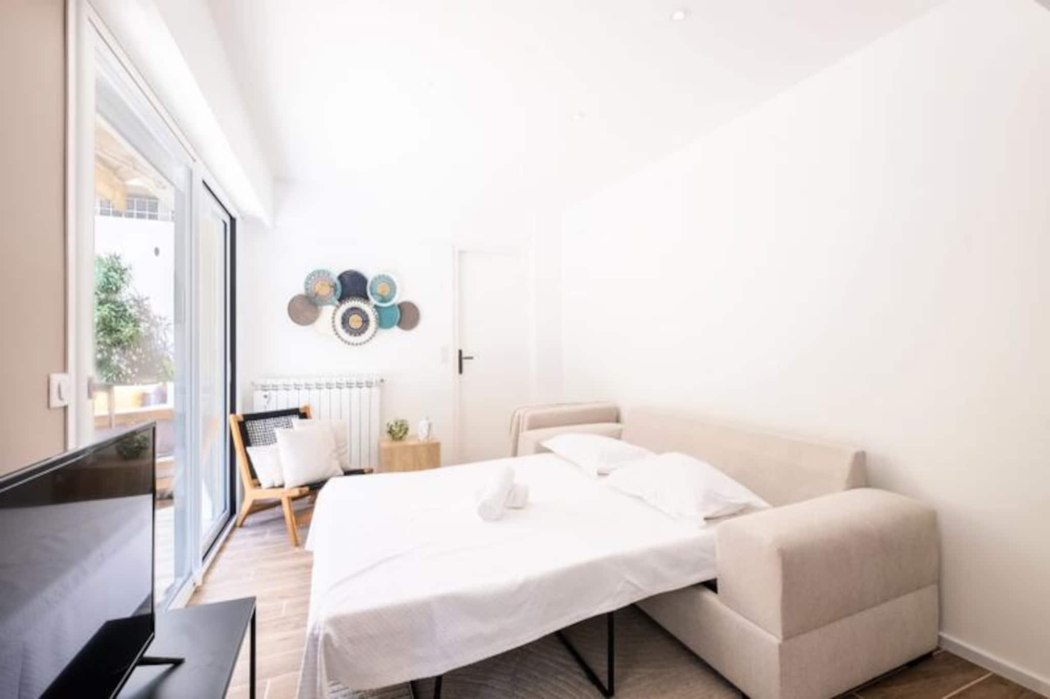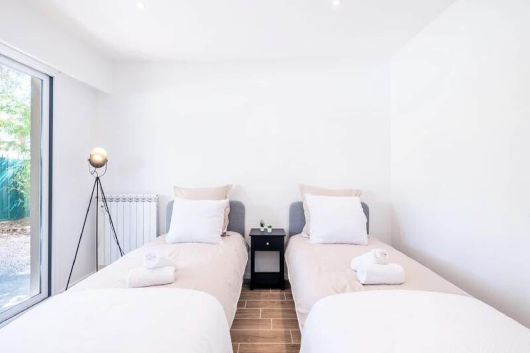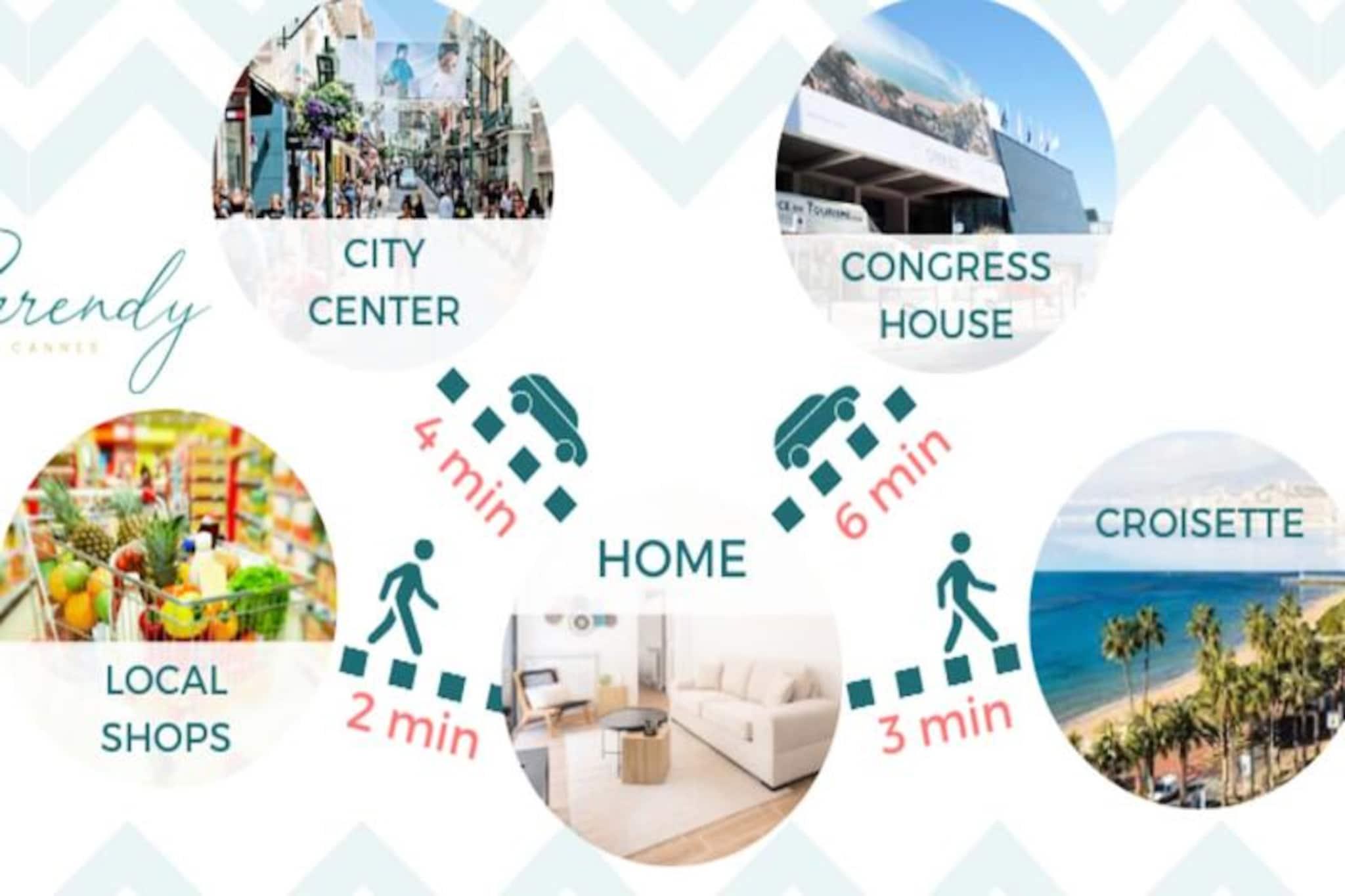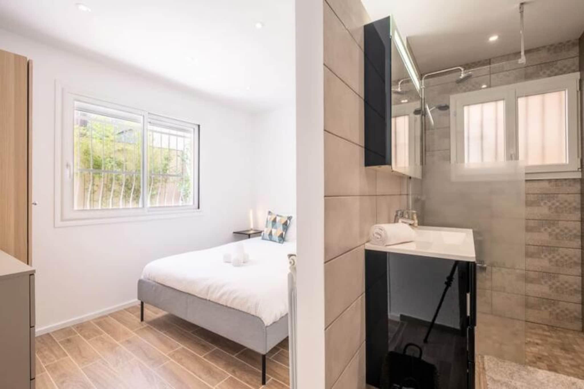 Badet i den franske rivieras gyldne lys tilbyder denne arkitektdesignede lejlighed en fredfyldt tilflugtssted kun få øjeblikke fra de ikoniske Croisette-strande i Cannes. Forestil dig at vågne op til palmernes blide raslen og træde ind i din private have, hvor middelhavsbrisen sætter den perfekte tone for din dag. Uanset om du nipper til kaffe på terrassen eller nyder en middag under stjernerne, lover dette rolige tilflugtssted et uforglemmeligt ophold. \n\nIndenfor kan lejligheden prale af 70 m² omhyggeligt udvalgt plads, der blander moderne elegance med varme, indbydende detaljer. Stuen åbner direkte ud til haven med en blød sofa og smart-tv til afslappede aftener. Det åbne køkken er fuldt udstyret, hvilket gør det nemt at tilberede måltider med friske lokale ingredienser. To smukt indrettede soveværelser tilbyder afslappende oaser: master-soveværelset med en queensize-seng og adgang til terrassen, og det andet med to enkeltsenge og udsigt over haven. Et elegant badeværelse med badekar og separat toilet fuldender planløsningen og sikrer komfort for alle gæster. Aircondition i soveværelserne og termoruder garanterer fredelige nætter. \n\nDenne lejlighed ligger i en sikker og eksklusiv bolig, kun 4 minutters gang fra Croisette-strandene og er omgivet af bekvemme faciliteter, herunder bagerier, delikatesseforretninger og supermarkeder. Besøg Cannes' glamourøse bymidte, charmen i Juan-les-Pins eller parfumerierne i Grasse. Med concierge-service til din rådighed er der sørget for alle detaljer under dit ophold. \n\nUanset om du søger afslapning, eventyr eller en smag af Riviera-luksus, er denne lejlighed din port til det bedste af Côte d'Azur.
