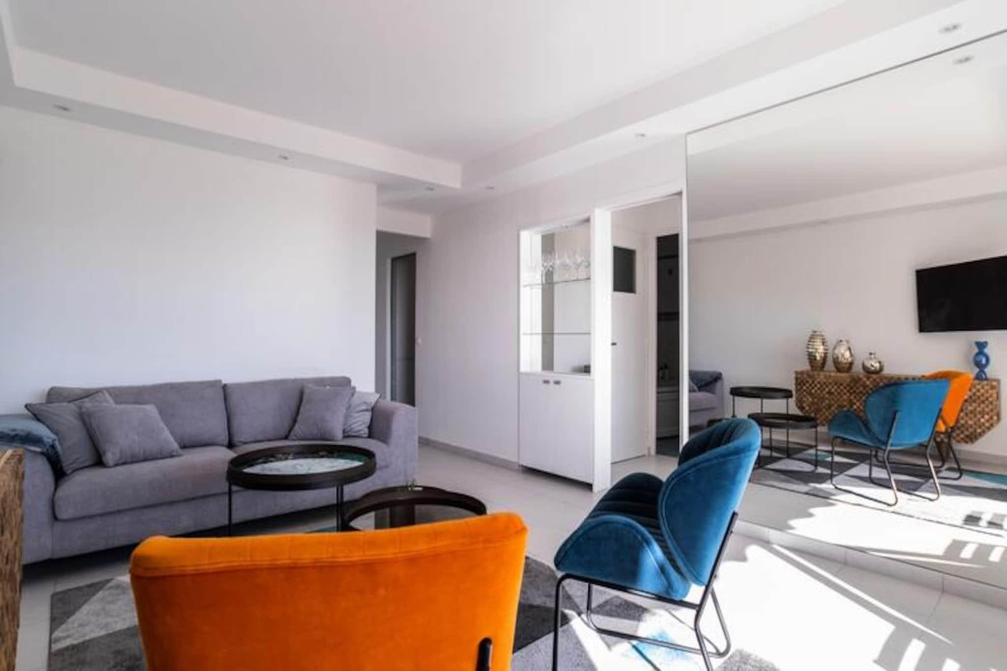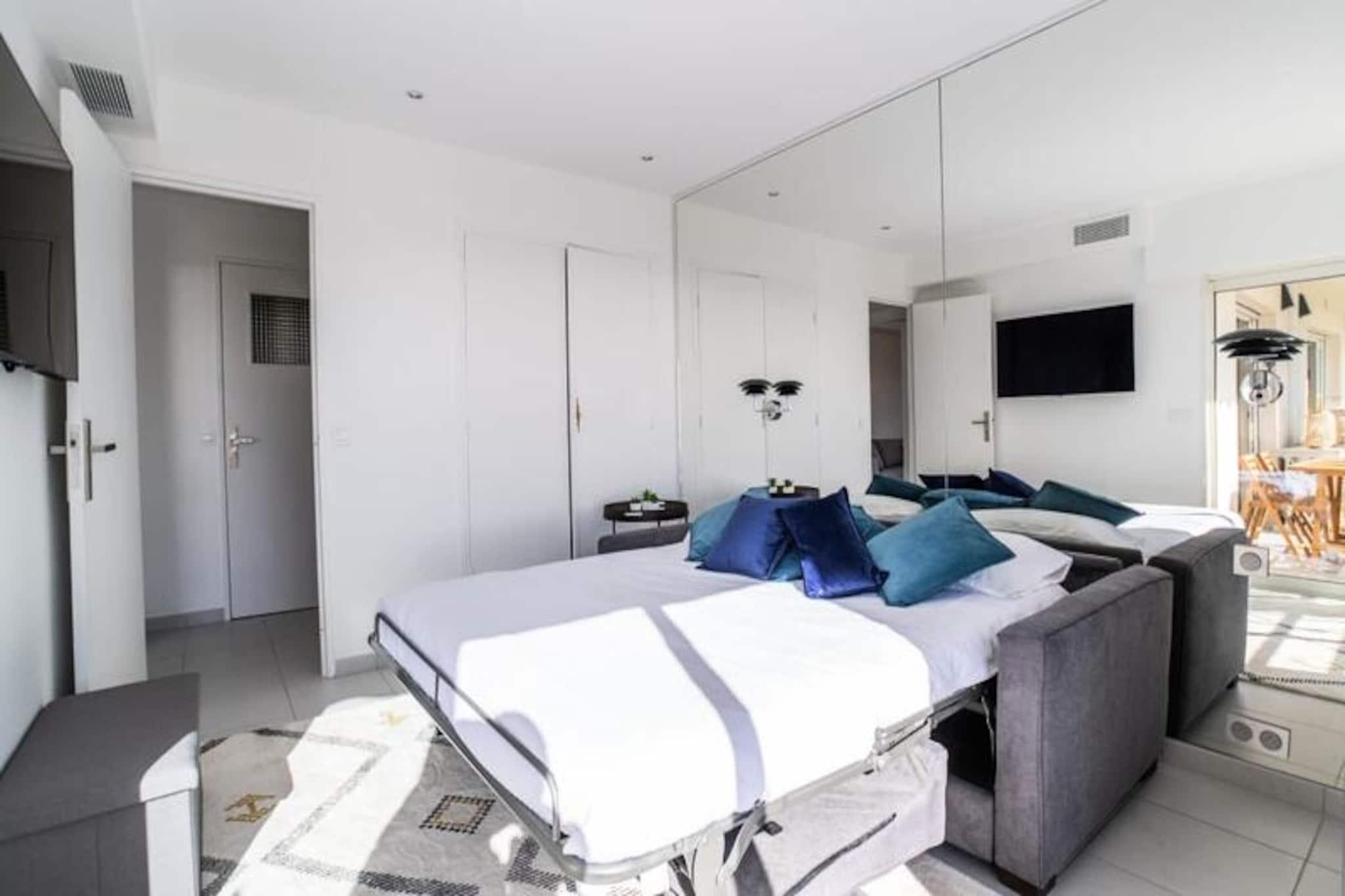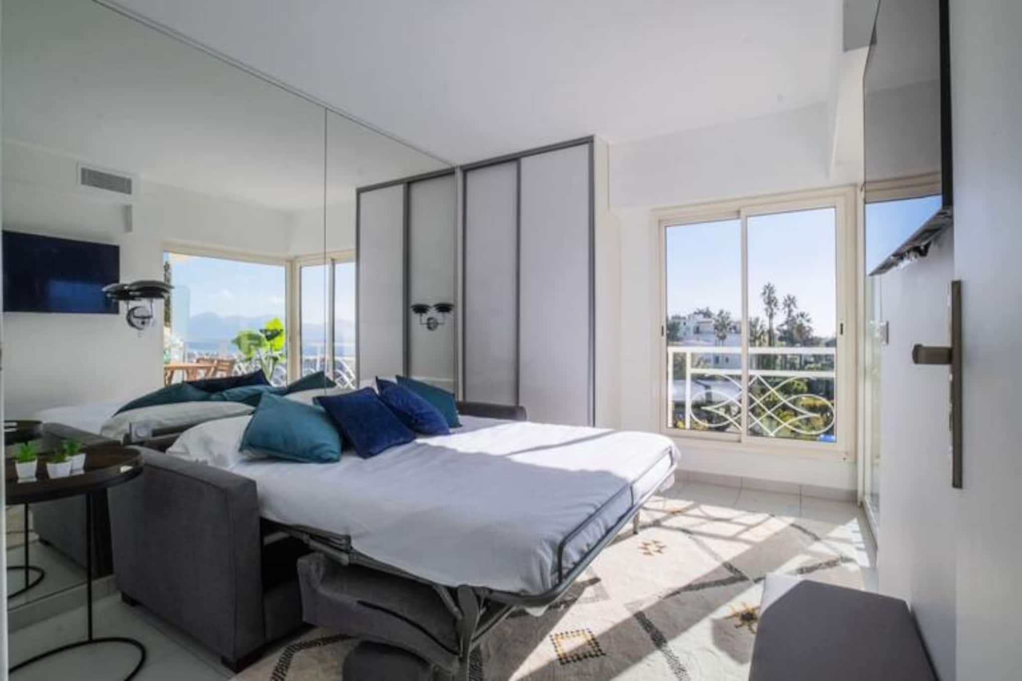 Med udsigt over den glitrende middelhavskyst tilbyder denne elegante lejlighed med to soveværelser i Cannes et roligt tilflugtssted i det prestigefyldte Lower Californie-distrikt. Forestil dig at vågne op til den blide havbrise og træde ud på din private terrasse, hvor den betagende udsigt over det azurblå vand og boligens funklende swimmingpool sætter tonen for en perfekt dag. Uanset om du er her for afslapning eller eventyr, lover denne ejendom en uforglemmelig oplevelse på et af de mest eftertragtede steder i den franske riviera. \n\nLejligheden er omhyggeligt designet til at kombinere komfort og elegance. Den lyse og farverige stue har smagfuld indretning, et smart-tv og direkte adgang til terrassen, hvilket skaber en problemfri inde-udendørs opholdsoplevelse. Det fuldt udstyrede separate køkken med opvaskemaskine gør madlavning til en fornøjelse. Soveværelset kan prale af en queensize-seng, fladskærms-tv og rigelig opbevaringsplads, mens det andet soveværelse tilbyder en hyggelig sovesofa, tv og adgang til terrassen. To moderne badeværelser, herunder et med integreret toilet, sikrer bekvemmelighed og privatliv for alle gæster. \n\nTræd udenfor og oplev den pulserende by Cannes kun få øjeblikke væk. En kort gåtur fører dig til den ikoniske Rue d'Antibes, de glamourøse strande ved La Croisette og Port Canto, hvor du kan nyde Rivieraens charme. Nyd cocktails på Bijou Plage, eller udforsk de lokale butikker og restauranter, der gør Cannes til en verdenskendt destination. \n\nUanset om du er her for at slappe af ved poolen, udforske byens kulturskatte eller blot sole dig i middelhavssolen, tilbyder denne lejlighed den perfekte blanding af luksus og beliggenhed. Med sikker parkering, aircondition og concierge-service vil dit ophold være lige så ubesværet, som det er mindeværdigt.