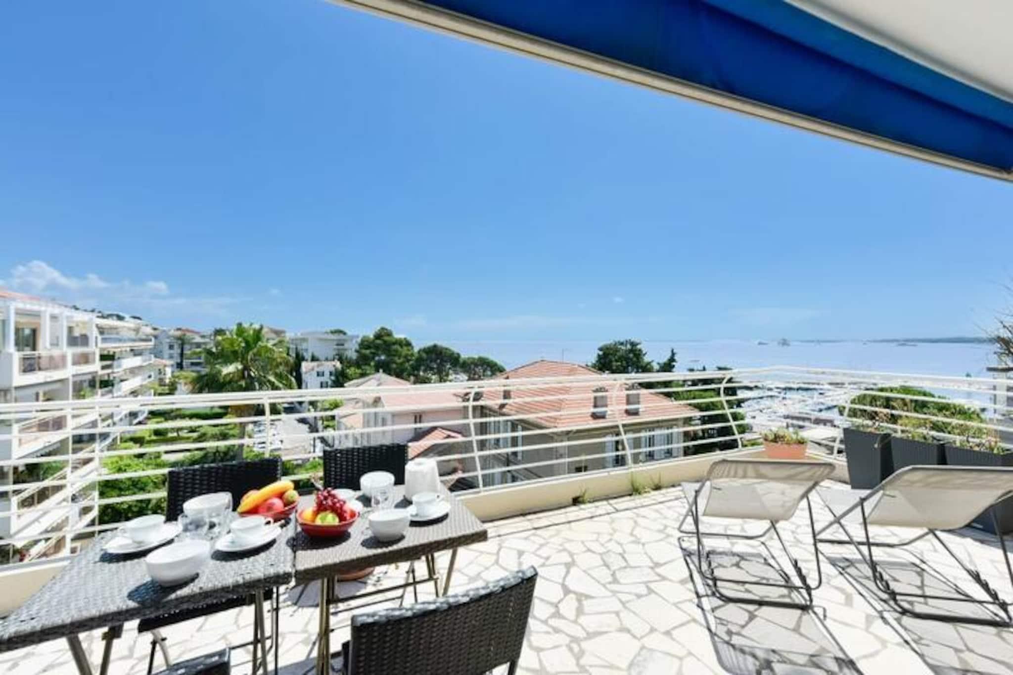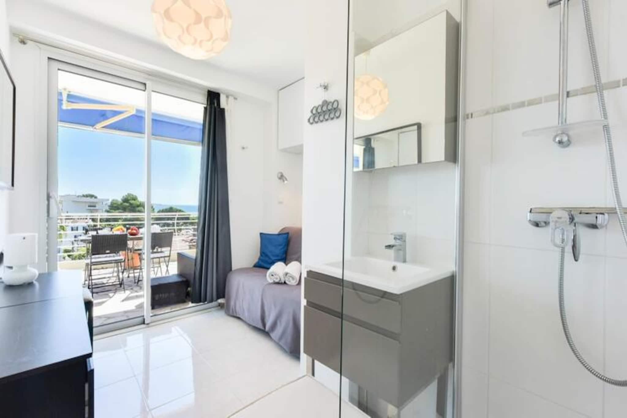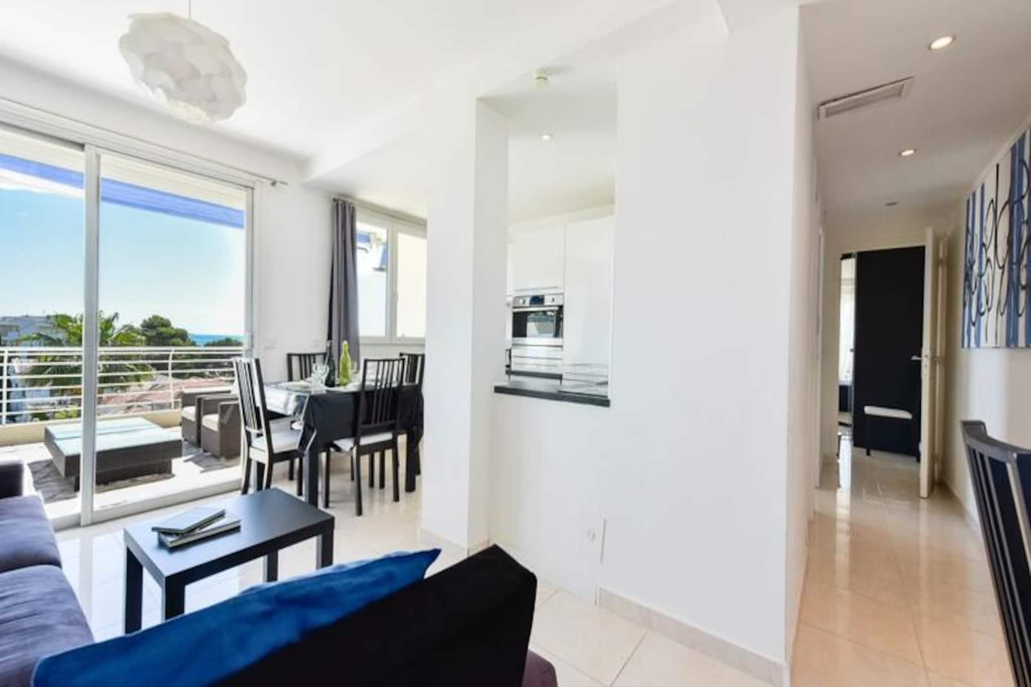 Beliggende kun 150 meter fra den fredfyldte Mouré Rouge havn og dens indbydende strande, tilbyder denne stilfulde lejlighed en rolig oase ved havet med et strejf af elegance. Fra den store terrasse på øverste etage kan du nyde den betagende udsigt, der strækker sig over det azurblå vand til de fortryllende Lérinsøer, en perfekt baggrund for din morgenkaffe eller aftenaperitif. Det fredelige kvarter sikrer et afslappende tilflugtssted, samtidig med at du holder dig tæt på Cannes' pulserende hjerte. Indenfor er lejligheden omhyggeligt designet til komfort og bekvemmelighed. Stuen med sin hyggelige sofa, tv og spiseplads til fire personer åbner ud til terrassen, hvilket skaber en problemfri inde-udendørs forbindelse. Det moderne køkken er fuldt udstyret, hvilket gør det nemt at tilberede måltider med friske lokale ingredienser. Hvert af de to soveværelser har eget brusebad og håndvask, hvilket sikrer privatliv og komfort for alle gæster. Termoruder og reversibel aircondition lover afslappende nætter, mens et separat toilet på gangen giver ekstra bekvemmelighed. Gå udenfor og find dig selv i gåafstand fra Mouré Rouge-stranden, hvor du kan dyppe tæerne i Middelhavet eller nyde et måltid på en charmerende restaurant ved havet. Det nærliggende Palm Beach-område byder på en dejlig landsbyatmosfære med lokale butikker, bagerier og markeder. For dem, der søger et strejf af glamour, ligger den ikoniske Croisette og Palais des Festivals kun få minutter væk, sammen med luksusbutikkerne på Rue d'Antibes. Uanset om du er her for at slappe af ved havet, udforske de kulturelle perler på den franske riviera eller forkæle dig selv med Cannes' pulserende natteliv, er denne lejlighed den perfekte base for en uforglemmelig ferie. Med sin førsteklasses beliggenhed, moderne faciliteter og fantastiske udsigt er det et paradis for rejsende, der ønsker at opleve det bedste af Côte d'Azur.