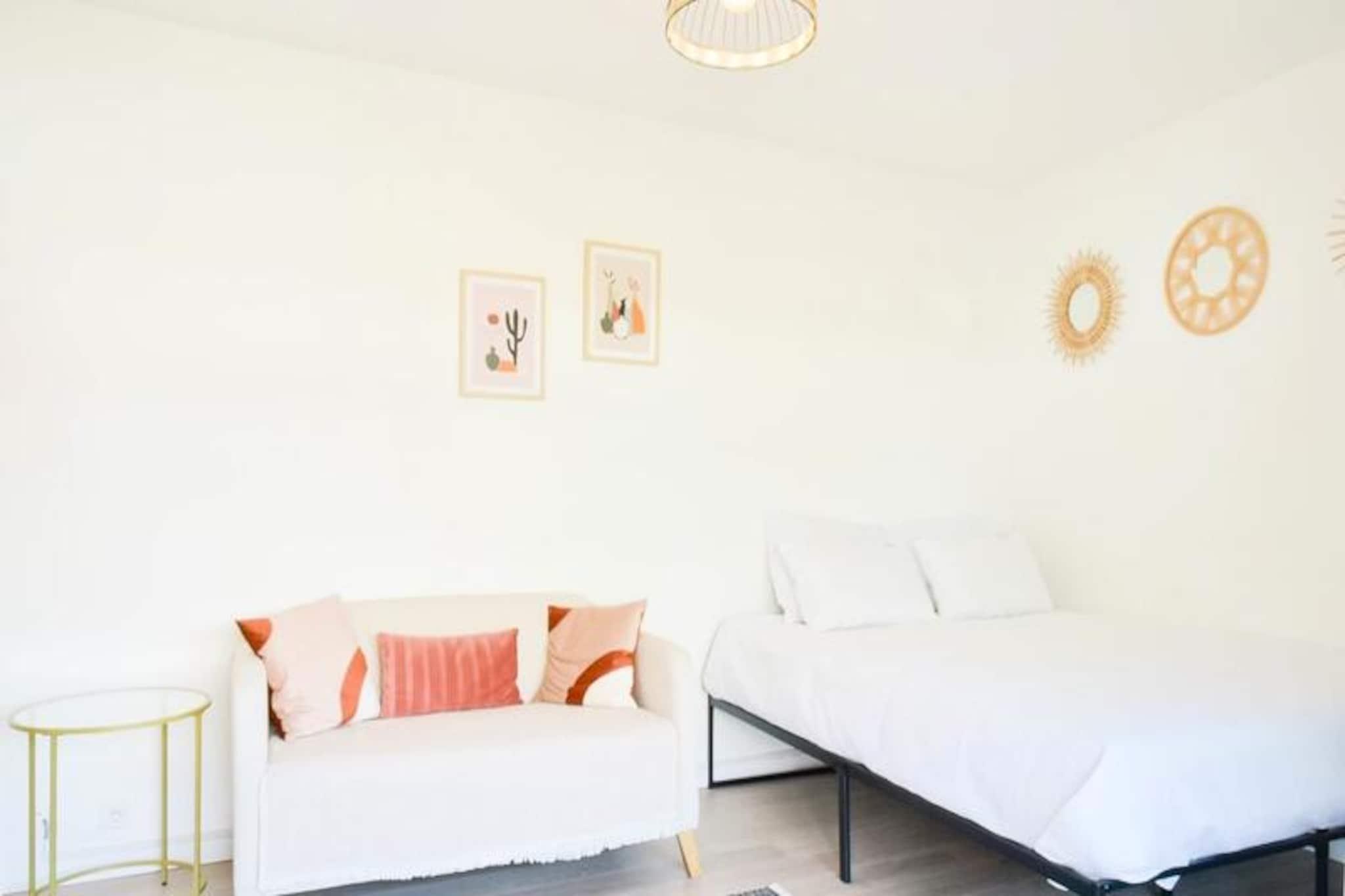 Midt i den pulserende charme i Cannes' Palm Beach-kvarter tilbyder denne elegante lejlighed på 25 m² en perfekt blanding af bykomfort og kystnær ro. Forestil dig at vågne op til den blide middelhavsbrise, træde ud på din rummelige terrasse for en afslappet morgenmad og slentre kun 300 meter til sandstranden ved Mouré Rouge-stranden. Uanset om du søger en romantisk ferie eller et fredeligt tilflugtssted, tilbyder denne ejendom idylliske omgivelser for dit ophold. De livlige gader omkring lejligheden er fyldt med lokale butikker, herunder en slagter, bageri, fiskehandler og supermarked, hvilket sikrer, at alt det nødvendige er kun få skridt væk. \n\nIndenfor er lejligheden omhyggeligt designet til komfort og stil. Opholdsstuen har en hyggelig queensize-seng, en sofa og et tv-hjørne, alt sammen badet i naturligt lys med direkte adgang til terrassen. Det åbne køkken med morgenmadsbar inviterer dig til at tilberede måltider til to, mens det moderne badeværelse har en vaskemaskine for ekstra bekvemmelighed. Selve terrassen er et højdepunkt med en spiseplads til fire og et hyggeligt opholdsområde med havestole - perfekt til afslapning efter en dag med at udforske Cannes. Termoruder og reversibel aircondition sikrer afslappende nætter og en behagelig atmosfære året rundt.\n\nTræd udenfor og fordyb dig i den unikke atmosfære i Palm Beach. En kort gåtur ned ad Avenue de Lérins fører dig til stranden eller den ikoniske Croisette, hvor luksuriøse butikker og fine restauranter venter. Inden for få minutter kan du nå Palais des Festivals eller hoppe på et tog for at opdage nærliggende perler som Antibes, Nice og Monaco. Med gratis gadeparkering, inkluderet sengelinned og en concierge-service, der imødekommer alle dine behov, er denne lejlighed din port til det bedste af den franske riviera. Lad Cannes' charme fange dig og skab uforglemmelige minder i dette exceptionelle feriehus.