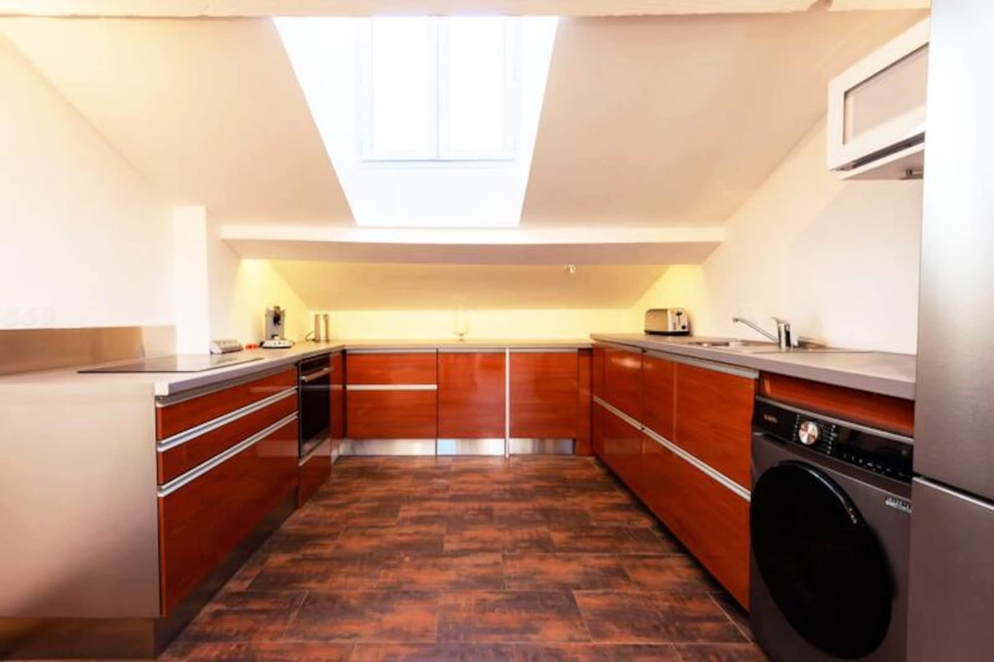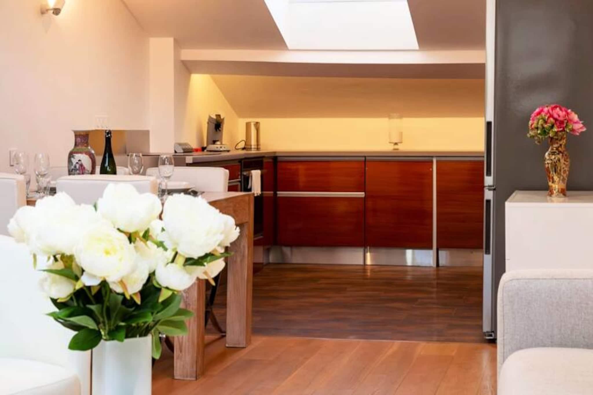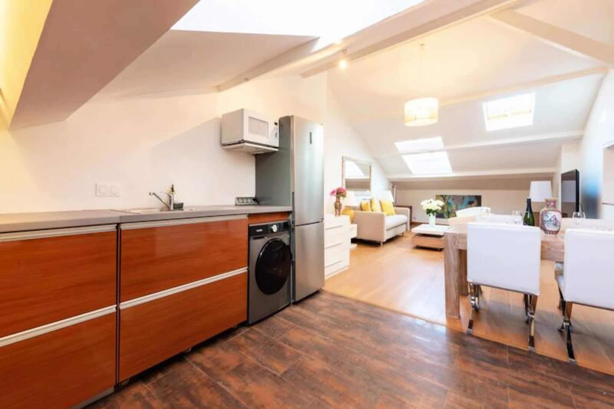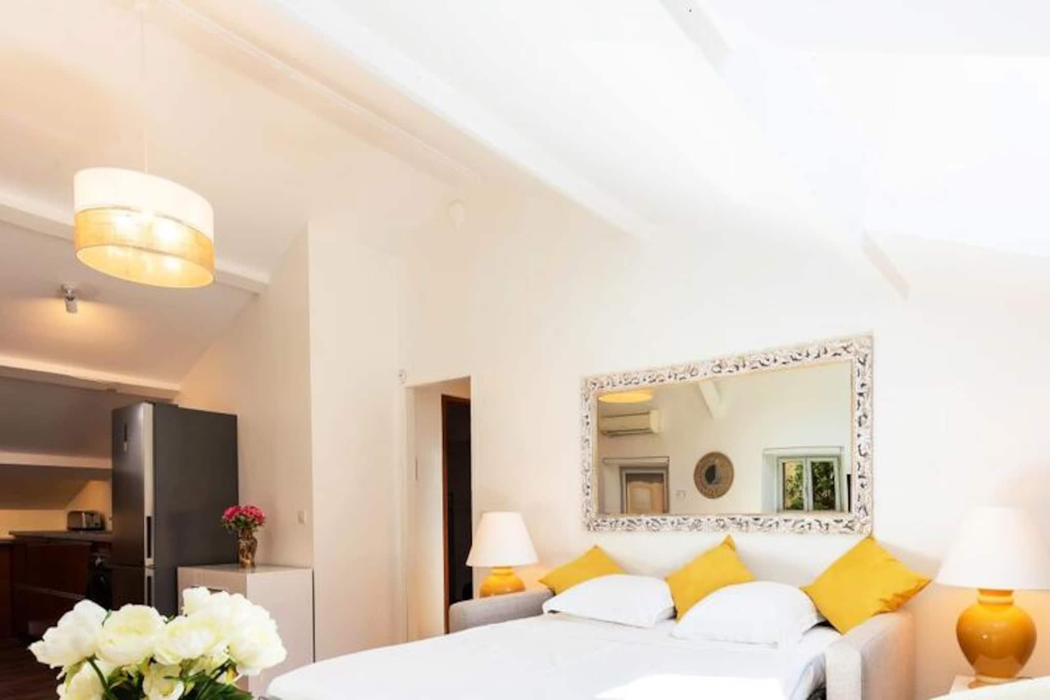 Midt i Cannes' pulserende charme tilbyder denne elegante lejlighed på øverste etage på Rue d'Antibes et roligt tilflugtssted kun få øjeblikke fra byens mest ikoniske attraktioner. Forestil dig at træde ud af din dør og slentre 300 meter til Palais des Festivals eller den solbeskinnede Croisette, mens den travle Rue d'Antibes, kendt for sine luksusshopping, praktisk talt er lige uden for døren. Dette er den perfekte blanding af sofistikering og bekvemmelighed, ideel for dem, der ønsker at fordybe sig i den franske rivieras glamour. \n\nLejligheden er på 70 m² og er blevet omhyggeligt renoveret for at kombinere moderne komfort med tidløs stil. Den har plads til op til fire gæster og har en rummelig stue med smagfuld indretning, en stor sofa og et smart-tv til hyggelige aftener. Det åbne køkken er fuldt udstyret og er problemfrit forbundet med spiseområdet til fire personer. Det rolige soveværelse kan prale af en queensize-seng, mens stuen tilbyder en lige så komfortabel queensize-sovesofa. Et luksuriøst badeværelse med både bruser og badekar samt et separat toilet sikrer praktisk anvendelighed og afslapning. Yderligere faciliteter inkluderer fiberoptisk Wi-Fi, aircondition, opvaskemaskine, vaskemaskine, tørretumbler og elevator.\n\nBeliggenheden er uovertruffen. Cannes togstation ligger kun tre minutters gang væk, og parkeringshuset Gray d'Albion ligger bekvemt 50 meter fra bygningen. Inden for en kort gåtur finder du et væld af fine spisemuligheder, livlige barer og lokale butikker, hvilket gør det nemt at nyde byens pulserende livsstil. For dem, der ankommer med fly, ligger Nice Côte d'Azur Lufthavn kun 30 minutters kørsel derfra.\n\nUanset om du besøger Cannes på forretningsrejse eller i ferien, tilbyder denne lejlighed en rolig oase midt i Cannes' spændende by. Med concierge-service og betænksomme detaljer som sengetøj og daglige fornødenheder lover dit ophold at være lige så ubesværet, som det er uforglemmeligt. Oplev den franske rivieras charme fra dette stilfulde og centralt beliggende tilflugtssted.