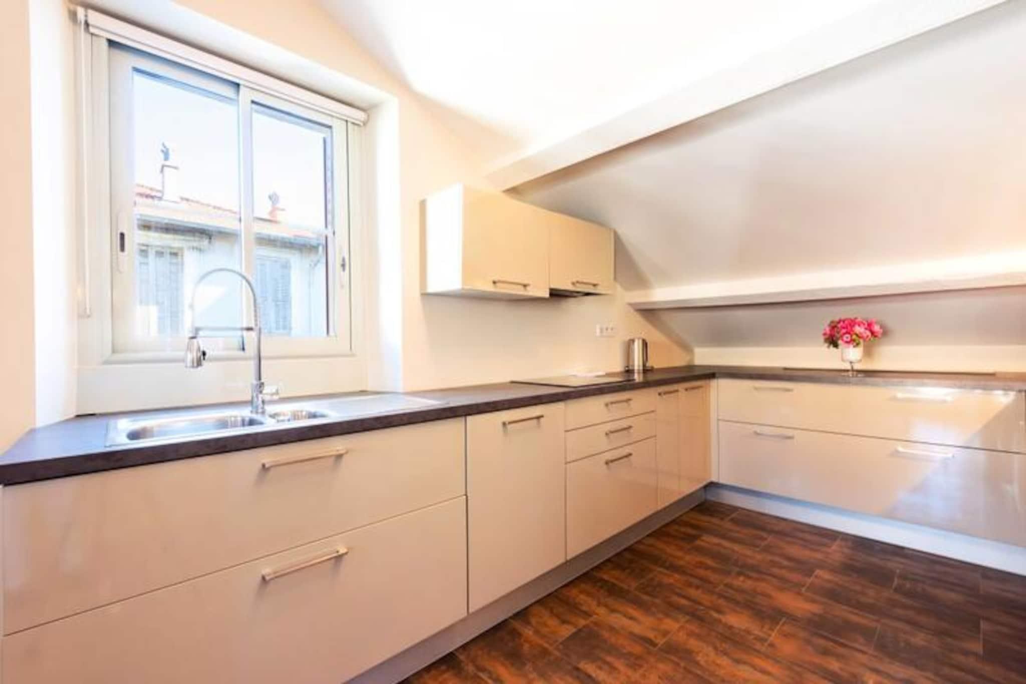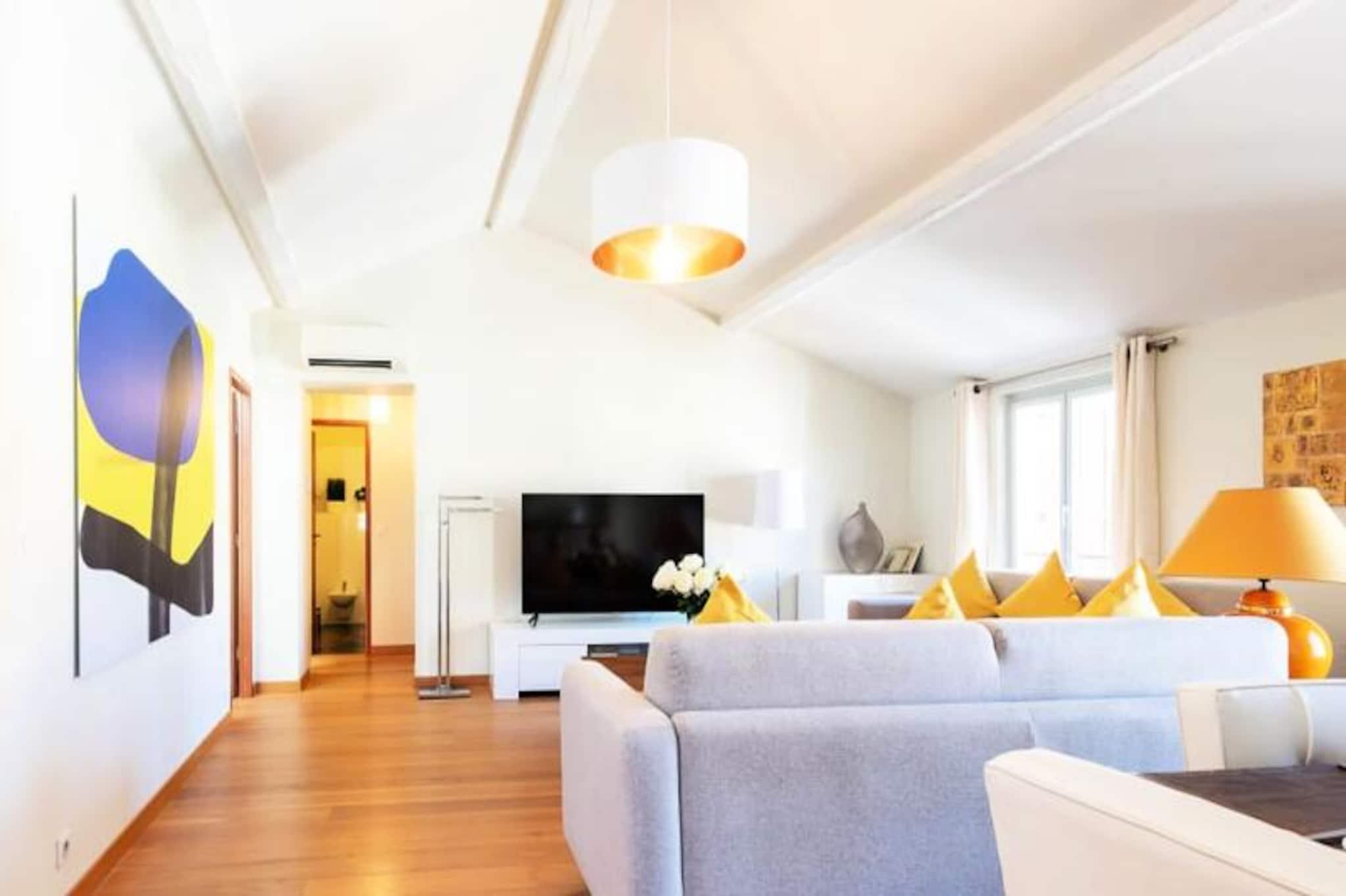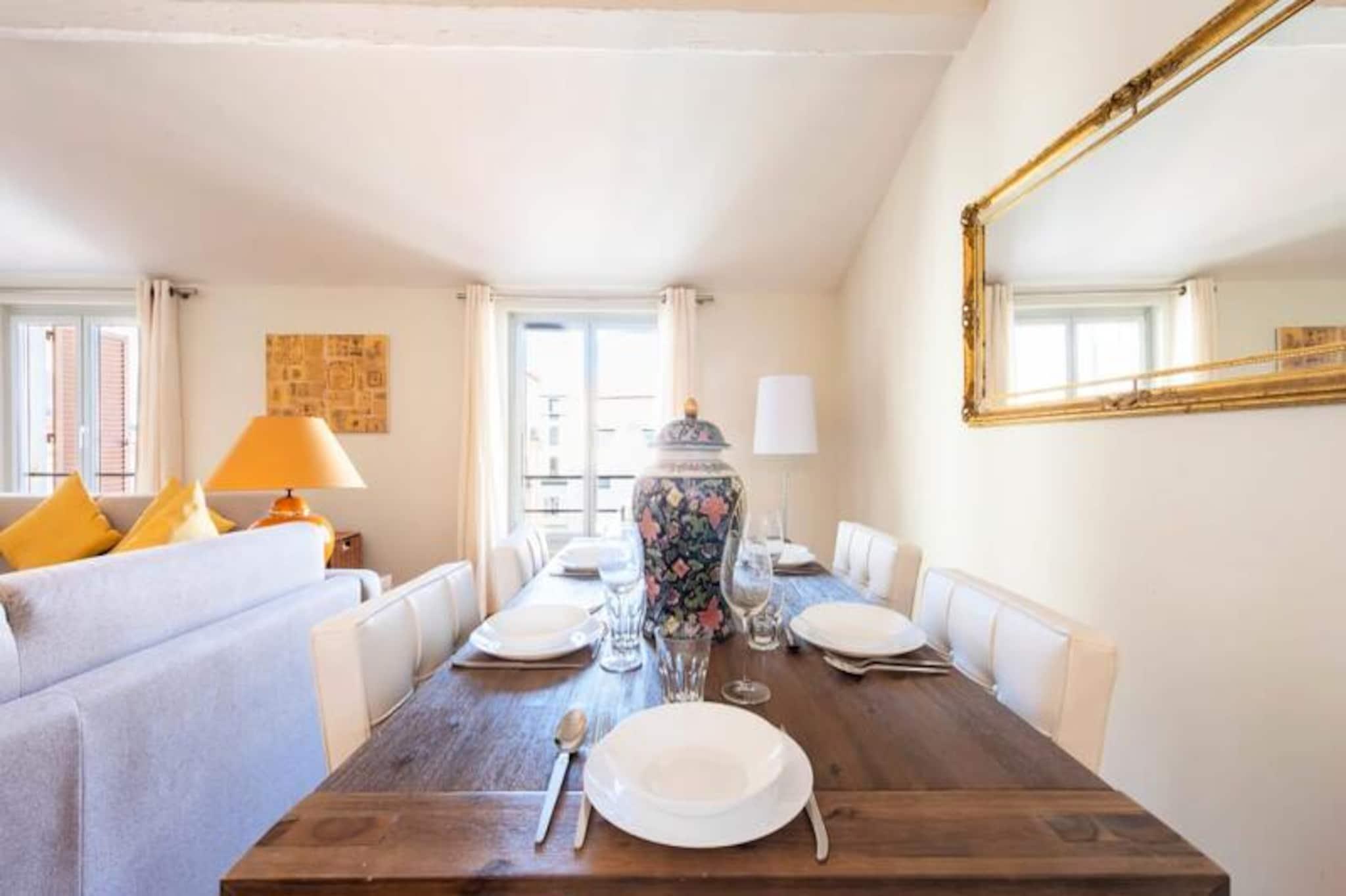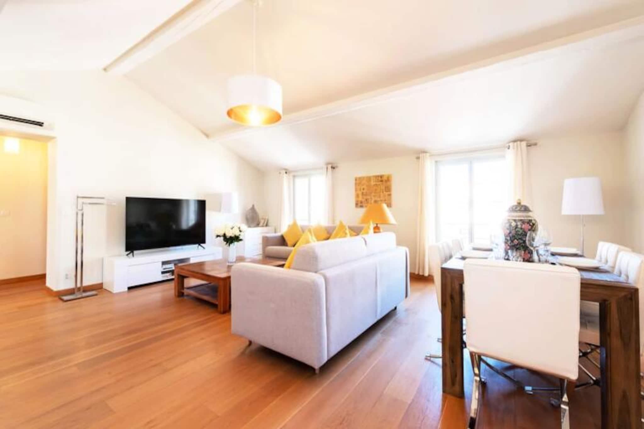 I hjertet af Cannes, hvor elegance møder byens pulserende puls, tilbyder denne fantastiske lejlighed på øverste etage på Rue d'Antibes en rolig oase kun få skridt fra det ikoniske Palais des Festivals. Forestil dig morgener fyldt med sollys, der strømmer ind gennem store vinduer, eftermiddage med at udforske de luksuriøse butikker på Rue d'Antibes og aftener med udsøgt mad langs Croisetten. Dette rummelige 80 m² store tilflugtssted er perfekt til dem, der søger både ro og nærhed til Cannes' mest berømte attraktioner. \n\nIndenfor udstråler lejligheden sofistikering med sin stilfulde indretning og helt nye møbler designet til ultimativ komfort. Den store stue har bløde sofaer, et storskærms-smart-tv og en spiseplads til seks personer, der er problemfrit forbundet med et fuldt udstyret åbent køkken. To smukt indrettede soveværelser tilbyder afslappende nætter: det ene med en queensize-seng og eget badeværelse, og det andet med to enkeltsenge. En queensize-sovesofa i stuen giver ekstra soveplads. Moderne bekvemmeligheder såsom fiberoptisk Wi-Fi, aircondition, opvaskemaskine, vaskemaskine og tørretumbler sikrer et problemfrit ophold. En elevator gør det nemmere, og parkering ved Gray d'Albion ligger kun 50 meter væk. \n\nTræd udenfor og fordyb dig i Cannes' charme. Palais des Festivals ligger kun 300 meter væk, hvilket gør denne lejlighed ideel for festivalgæster. Tog- og busstationerne ligger inden for tre minutters gang, hvilket giver nem adgang til den omkringliggende Riviera. Gå en tur langs Croisetten, nyd mad i verdensklasse på nærliggende restauranter som New-York og Zoa Bar, eller udforsk de pulserende lokale butikker. Uanset om du er her på forretningsrejse eller i ferien, placerer denne lejlighed dig i centrum af det hele. \n\nVælg denne exceptionelle ejendom til et mindeværdigt ophold i Cannes, hvor luksus, bekvemmelighed og den franske rivieras charme går hånd i hånd.