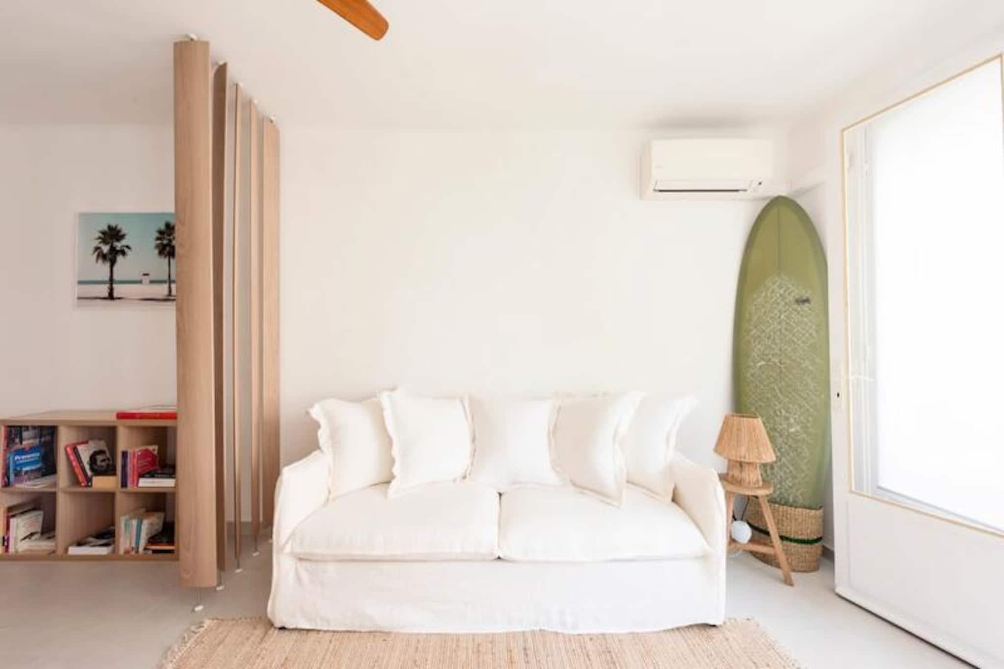 Badet i den franske rivieras gyldne lys tilbyder denne nyrenoverede lejlighed i det prestigefyldte Palm Beach-distrikt i Cannes en uovertruffen blanding af komfort og bekvemmelighed. Forestil dig at vågne op til den blide havbrise og slentre til de nærliggende strande eller den ikoniske Croisetten, kun få minutter væk. Den pulserende, men rolige atmosfære i Palm Beach skaber den perfekte baggrund for et mindeværdigt ophold på en af ??verdens mest glamourøse destinationer. Uanset om du er her for fritiden eller til den berømte filmfestival i Cannes, er denne lejlighed din port til det bedste af Rivieraen. \n\nTræd indenfor og oplev et lyst og rummeligt toværelses tilflugtssted designet til afslapning og ro. Stuen, der er fyldt med naturligt lys, har en hyggelig lounge med en sovesofa, et stort Smart TV og adgang til en charmerende balkon. Det åbne køkken med en central køkkenø inviterer dig til at nyde en hurtig morgenmad, før du tager ud for at udforske. Soveværelset med sin queensize-seng og loggia-adgang lover afslappende nætter, mens det moderne walk-in brusebad tilføjer et strejf af luksus til din daglige rutine. Reversibel aircondition og Wi-Fi sikrer din komfort under hele dit ophold.\n\nDenne lejlighed ligger kun en kort gåtur fra Mouré Rouge-stranden og Croisetten og placerer dig i hjertet af Cannes' pulserende Palm Beach-distrikt. Nyd bekvemmeligheden ved nærliggende butikker, herunder bagerier, supermarkeder og butikker, alt sammen inden for fem minutters gang. Offentlig transport og gratis gadeparkering gør det nemt at udforske området. Palais des Festivals, epicentret for Cannes' kulturelle scene, ligger kun 20 minutters gang væk, perfekt til dem, der deltager i arrangementer eller søger underholdning.\n\nUanset om du nyder det lokale køkken, soler dig i middelhavssolen eller opdager charmen ved Cannes, tilbyder denne lejlighed de ideelle rammer for en Riviera-flugt. Lad Palm Beachs elegance og den franske rivieras tiltrækningskraft skabe uforglemmelige minder under dit ophold.