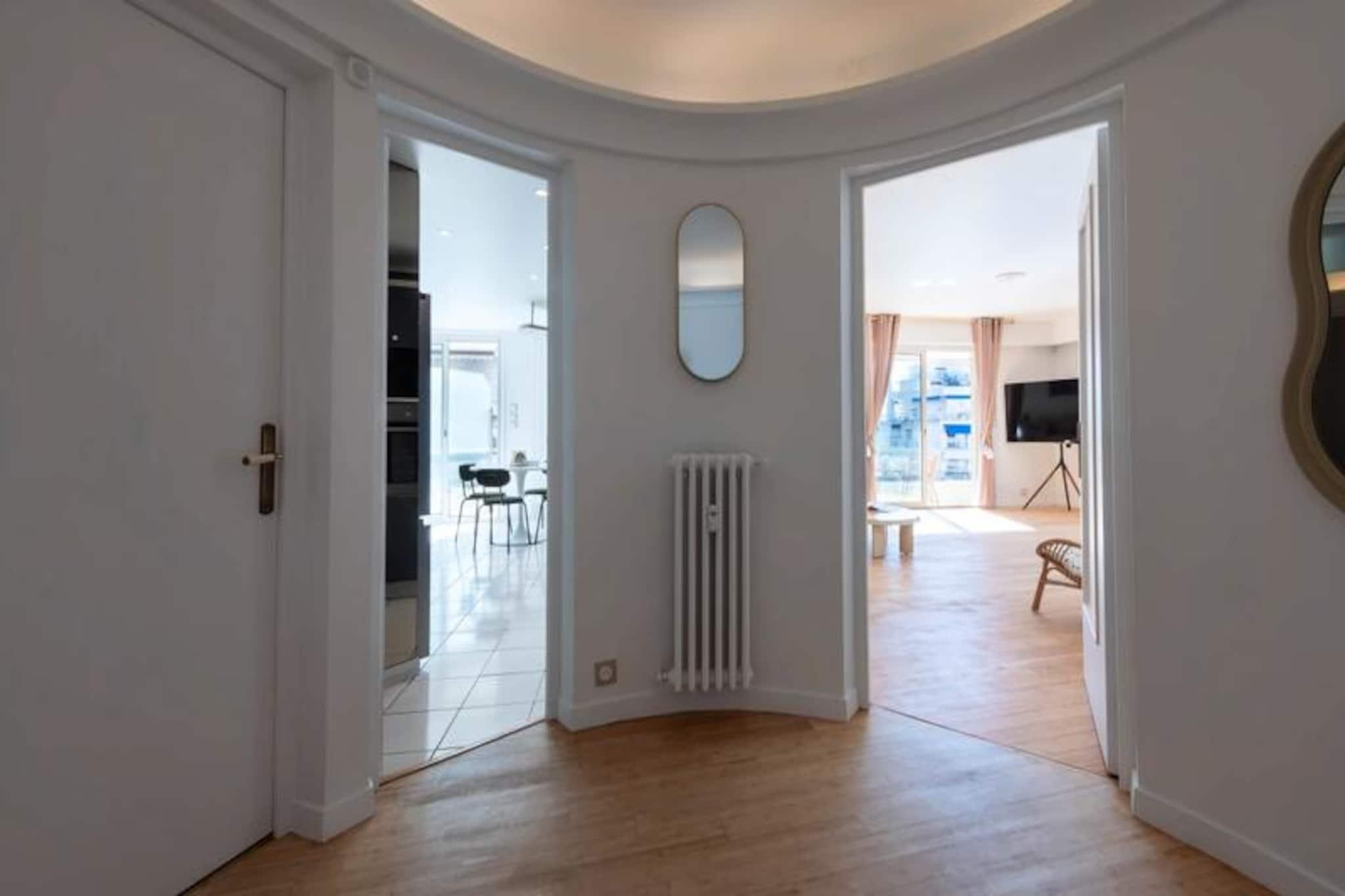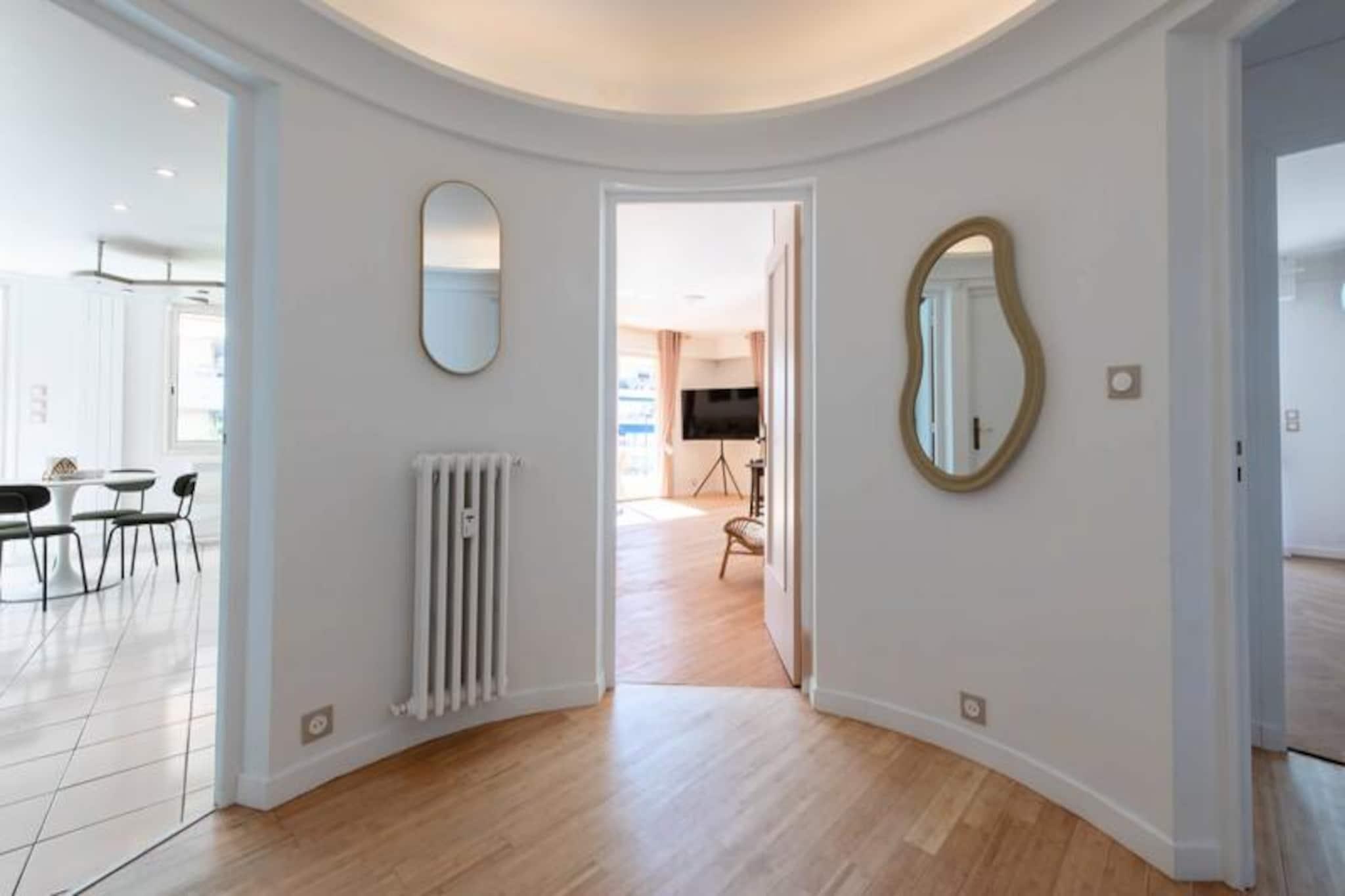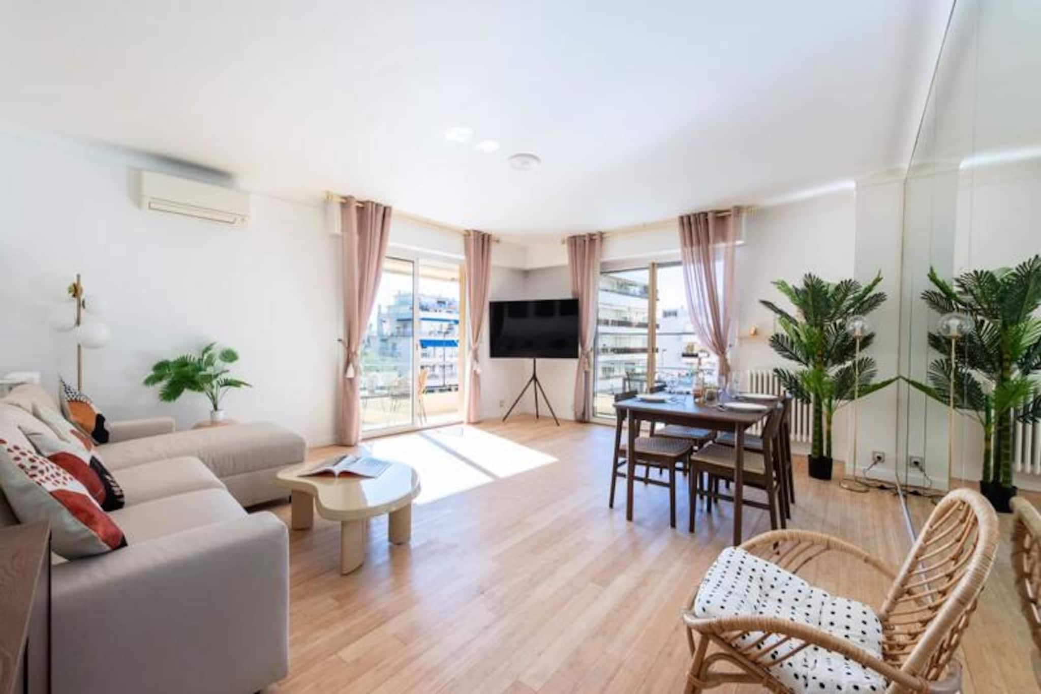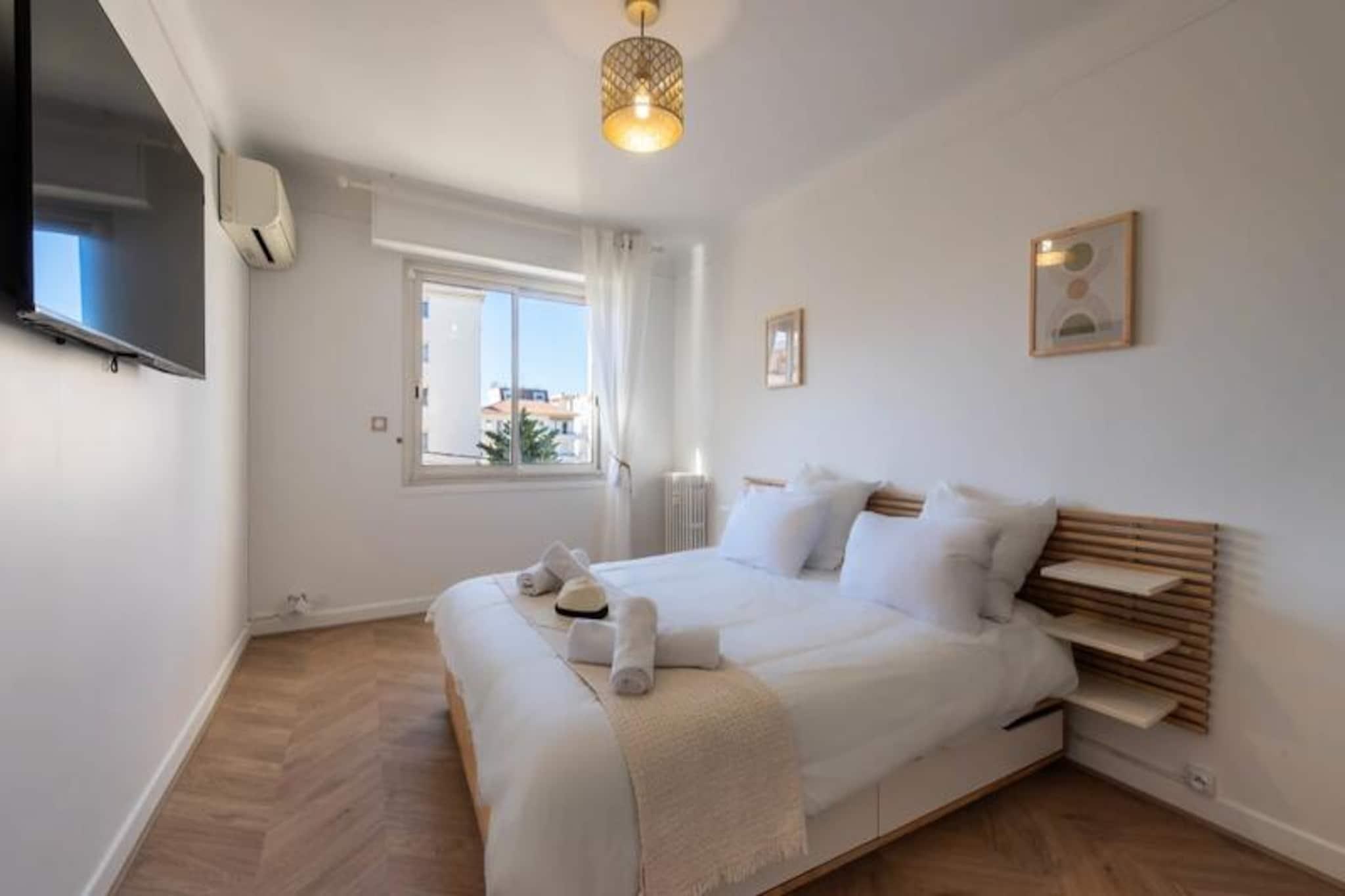 Forestil dig at træde ind i et solrigt fristed i hjertet af Cannes, hvor charmen ved den franske riviera møder moderne komfort. Denne 110 m² store lejlighed tilbyder en rolig tilflugtssted efter en dag med udforskning af gyldne strande og pulserende gader. Med sin rummelige stue, der åbner ud til en sydvendt hjørneterrasse, finder du det perfekte sted at slappe af, nyde middelhavsbrisen og udsigten over byen. Det nyrenoverede interiør blander moderne elegance med praktiske bekvemmeligheder og sikrer et ophold, der føles både luksuriøst og ubesværet. Indenfor er lejligheden designet til afslapning og bekvemmelighed. Den lyse opholdsstue har en komfortabel sofa, Smart TV og en spiseplads, der problemfrit forbinder til terrassen. Et separat, fuldt udstyret køkken med spisekrog inviterer dig til at tilberede og nyde måltider i ro og mag. Soveværelserne omfatter et soveværelse med en luksuriøs queensize-seng og eget badeværelse med bruser, der tilbyder privatliv og ro. Et andet soveværelse med to enkeltsenge er ideelt til børn eller ekstra gæster, suppleret af et andet badeværelse og separat toilet. Reversibel aircondition og Wi-Fi sikrer din komfort året rundt, mens fælles parkering øger bekvemmeligheden. Denne lejlighed ligger kun en kort gåtur fra den ikoniske La Croisette-strand og placerer dig i hjertet af Cannes' charme. Udforsk luksusbutikkerne på Rue d'Antibes, den historiske charme i Le Suquet eller det livlige Forville-marked, alt sammen inden for gåafstand. For et strejf af glamour ligger Palais des Festivals i nærheden, mens færgen til Lérins-øerne tilbyder en rolig dagstur ud i naturen. Uanset om du er her for filmfestivalen i Cannes eller et fredeligt tilflugtssted ved havet, er denne lejlighed den perfekte base for at opleve det hele. Med sin uovertrufne beliggenhed, moderne komfort og Cannes' tidløse skønhed lige uden for døren lover denne ejendom en uforglemmelig Riviera-ferie. Lad magien ved Côte d'Azur fange dig fra det øjeblik, du ankommer.
