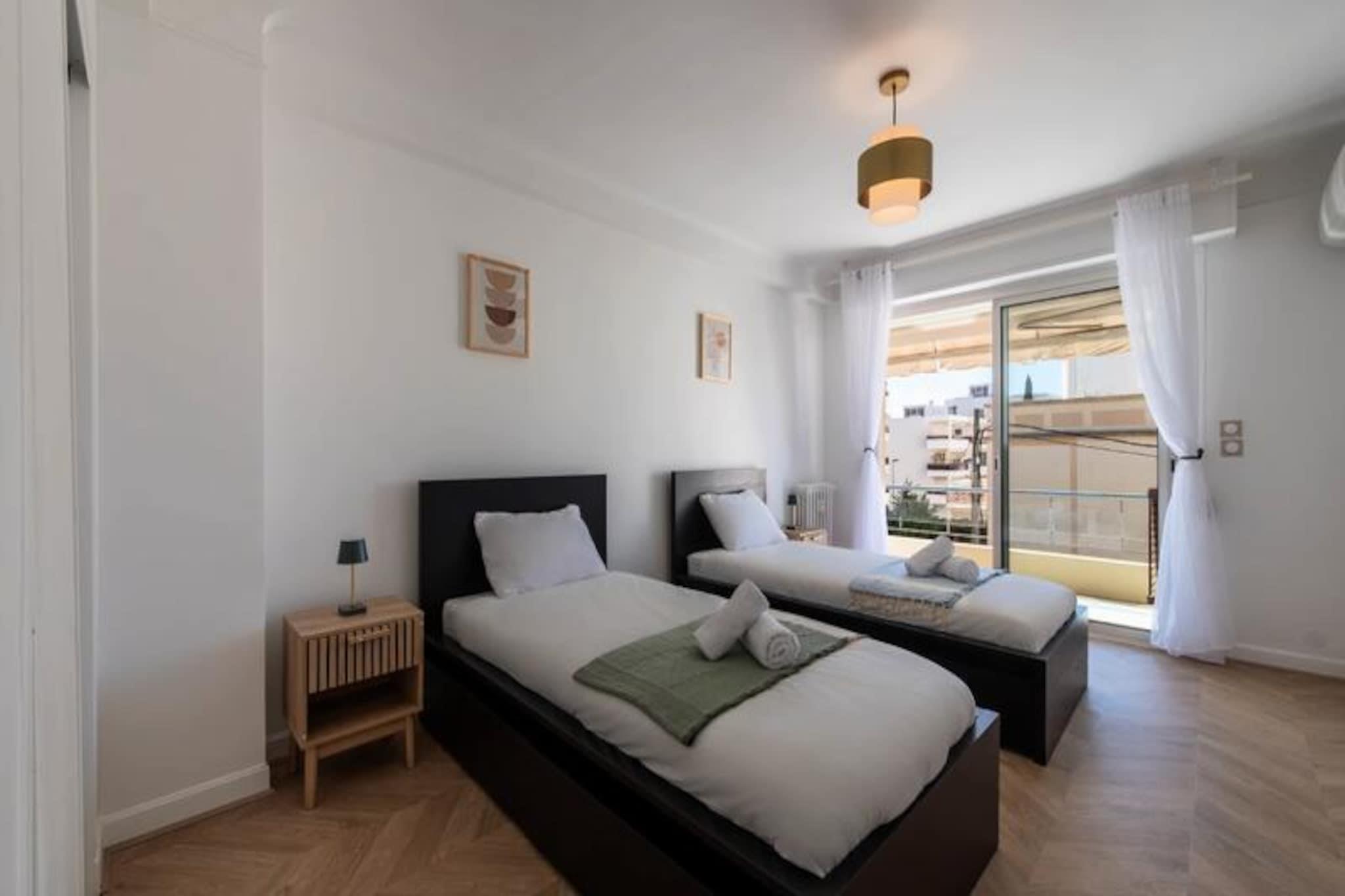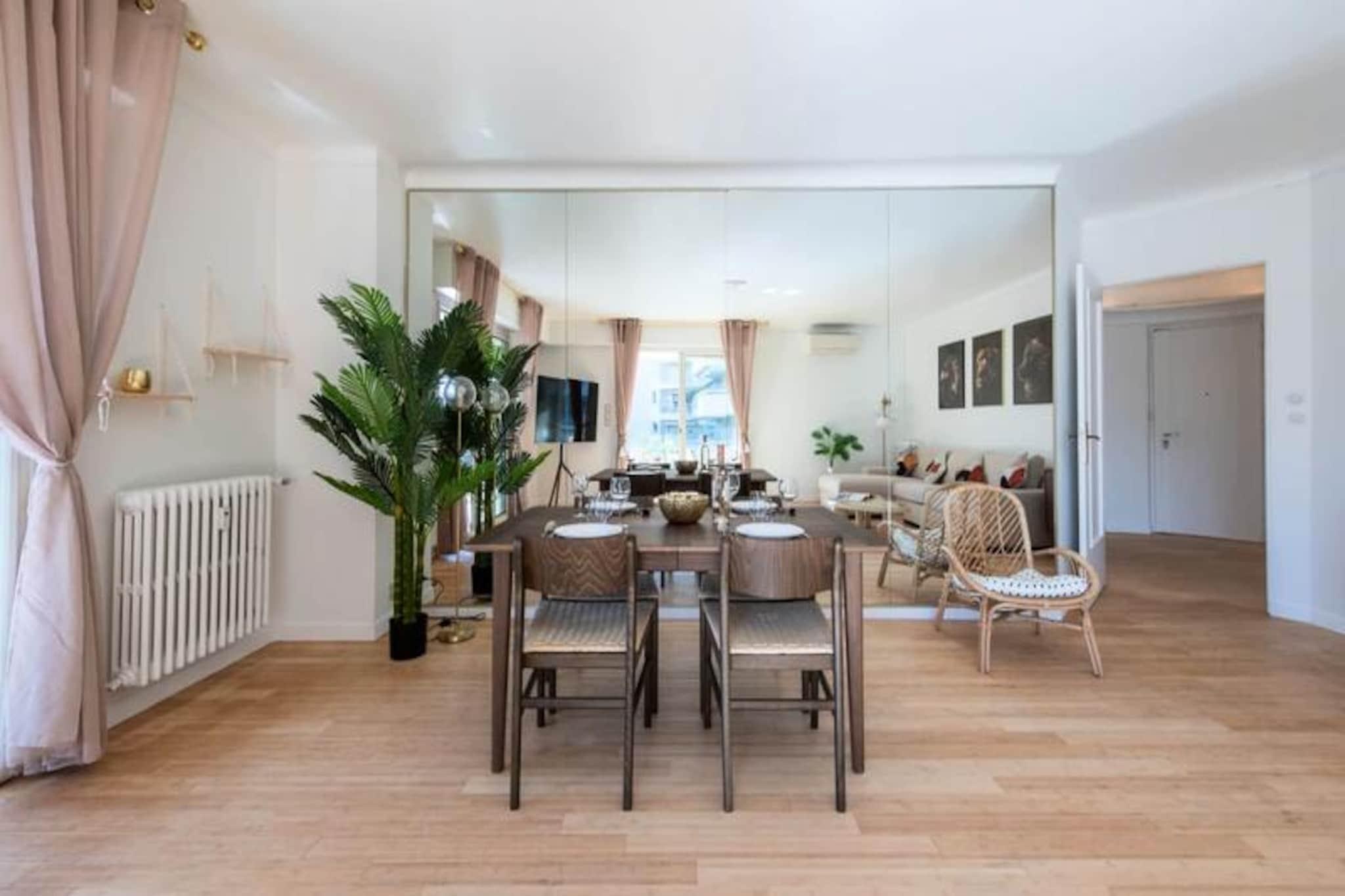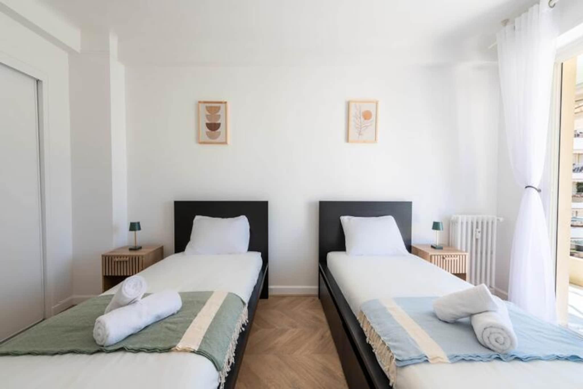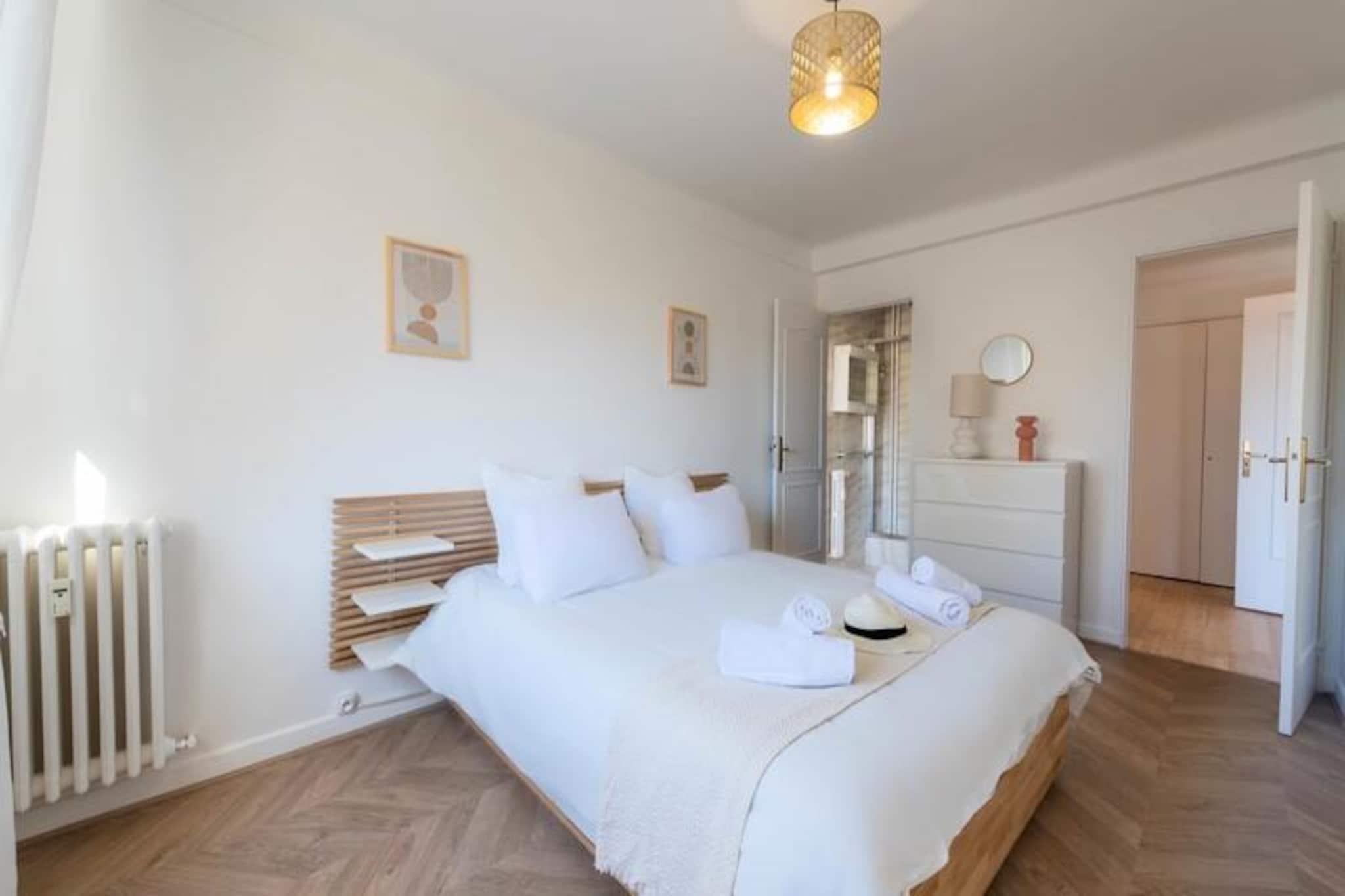Forestil dig at træde ind i et solrigt fristed i hjertet af Cannes, hvor charmen ved den franske riviera møder moderne komfort. Denne 110 m² store lejlighed tilbyder en rolig tilflugtssted efter en dag med udforskning af gyldne strande og pulserende gader. Med sin rummelige stue, der åbner ud til en sydvendt hjørneterrasse, finder du det perfekte sted at slappe af, nyde middelhavsbrisen og udsigten over byen. Det nyrenoverede interiør blander moderne elegance med praktiske bekvemmeligheder og sikrer et ophold, der føles både luksuriøst og ubesværet. Indenfor er lejligheden designet til afslapning og bekvemmelighed. Den lyse opholdsstue har en komfortabel sofa, Smart TV og en spiseplads, der problemfrit forbinder til terrassen. Et separat, fuldt udstyret køkken med spisekrog inviterer dig til at tilberede og nyde måltider i ro og mag. Soveværelserne omfatter et soveværelse med en luksuriøs queensize-seng og eget badeværelse med bruser, der tilbyder privatliv og ro. Et andet soveværelse med to enkeltsenge er ideelt til børn eller ekstra gæster, suppleret af et andet badeværelse og separat toilet. Reversibel aircondition og Wi-Fi sikrer din komfort året rundt, mens fælles parkering øger bekvemmeligheden. Denne lejlighed ligger kun en kort gåtur fra den ikoniske La Croisette-strand og placerer dig i hjertet af Cannes' charme. Udforsk luksusbutikkerne på Rue d'Antibes, den historiske charme i Le Suquet eller det livlige Forville-marked, alt sammen inden for gåafstand. For et strejf af glamour ligger Palais des Festivals i nærheden, mens færgen til Lérins-øerne tilbyder en rolig dagstur ud i naturen. Uanset om du er her for filmfestivalen i Cannes eller et fredeligt tilflugtssted ved havet, er denne lejlighed den perfekte base for at opleve det hele. Med sin uovertrufne beliggenhed, moderne komfort og Cannes' tidløse skønhed lige uden for døren lover denne ejendom en uforglemmelig Riviera-ferie. Lad magien ved Côte d'Azur fange dig fra det øjeblik, du ankommer.