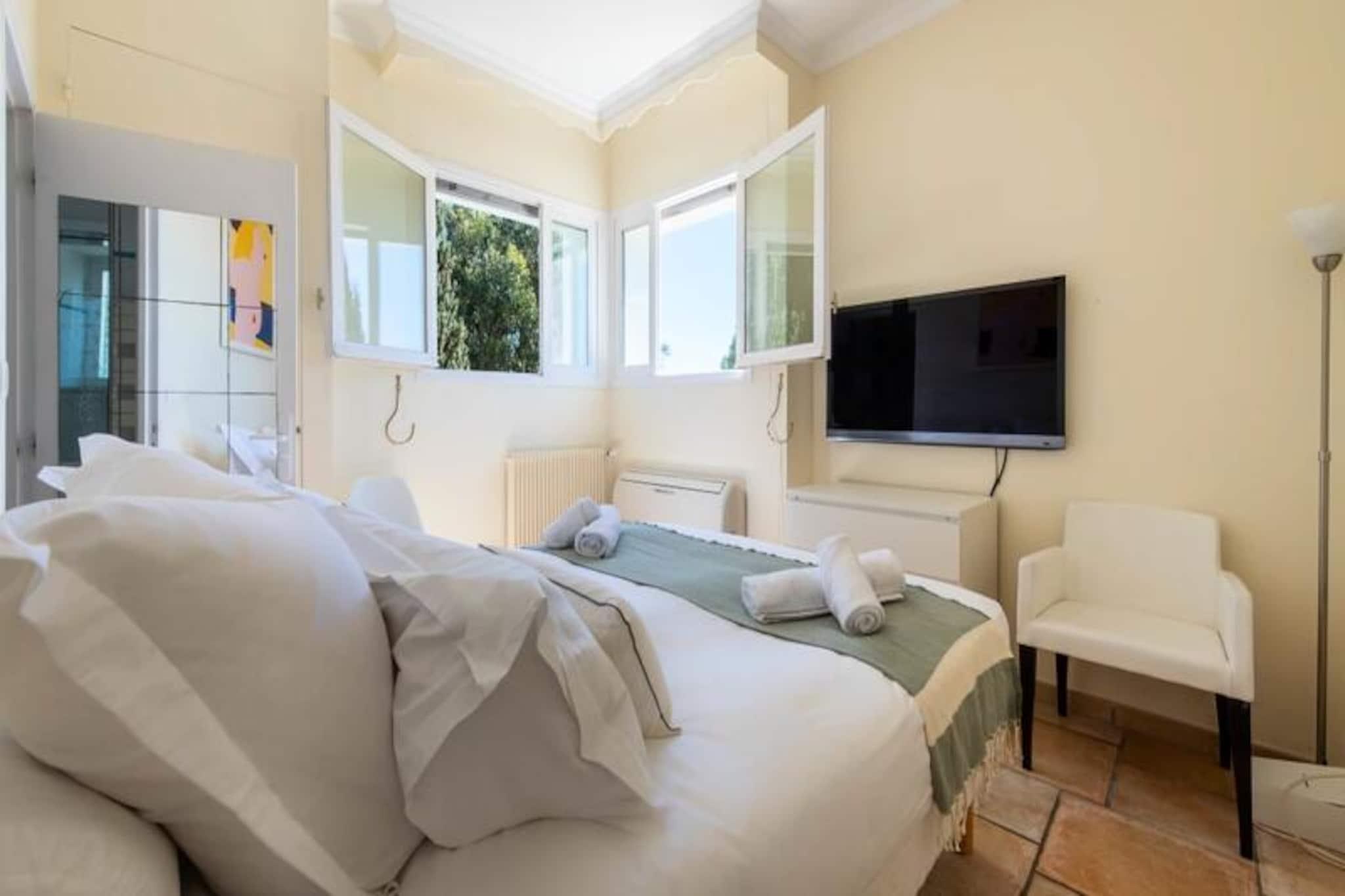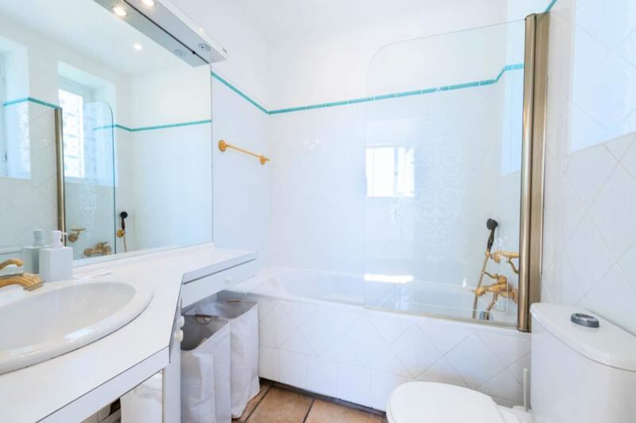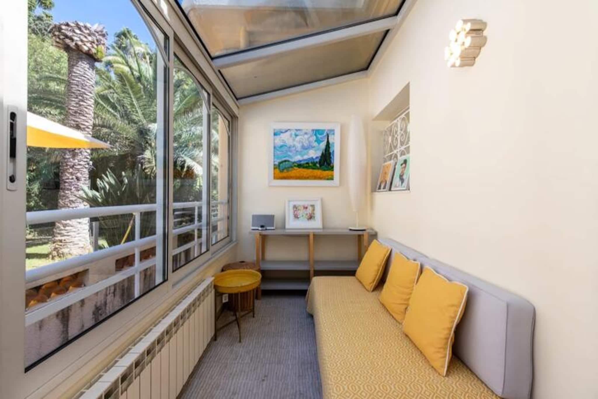 Højt over Cannes' glamourøse gader tilbyder denne udsøgte lejlighed på øverste etage i en historisk villa et uovertruffent tilflugtssted for dem, der søger både ro og elegance. Forestil dig at vågne op til den blide middelhavsbrise med panoramaudsigt, der strækker sig fra det azurblå hav til de ikoniske Lérinsøer, alt sammen fra din private tagterrasse. Denne fredfyldte tilflugtssted ligger kun få minutter fra Cannes' pulserende hjerte, men føles alligevel som en verden væk i sine fredelige boligomgivelser. Træd indenfor og bliv mødt af en lys stue, hvor en sydvendt udsigt bader rummet i solskin. Den elegante lædersofa og spiseplads skaber en indbydende atmosfære, mens det fuldt udstyrede køkken åbner ud til en charmerende vinterhave, perfekt til morgenkaffe eller stille refleksion. Udenfor lokker den private have med sin intime swimmingpool, liggestole og skyggefulde spiseplads under svajende palmer. For den ultimative forkælelse kan du gå op til tagterrassen, hvor en udendørs lounge og dagseng inviterer dig til at nyde den betagende udsigt. Lejligheden har komfortabel plads til op til fire gæster med to smukt indrettede soveværelser. Master-suiten har et ensuite badeværelse, mens et andet dobbeltværelse og et ekstra brusebad sikrer bekvemmelighed og privatliv. Moderne bekvemmeligheder som højhastigheds-Wi-Fi, reversibel aircondition og en privat elevator forbedrer dit ophold. Denne ejendom har en perfekt beliggenhed tæt på Cannes' mest ikoniske attraktioner. Gå en tur langs Boulevard de la Croisette, udforsk de brostensbelagte gader i Le Suquet, eller slap af på sandstranden ved Gazagnaire-stranden. Uanset om du er her for filmfestivalen, luksusshopping eller blot for at slappe af, tilbyder denne lejlighed en raffineret base for at opleve det bedste af den franske riviera.