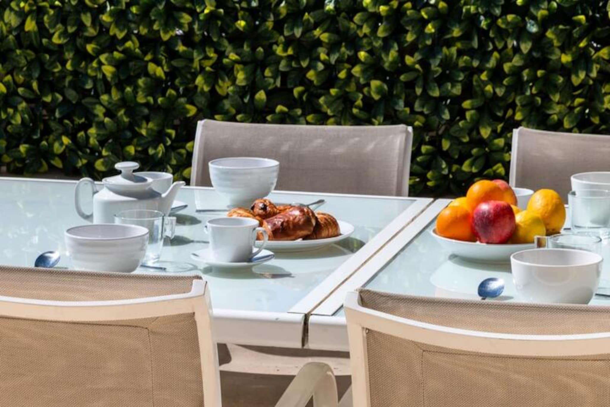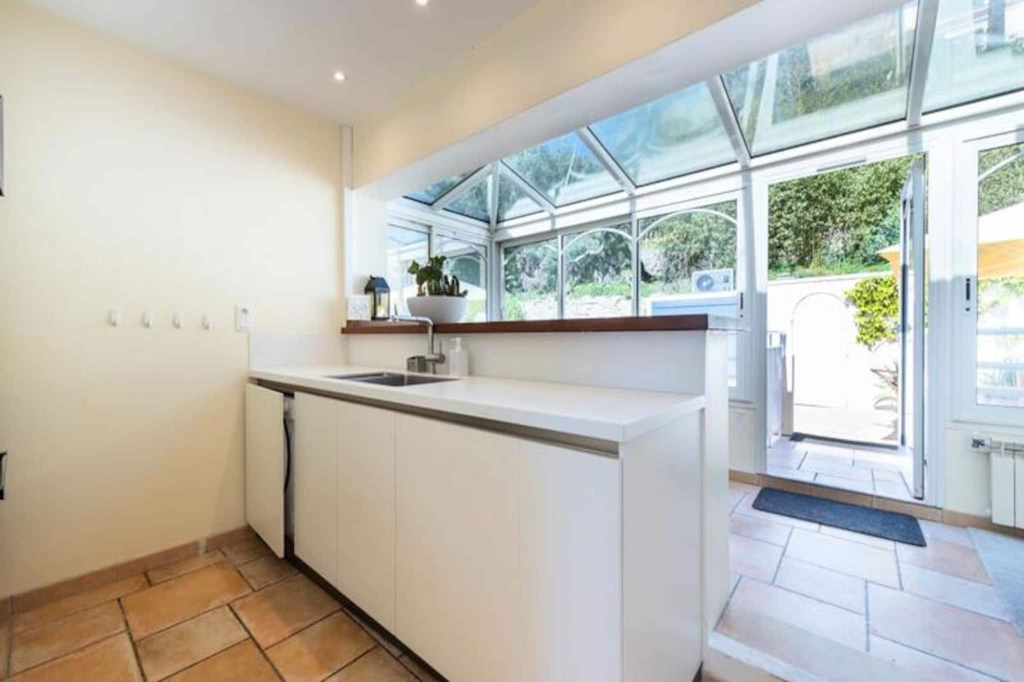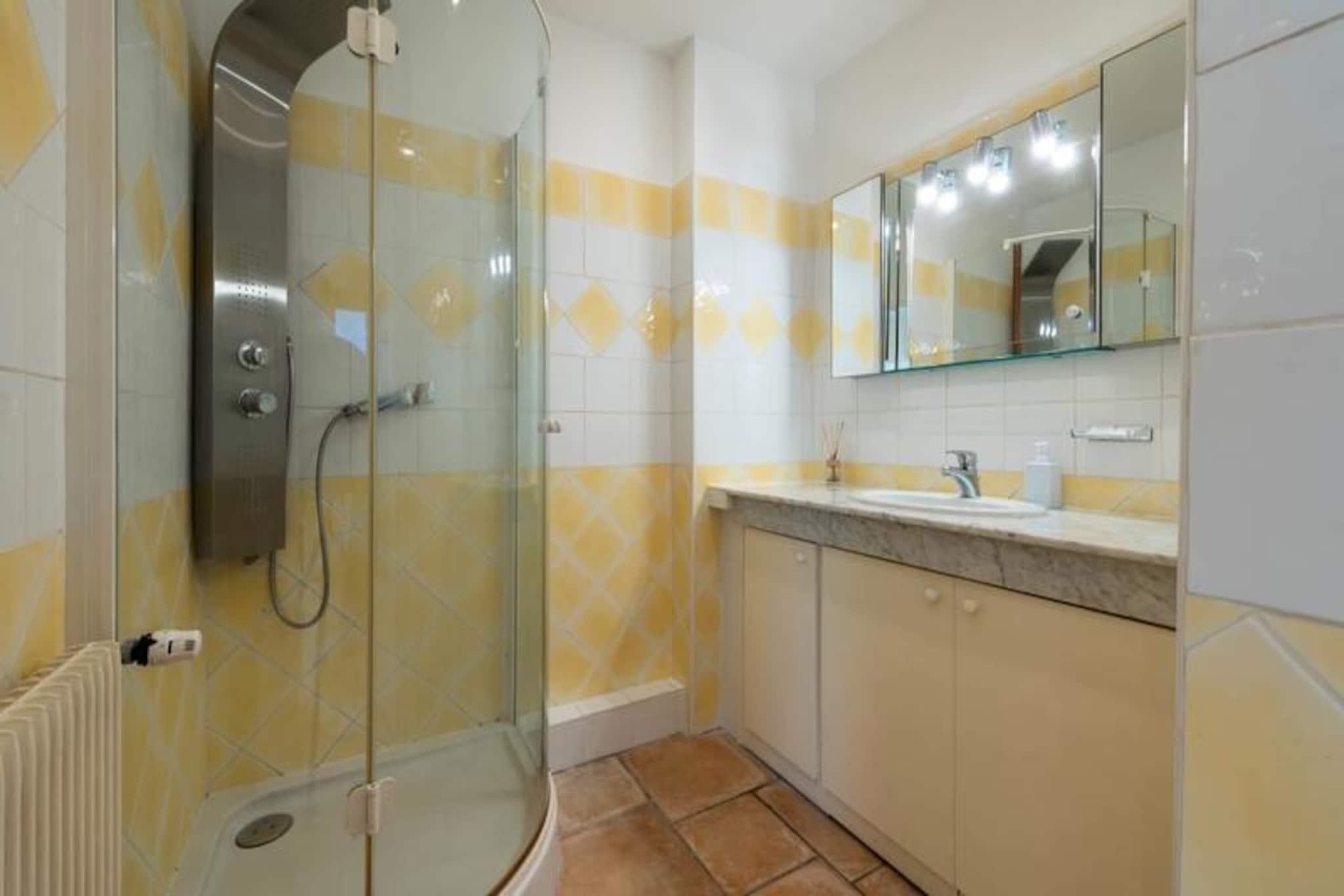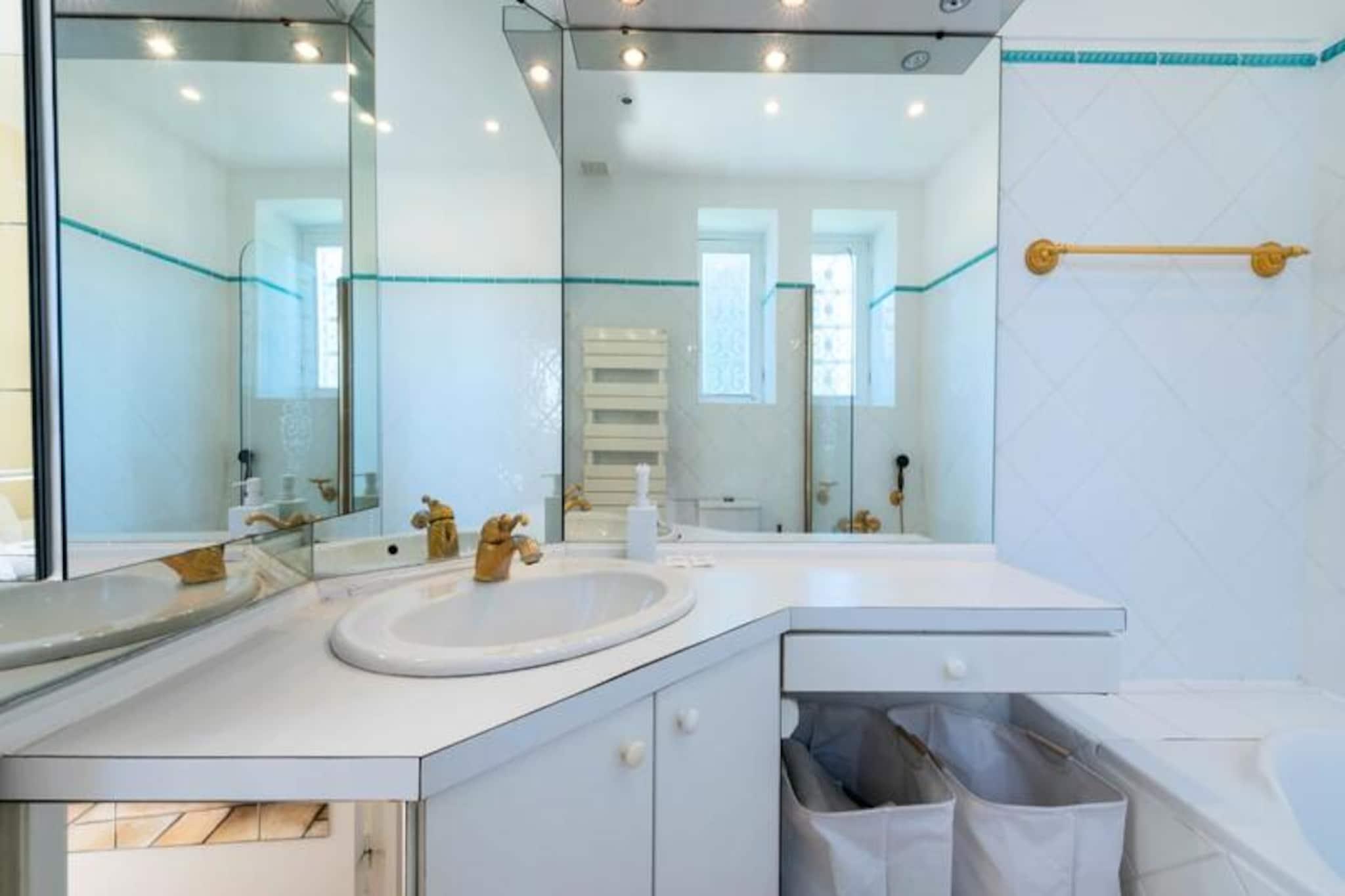 Højt over Cannes' glamourøse gader tilbyder denne udsøgte lejlighed på øverste etage i en historisk villa et uovertruffent tilflugtssted for dem, der søger både ro og elegance. Forestil dig at vågne op til den blide middelhavsbrise med panoramaudsigt, der strækker sig fra det azurblå hav til de ikoniske Lérinsøer, alt sammen fra din private tagterrasse. Denne fredfyldte tilflugtssted ligger kun få minutter fra Cannes' pulserende hjerte, men føles alligevel som en verden væk i sine fredelige boligomgivelser. Træd indenfor og bliv mødt af en lys stue, hvor en sydvendt udsigt bader rummet i solskin. Den elegante lædersofa og spiseplads skaber en indbydende atmosfære, mens det fuldt udstyrede køkken åbner ud til en charmerende vinterhave, perfekt til morgenkaffe eller stille refleksion. Udenfor lokker den private have med sin intime swimmingpool, liggestole og skyggefulde spiseplads under svajende palmer. For den ultimative forkælelse kan du gå op til tagterrassen, hvor en udendørs lounge og dagseng inviterer dig til at nyde den betagende udsigt. Lejligheden har komfortabel plads til op til fire gæster med to smukt indrettede soveværelser. Master-suiten har et ensuite badeværelse, mens et andet dobbeltværelse og et ekstra brusebad sikrer bekvemmelighed og privatliv. Moderne bekvemmeligheder som højhastigheds-Wi-Fi, reversibel aircondition og en privat elevator forbedrer dit ophold. Denne ejendom har en perfekt beliggenhed tæt på Cannes' mest ikoniske attraktioner. Gå en tur langs Boulevard de la Croisette, udforsk de brostensbelagte gader i Le Suquet, eller slap af på sandstranden ved Gazagnaire-stranden. Uanset om du er her for filmfestivalen, luksusshopping eller blot for at slappe af, tilbyder denne lejlighed en raffineret base for at opleve det bedste af den franske riviera.