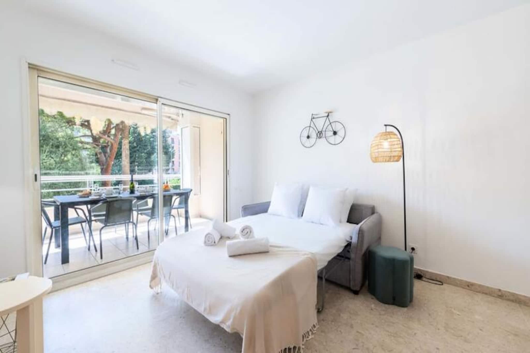 2-værelses lejlighed i en bolig med swimmingpool og garage, nær Croisetten