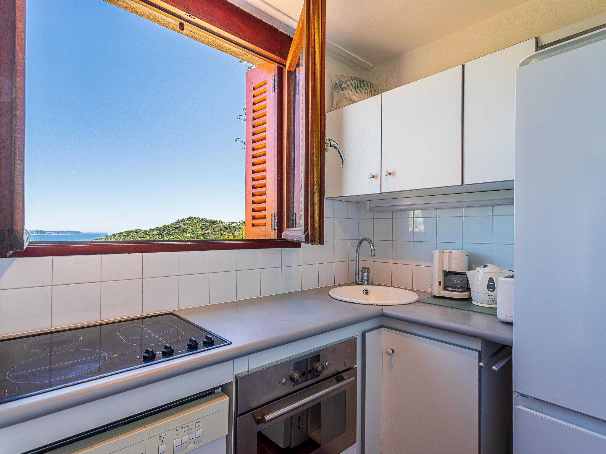 Domaine Gaou Bénat 6 km from Le Lavandou: Terraced house "Village des Fourches". In the district of Gaout Bénat, in the resort de Bormes Les Mimosas, in a quiet position on top of a hill, in the residential district, 2.5 km from the sea, 2.5 km from the beach, south-east facing position. Private: natural state property. Motor access to 100 m from the house. Stepped path to the house. Shop 4 km, grocery 4 km, bus stop "Lavandou Gare Routière" 7 km, sandy beach "Gaou Bénat" 2.5 km, shingle beach "Gaout Bénat" 2.5 km. Tennis 2.5 km. Nearby attractions: Saint Tropez 43 km, Magic World 29 km, Parc Olbius Riquier 26 km, Le Jardin des Méditerranées 19 km. Hiking paths: Sentiers du Littoral. Please note: car recommended. The keys‘ handover takes place by the agency Interhome in Le Lavandou, 6 km.
