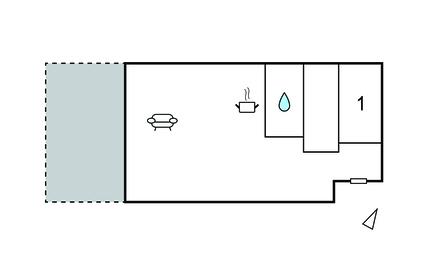 Komb. spisestue/køkken 23m2 - 2 Sovepladser. (Dobbeltseng(e)).