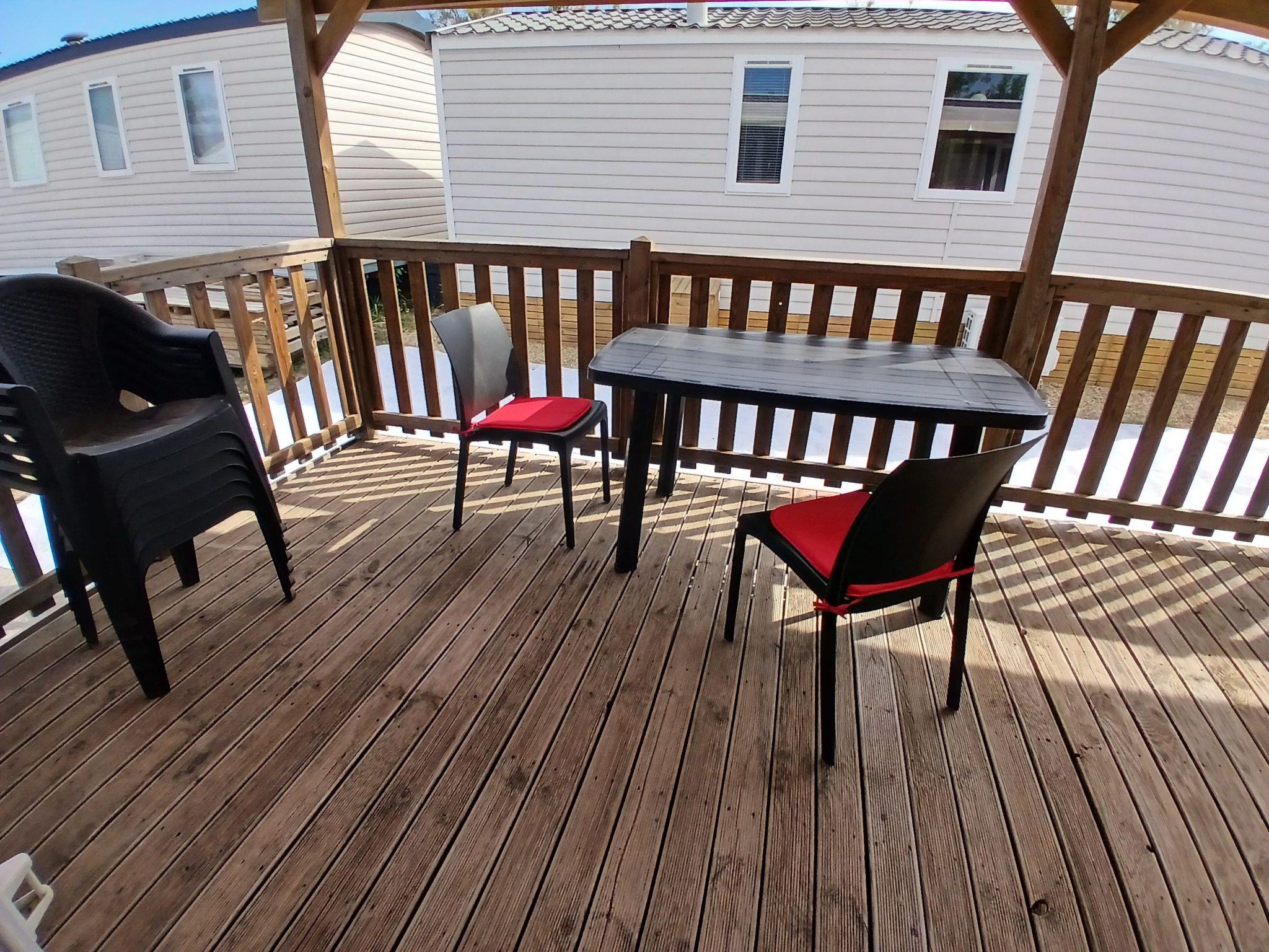Enjoy relaxing outdoors on the terrace or in the communal garden, while keeping cool with the air conditioning available in some parts of the mobile home.