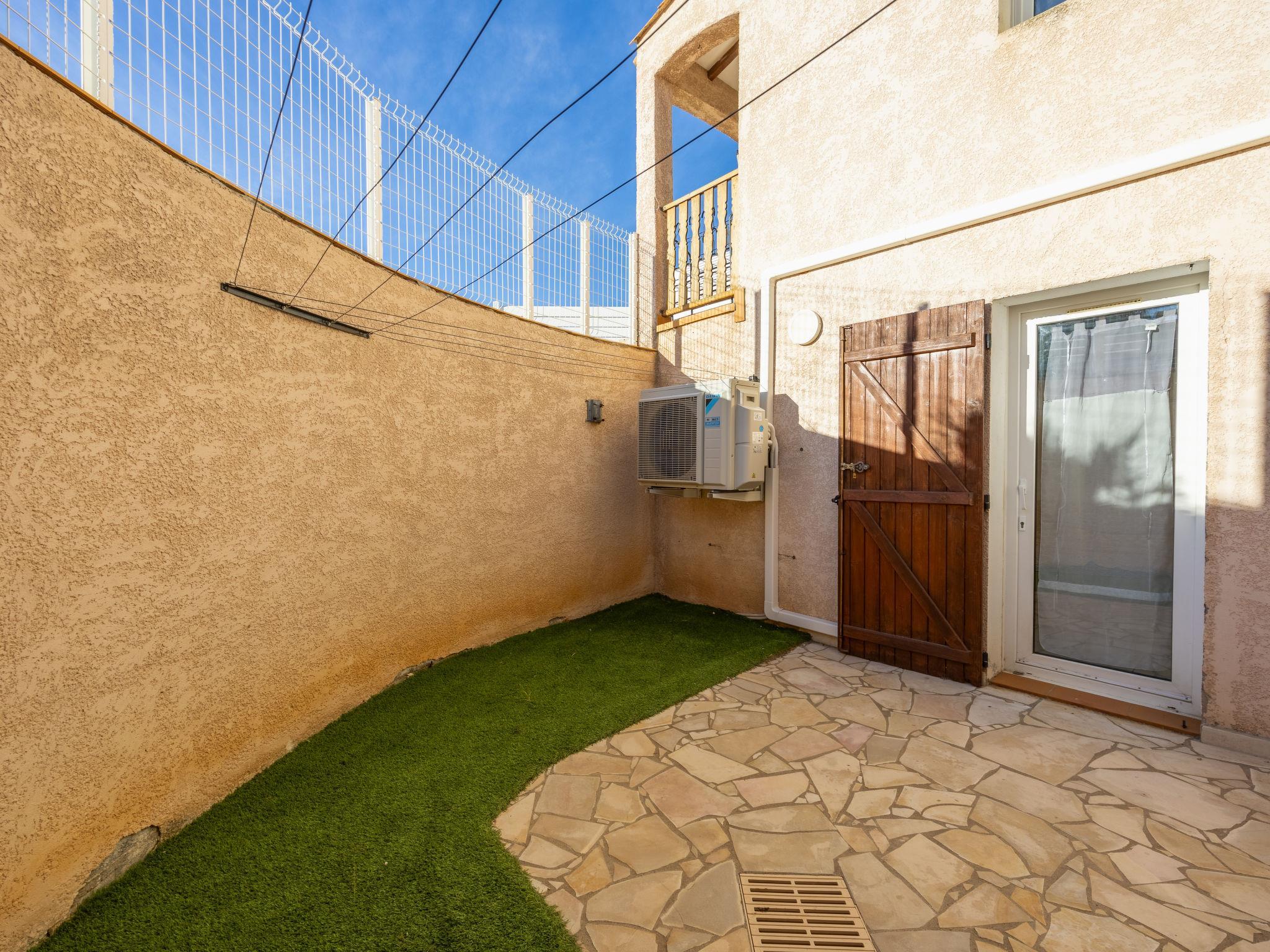 4-room terraced house 70 m2 on 3 levels. Living/dining room. Exit to the garden, pergola. Kitchenette (oven, dishwasher, 4 induction hot plates, toaster, kettle). On the lower ground floor: 1 room with 1 french bed (140 cm, length 190 cm). Exit to the terrace. 1 room with 2 x 2 bunk beds (90 cm, length 190 cm). Exit to the terrace. Shower, sep. WC. Air-conditioning. Upper floor: 1 large room 12 m2 with 1 french bed (140 cm, length 190 cm). Exit to the terrace. Shower/WC. Air-conditioning. Facilities: washing machine. Internet (WiFi, free). Parking, garage. Please note: maximum 1 pet/ dog allowed. Smoke alarm. Offer by a private individual according to Art. 155, IV of CGI.