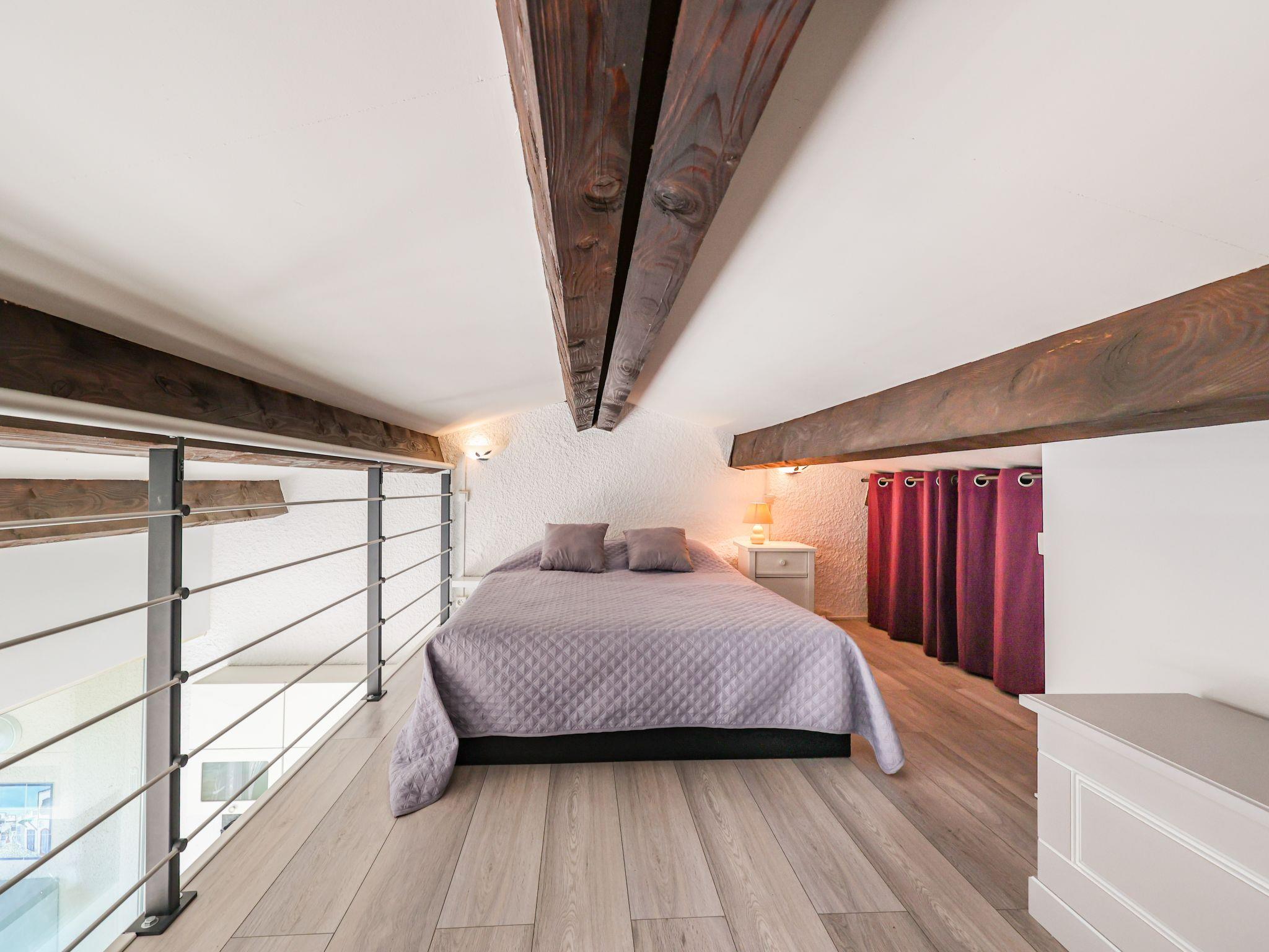 2-room apartment 35 m2 on 2 levels on 2nd floor. Living/dining room with TV (flat screen), air conditioning. Open sleeping alcove with 1 x 2 bunk beds (90 cm, length 190 cm). Open kitchen (dishwasher, 2 ceramic glass hob hotplates, kettle, microwave, electric coffee machine, Capsules for coffee machine (Nespresso) extra). Bathroom, sep. WC. Heating, electric heating. Upper floor: open gallery with sloping ceilings, ceiling height 96 - 122 cm with 1 french bed (140 cm, length 200 cm). Large balcony, south-east facing position. Terrace furniture. Beautiful distant view of the sea and the countryside. Facilities: Internet (WiFi, extra). Please note: suitable for families apartment street side. Fridge without freezer. Smoke alarm. Instead of an enclosed bedroom, some sleeping areas are located in an open-plan area (gallery, alcove, etc.).