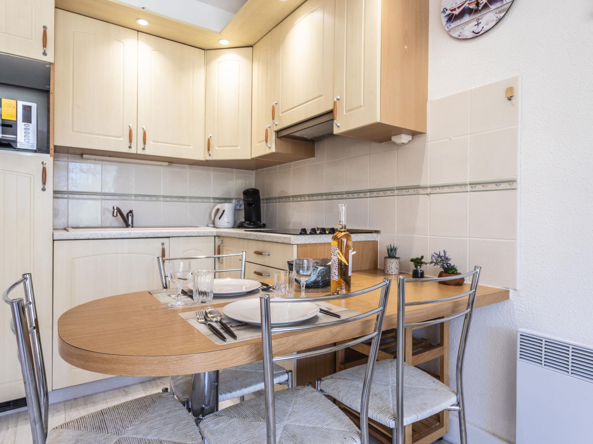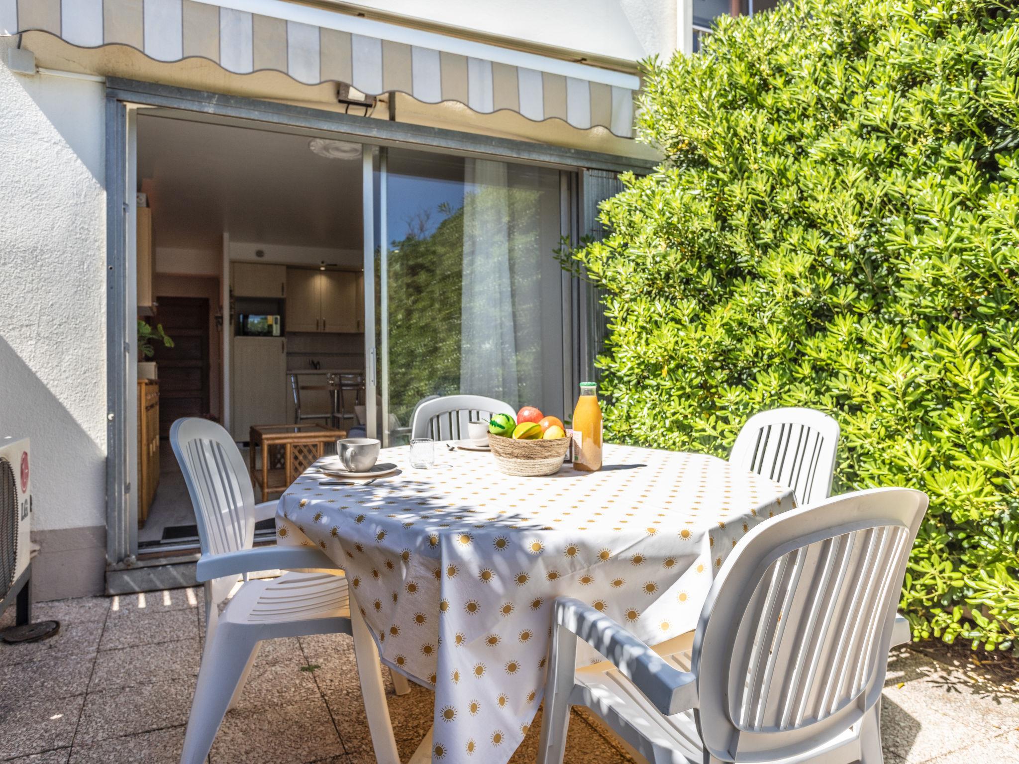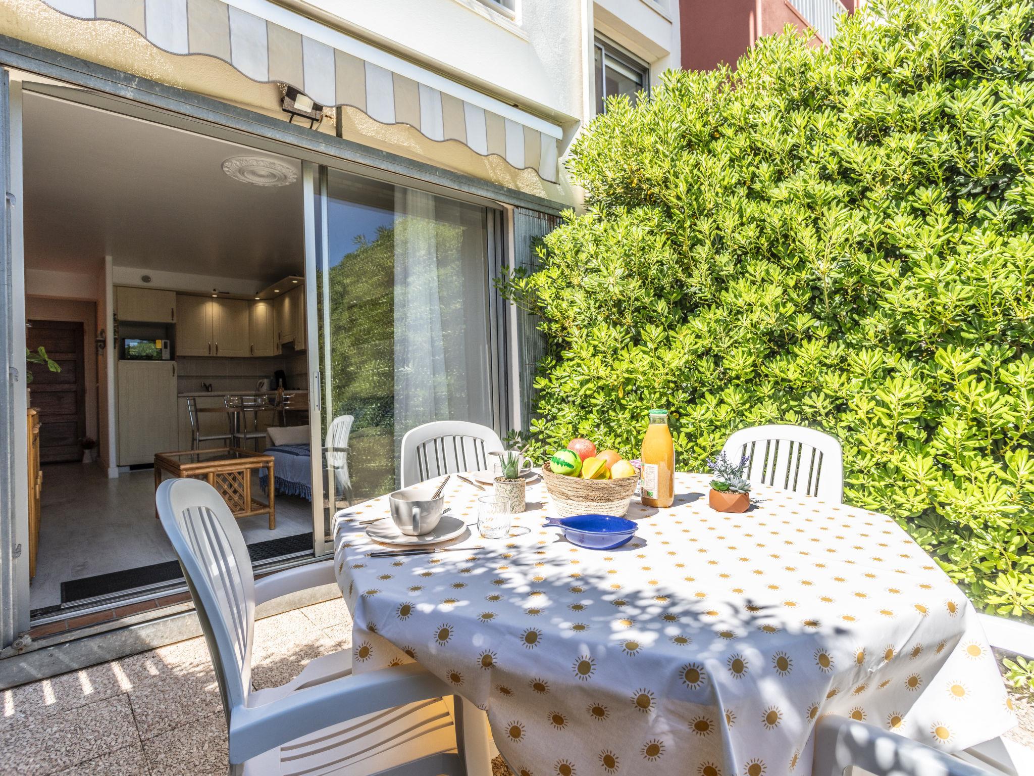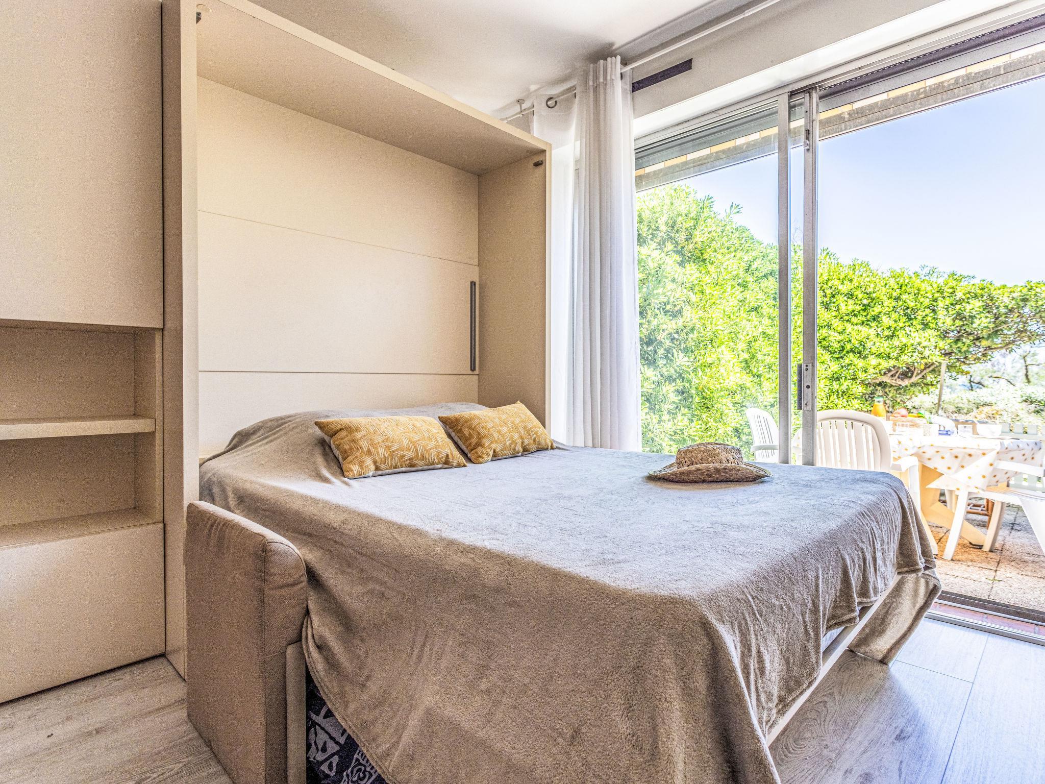 1-room studio 22 m2, on the ground floor, south facing position. Object suitable for 2 adults. Living/dining room with 1 double fold-away bed (140 cm, length 190 cm), TV (flat screen). Exit to the terrace. Kitchenette (4 ceramic glass hob hotplates, toaster, kettle, electric coffee machine, combination microwave). Shower/WC. Air-conditioning. Large terrace 15 m2. Terrace furniture. Facilities: Internet (WiFi, extra). Please note: smoke alarm. Offer by a private individual according to Art. 155, IV of CGI.