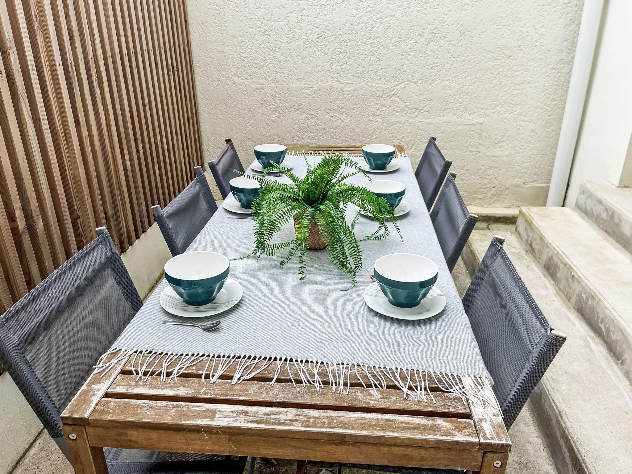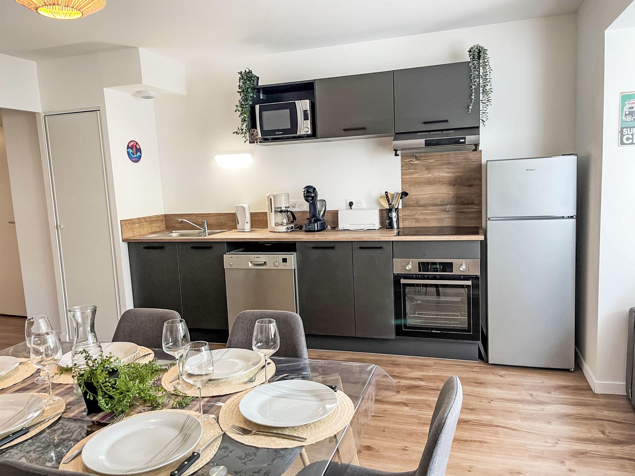 3-room apartment 65 m2, on the ground floor. Modern and cosy furnishings: living/dining room with TV (flat screen). Exit to the terrace. 2 rooms, each room with 1 french bed (140 cm, length 190 cm). Open kitchen (oven, dishwasher, 4 ceramic glass hob hotplates, toaster, kettle, microwave, freezer, electric coffee machine). Shower, sep. WC. Electric heating. Terrace 10 m2. Terrace furniture. Facilities: washing machine, hair dryer. Internet (WiFi, extra). Offer by a private individual according to Art. 155, IV of CGI. 40065001486QU