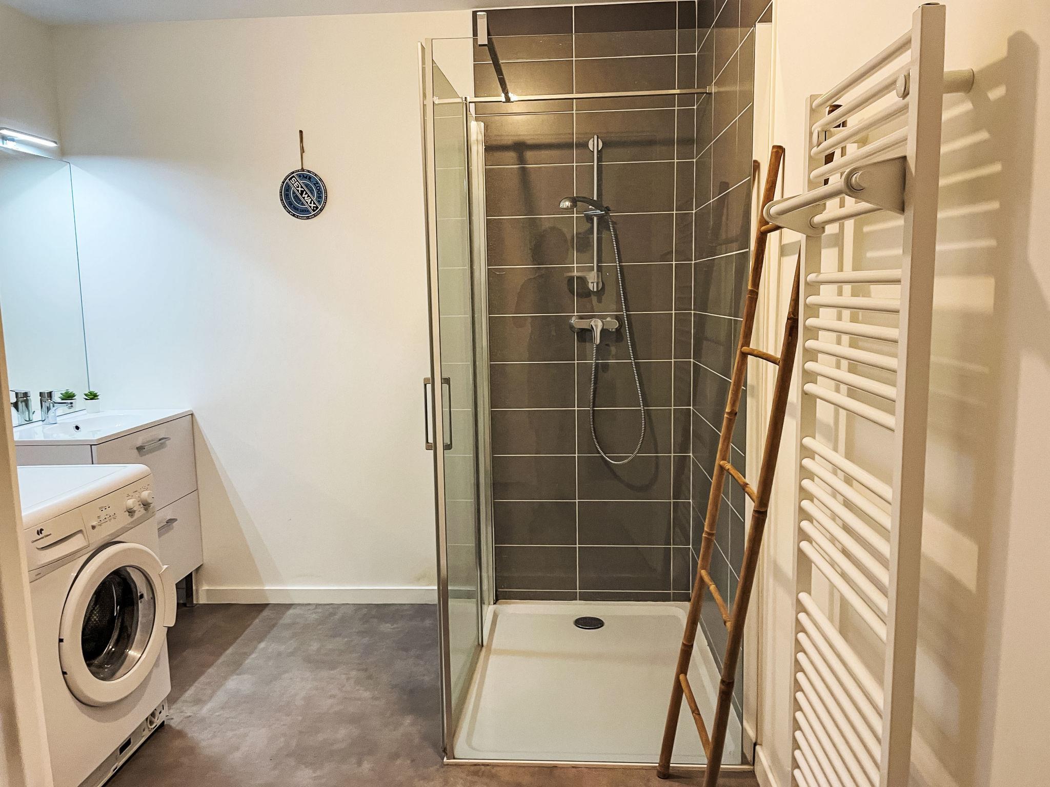 Capbreton: Apartment block "Cap Océan", 2 storeys, built in 2023. 17 apartments in the residence. In the resort, 150 m from the sea, 150 m from the beach. In the complex: washing machine, tumble dryer (for shared use). Public parking on the road. Shop 300 m, grocery 150 m, supermarket 1.8 km, restaurant 50 m, bakery 150 m, bicycle rental 100 m, bus stop "Capbreton Estacade" 300 m, sandy beach "Du Prévent" 150 m. Golf course (18 hole) 4 km, surf school 150 m, tennis 3 km, minigolf 200 m, riding stable 1 km. Nearby attractions: Seignosse 15 km, Bayonne 22 km, Dax 37 km, Biarritz 37 km. Well-known lakes can easily be reached: Réserve Naturelle des Marais d’Orx, Réserve Naturelle du courant d’Huchet.