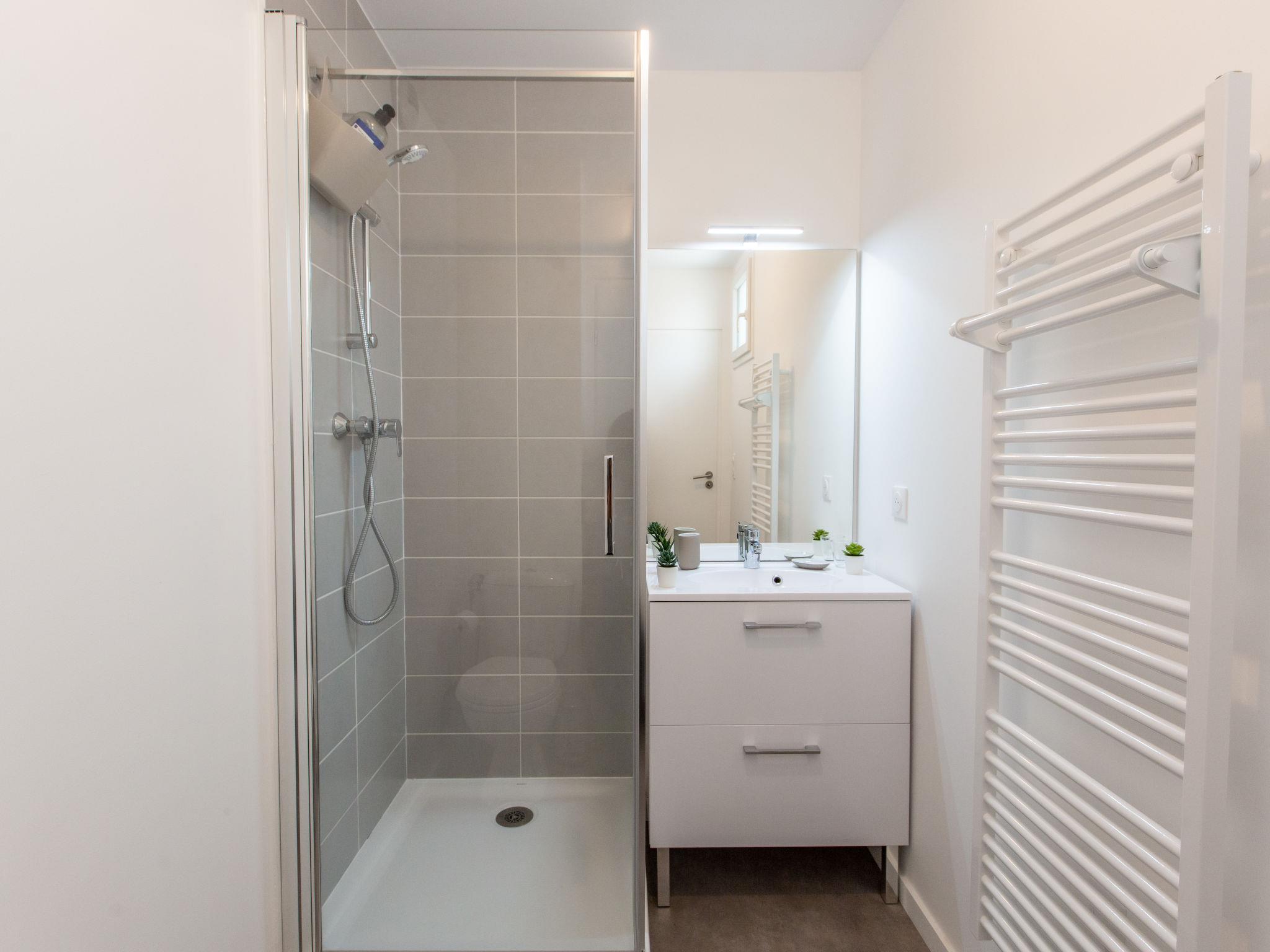 Capbreton: Apartment block "Cap Océan", 2 storeys, built in 2023. 17 apartments in the residence. In the resort, 150 m from the sea, 150 m from the beach. In the complex: washing machine, tumble dryer (for shared use). Public parking on the road. Shop 300 m, grocery 150 m, supermarket 1.8 km, restaurant 50 m, bakery 150 m, bicycle rental 100 m, bus stop "Capbreton Estacade" 300 m, sandy beach "Du Prévent" 150 m. Golf course (18 hole) 4 km, surf school 150 m, tennis 3 km, minigolf 200 m, riding stable 1 km. Nearby attractions: Seignosse 15 km, Bayonne 22 km, Dax 37 km, Biarritz 37 km. Well-known lakes can easily be reached: Réserve Naturelle des Marais d’Orx, Réserve Naturelle du courant d’Huchet.