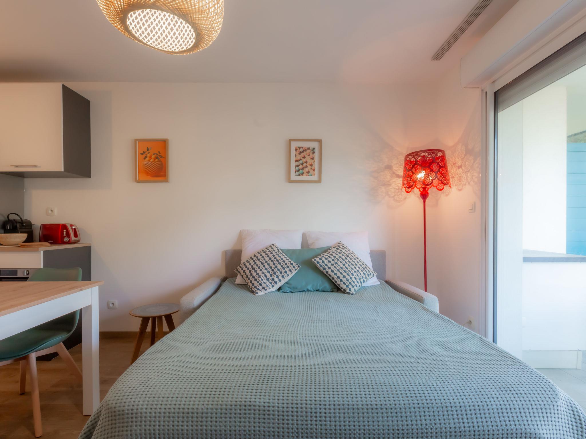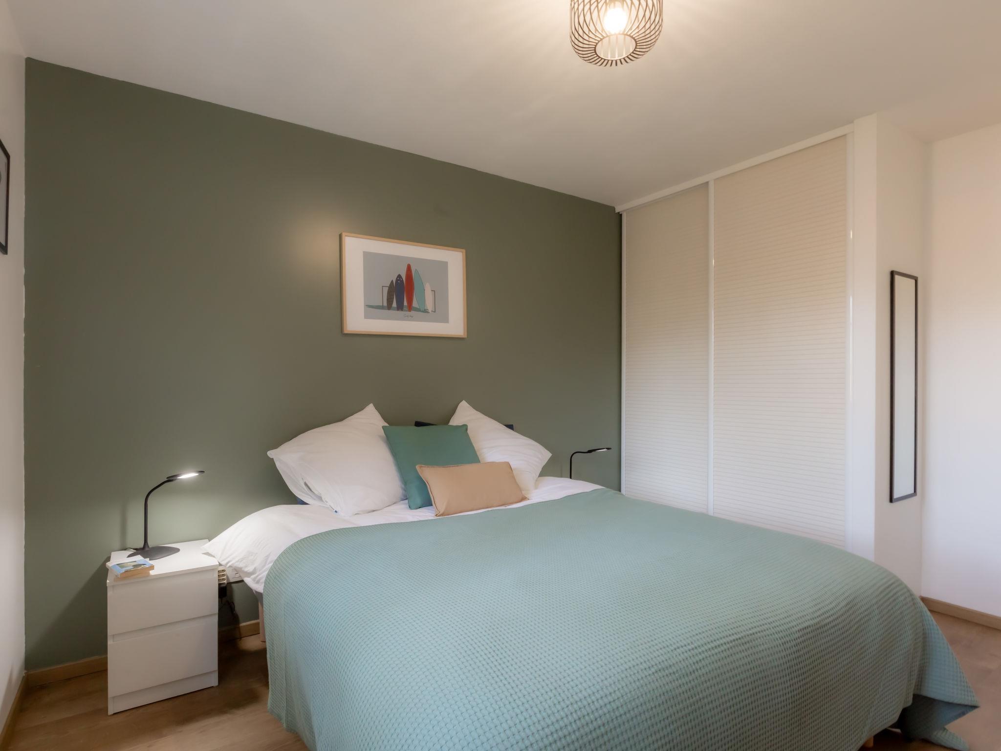 2-room apartment 40 m2 on 1st floor. Renovated in 2024, comfortable and beautiful furnishings: living/dining room with 1 sofabed (140 cm, length 190 cm), TV (flat screen). Exit to the terrace. 1 room with 1 french bed (160 cm, length 190 cm). Open kitchen (2 hot plates, oven, dishwasher, toaster, kettle, microwave, electric coffee machine). Shower/WC. Electric heating. Terrace 10 m2, roofed, west facing position. Terrace furniture. View of the river. Facilities: washing machine, iron, hair dryer. Internet (WiFi, free). Parking space n 104. Please note: non-smokers only. Smoke alarm. Offer by a private individual according to Art. 155, IV of CGI. 40065002484 K4