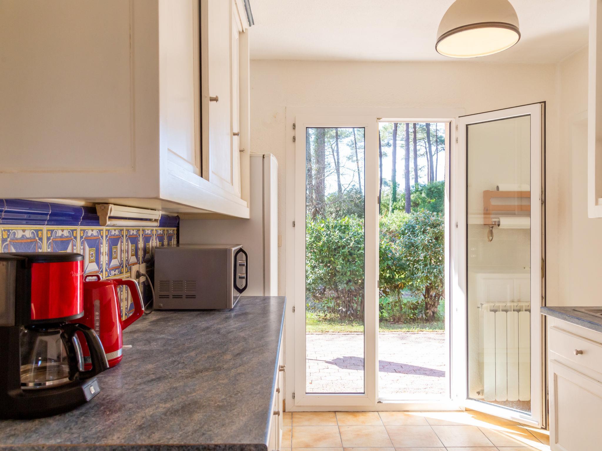 Capbreton 2 km from Hossegor: Residence "Bosquet des Ecureuils 17", surrounded by trees. With 45 houses, in the resort, 2 km from the centre, in a quiet position, 50 m from the edge of the forest, 3 km from the sea, 3 km from the beach, in a cul-de-sac. For shared use: swimming pool (seasonal availability: 01.Jul. - 15.Sep.). Parking (for 2 cars). Shop 2 km, supermarket 2 km, restaurant 2 km, bus stop 2 km. Sports harbour 2 km, golf course (18 hole) 2 km. Groups of teenagers on request only.