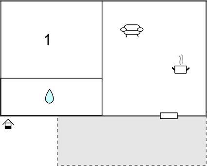 Komb. spisestue/køkken 16m2 - 2 Sovepladser. (Sofa, madras eller lignende).