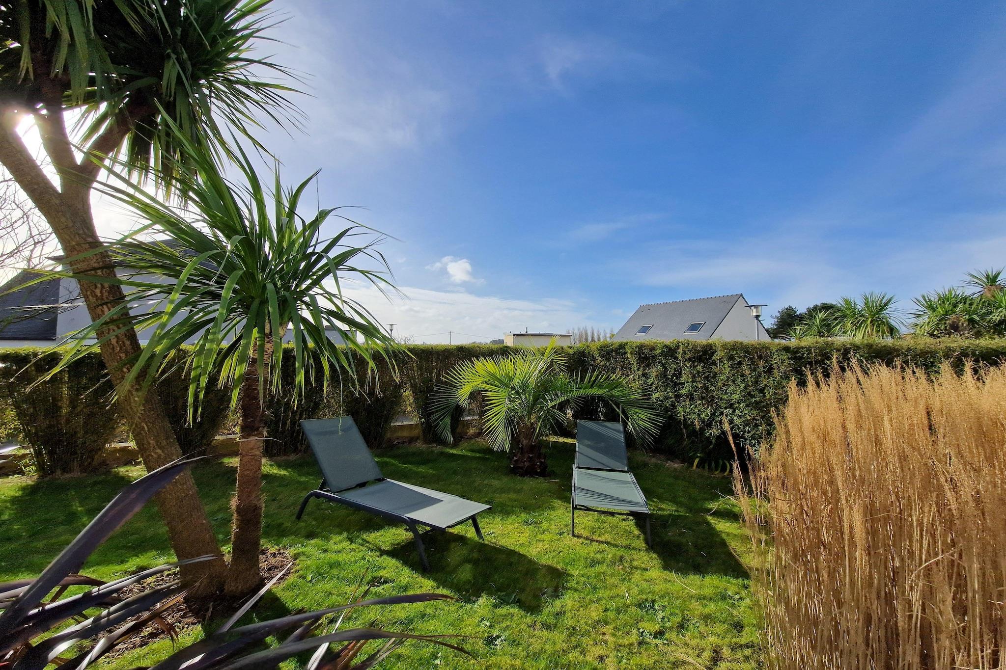 Denne moderne og komfortable indkvartering ligger i et roligt område af en populær badeby, mindre end en kilometer fra den nærmeste sandstrand. Ejendommen er omgivet af en smukt anlagt palmelund, der afspejler det milde maritime klima i Morlaix-bugten, og tilbyder idylliske omgivelser for en bretonsk ferie. Mellem unikt kystlandskab, frodig vegetation og en rig historisk arv kombinerer beliggenheden perfekt natur og kultur for en uforglemmelig ferie. Den charmerende ferieby Carantec, beliggende på en malerisk halvø, kan prale af tre storslåede sandstrande, der hver vender i en anden retning. Som det ofte er tilfældet i Finistère, er landbrug en integreret del af dagligdagen: Du kan nyde fyldige artiskokker, økologiske grøntsager, friskfanget fisk og lækre skaldyr - en ægte smag af Bretagne. Blandt de must-sees i området er havne- og kurbyen Roscoff, den storslåede katedral Saint-Pol-de-Léon, Château du Taureau og Île Callot, der er tilgængelig til fods ved lavvande. I nærheden ligger Morlaix, den lokale hovedstad med sin rige kulturarv, det perfekte supplement til dine udforskninger. En ideel region til at opleve alle aspekter af Bretagne.