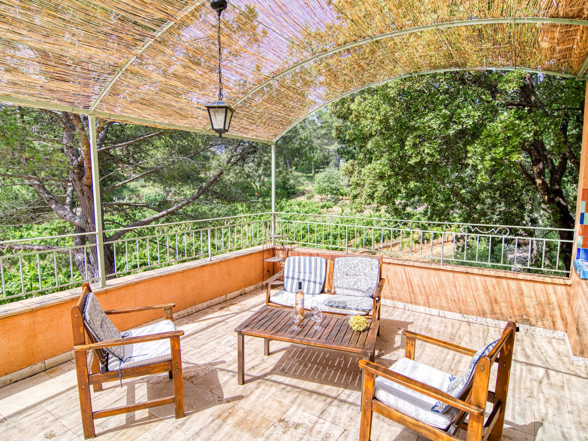 "Gombaud", 5-room house 160 m2 on 2 levels. Bright, cosy furnishings: living/dining room, on 2 levels with open-hearth fireplace (only for decoration), dining table and satellite TV. Exit to the terrace. 1 room with 1 french bed (140 cm, length 190 cm). Exit to the terrace. 1 room with 2 beds (90 cm, length 190 cm). Open kitchen (oven, dishwasher, 4 induction hot plates, toaster, kettle, microwave, freezer, electric coffee machine). Exit to the terrace. Bathroom, sep. WC, double hand-basin. Upper floor: (spiral staircase) walk-through room with 1 double sofabed (140 cm, length 190 cm), shower/WC. Interconnecting room with 1 french bed (140 cm, length 190 cm). Underfloor heating. Large terrace, south facing position terrace. Terrace furniture, barbecue (portable), deck chairs (8). View of the garden. Facilities: washing machine, iron, mosquito net, children's high chair, baby cot. Internet (WiFi, free). Please note: non-smoking house. Maximum 2 pets/ dogs allowed. Smoke alarm. 83032000002HS