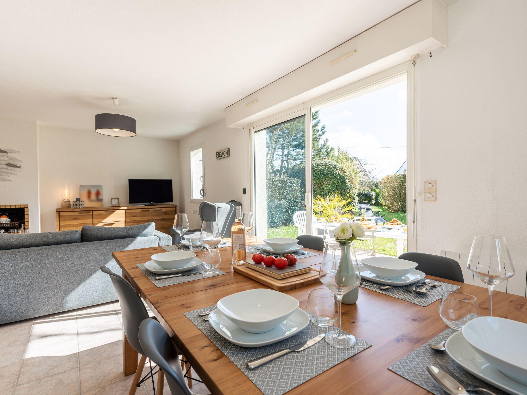 4-room house 90 m2 on 2 levels. Comfortable and beautiful furnishings: living/dining room with TV (flat screen). Exit to the garden. Open kitchen (oven, dishwasher, 4 ceramic glass hob hotplates, toaster, kettle, freezer, electric coffee machine, Capsules for coffee machine (Nespresso) extra). Shower/WC. Upper floor: 1 room with 1 french bed (1 x 160 cm, length 190 cm). 1 room with 2 beds (90 cm, length 190 cm). 1 room with 2 beds (80 cm, length 190 cm). Shower/WC. Electric heating. Terrace 30 m2, south facing position, garden 250 m2. Terrace furniture, barbecue, deck chairs (2). Facilities: washing machine, dryer, iron, hair dryer. Internet (WiFi, free). Parking at the house. Please note: non-smokers only. Smoke alarm. Offer by a private individual according to Art. 155, IV of CGI. 56034000615FE