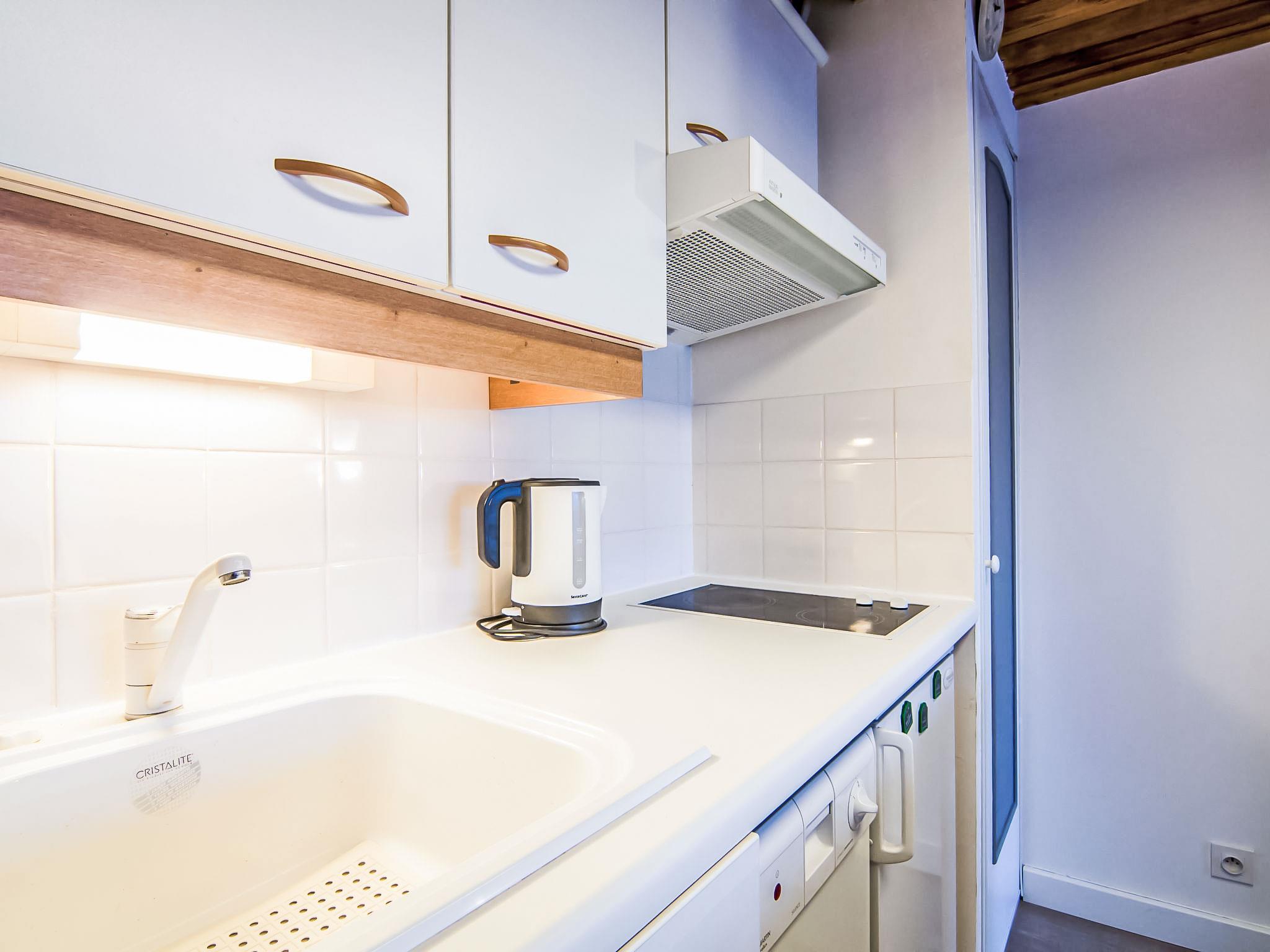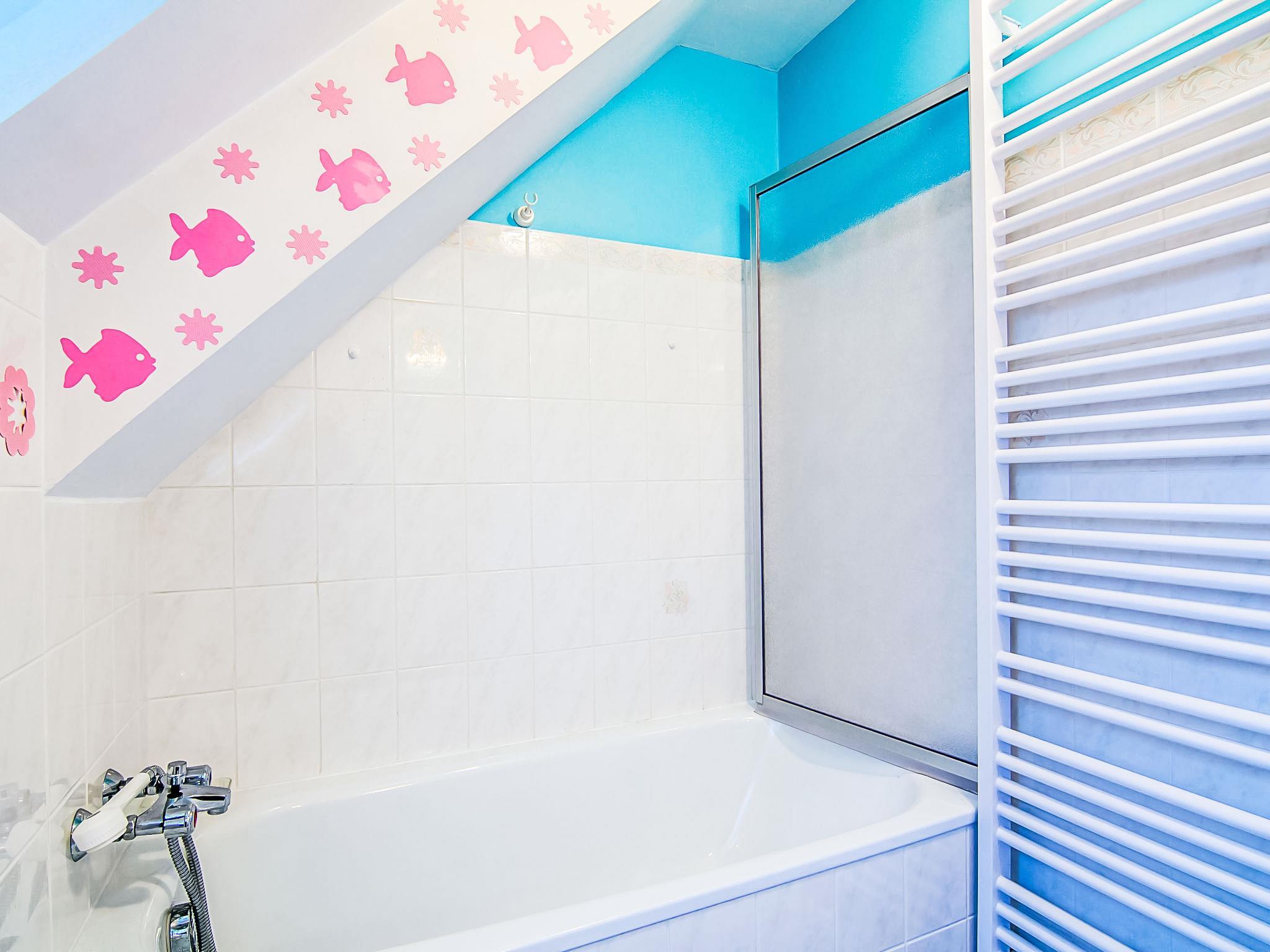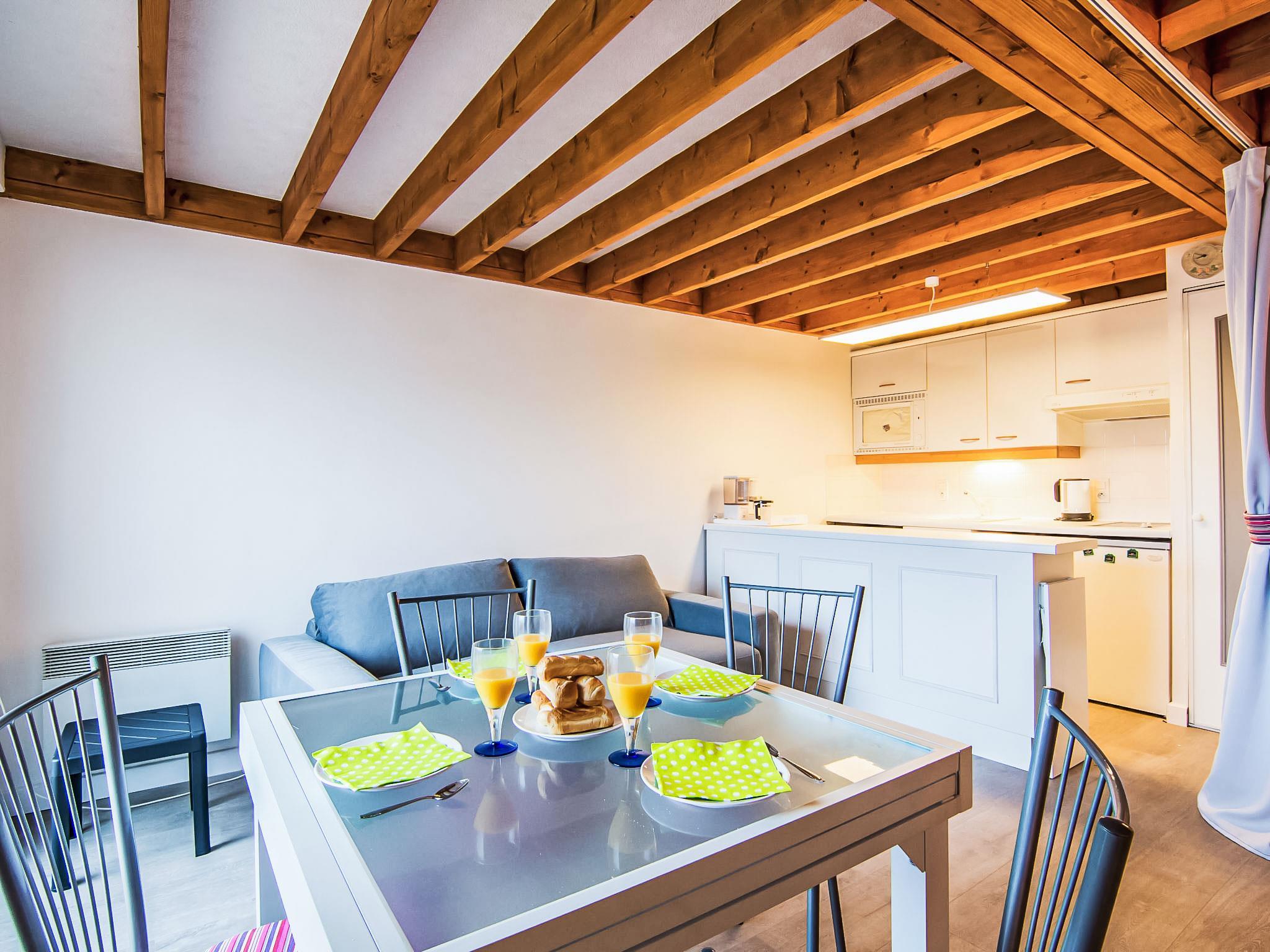 3-room apartment 41 m2 on 2 levels on 1st floor. Practical and beautiful furnishings: living/dining room with panoramic window with TV (flat screen). Exit to the balcony. 1 room with 1 french bed (1 x 140 cm, length 190 cm). Kitchenette (mini-oven, dishwasher, 2 ceramic glass hob hotplates, electric coffee machine). Sep. WC. Upper floor: 1 children's room with 1 x 2 bunk beds (90 cm, length 190 cm). Bathroom. Electric heating. Balcony furniture. Side view of the swimming pool. Facilities: washing machine. Internet (WiFi, free). Parking space n 1-7. Please note: smoke alarm. Swimming pool completely renovated in 2022. 56034000762D3
