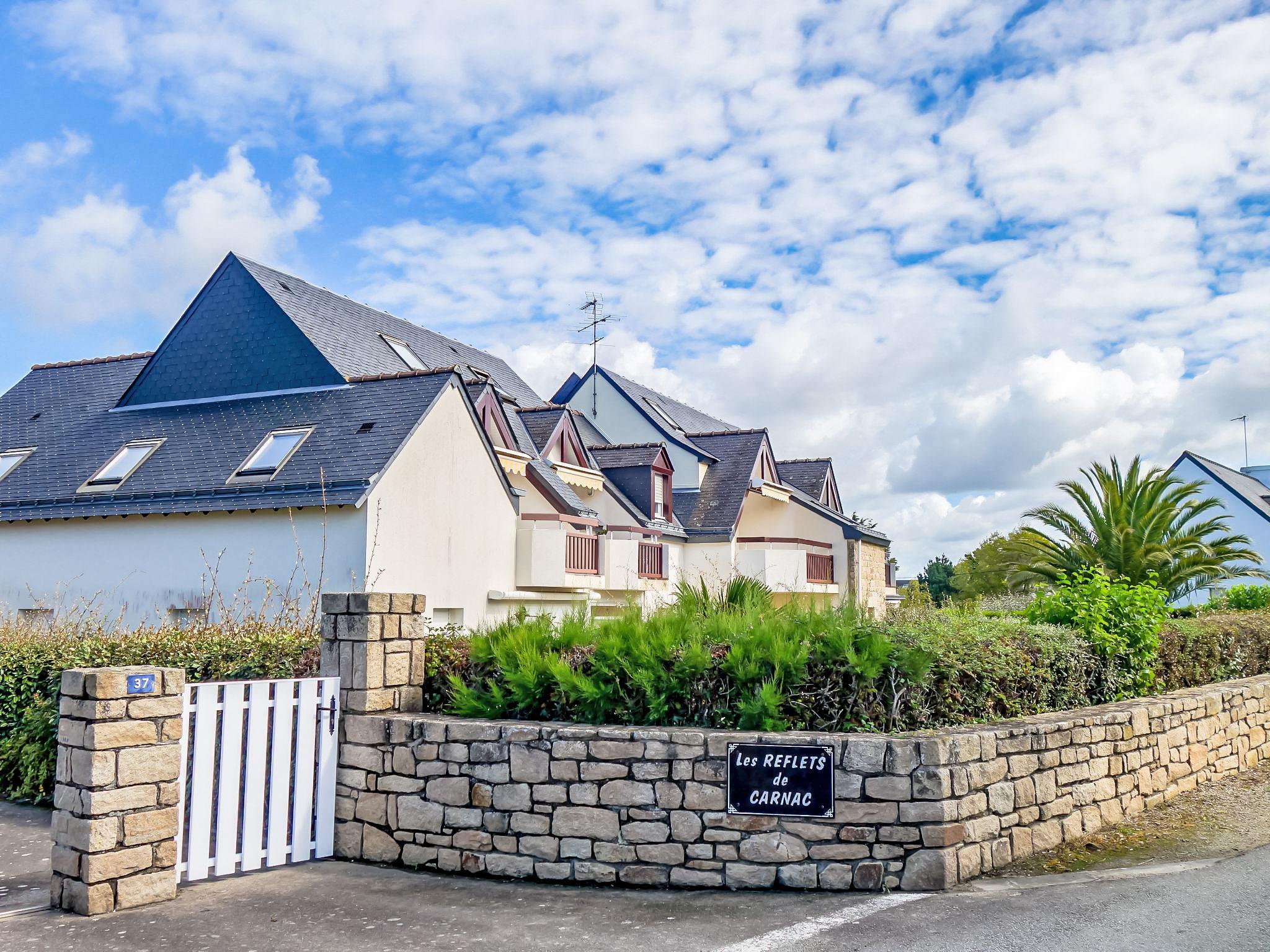Residence "Les Reflets de Carnac", 2 storeys. In the resort 1.2 km from the centre of Carnac Plage, in the residential district, 250 m from the sea, 250 m from the beach. For shared use: swimming pool angular (seasonal availability: 15.Jun. - 15.Sep.). Outdoor shower, parking space n 7-1. Supermarket 1.6 km, shopping centre 1.2 km, 10 minute walk to the centre, bus stop "." 600 m, sandy beach "Plage de Légenèse" 240 m, thermal baths "Thalassothérapie de Carnac" 1.2 km. Golf course (18 hole) 13 km, sailing school 1 km, tennis 100 m. Nearby attractions: Les Alignements de Carnac 3 km, La Trinité sur Mer 4 km, Presqu'ile de Quiberon 15 km, Auray et le vieux port de St Goustan 12 km, Vannes 35 km, Lorient 60 km.