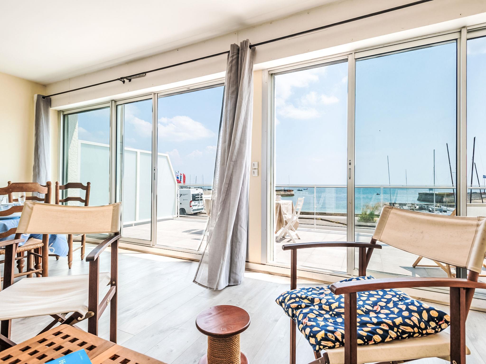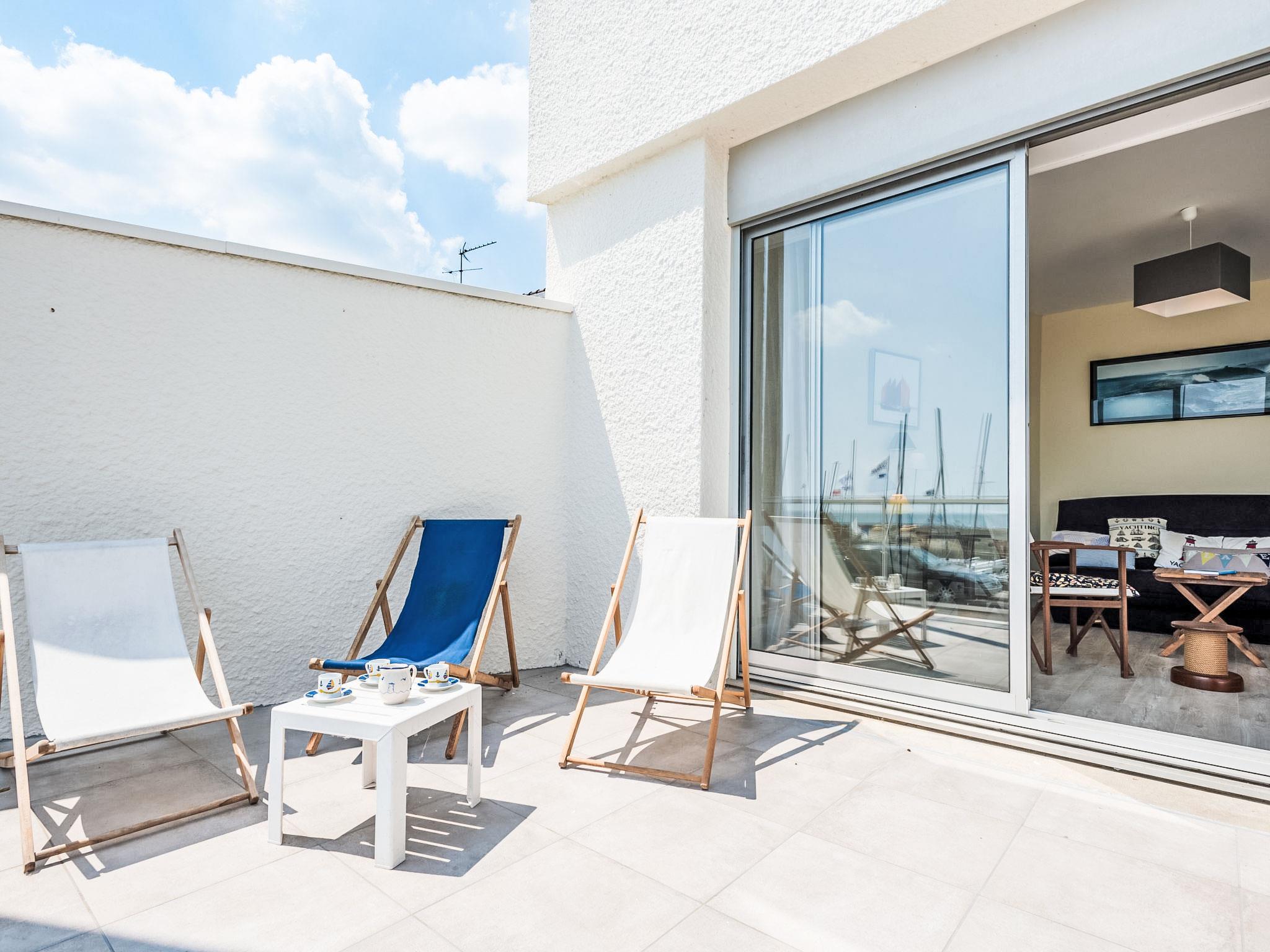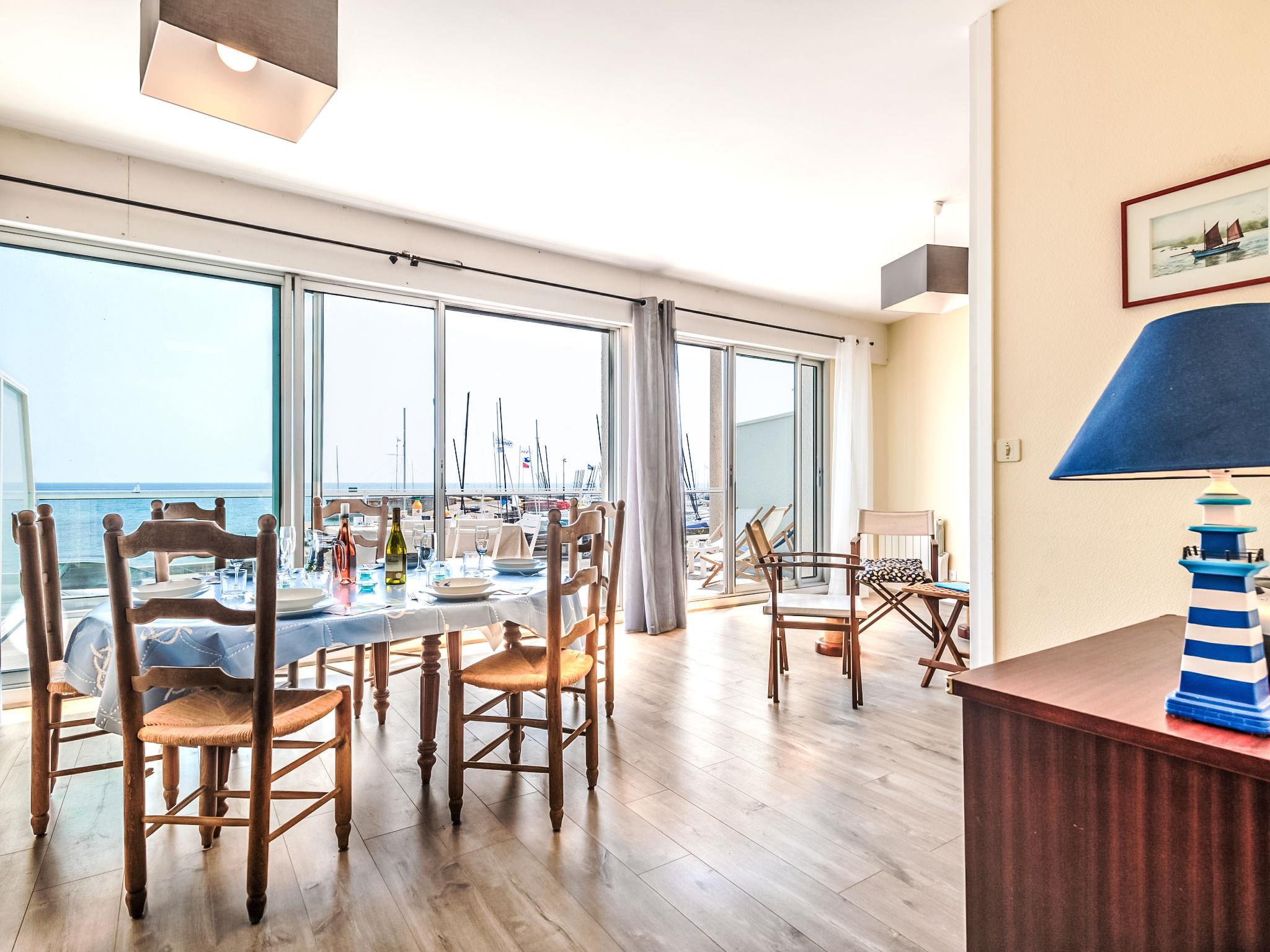 3-room apartment 74 m2, on the upper ground floor. Object suitable for 4 adults + 2 children. Cosy furnishings: entrance hall. Living/dining room with 1 double sofabed and TV (flat screen). Exit to the terrace. 1 room with 2 beds (90 cm, length 190 cm). 1 room with 1 x 2 bunk beds. Exit to the balcony. Kitchen (4 hot plates, oven, dishwasher, microwave, freezer, electric coffee machine). Exit to the balcony. Shower, sep. WC. Electric heating. Small balcony 7 m2, large terrace 24 m2. Terrace furniture, deck chairs (2). View of the sea and the port. Facilities: washing machine. Internet (WiFi, extra). Parking space n 1. Please note: apartment street side. Maximum 1 pet/ dog allowed. Smoke alarm. 56034000663D4