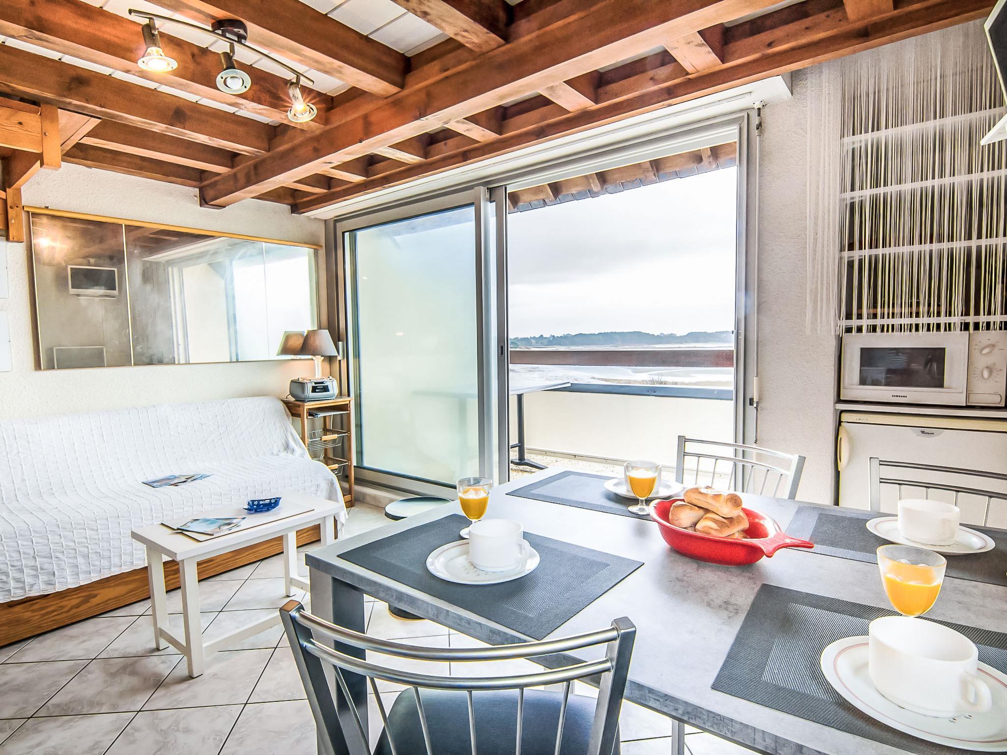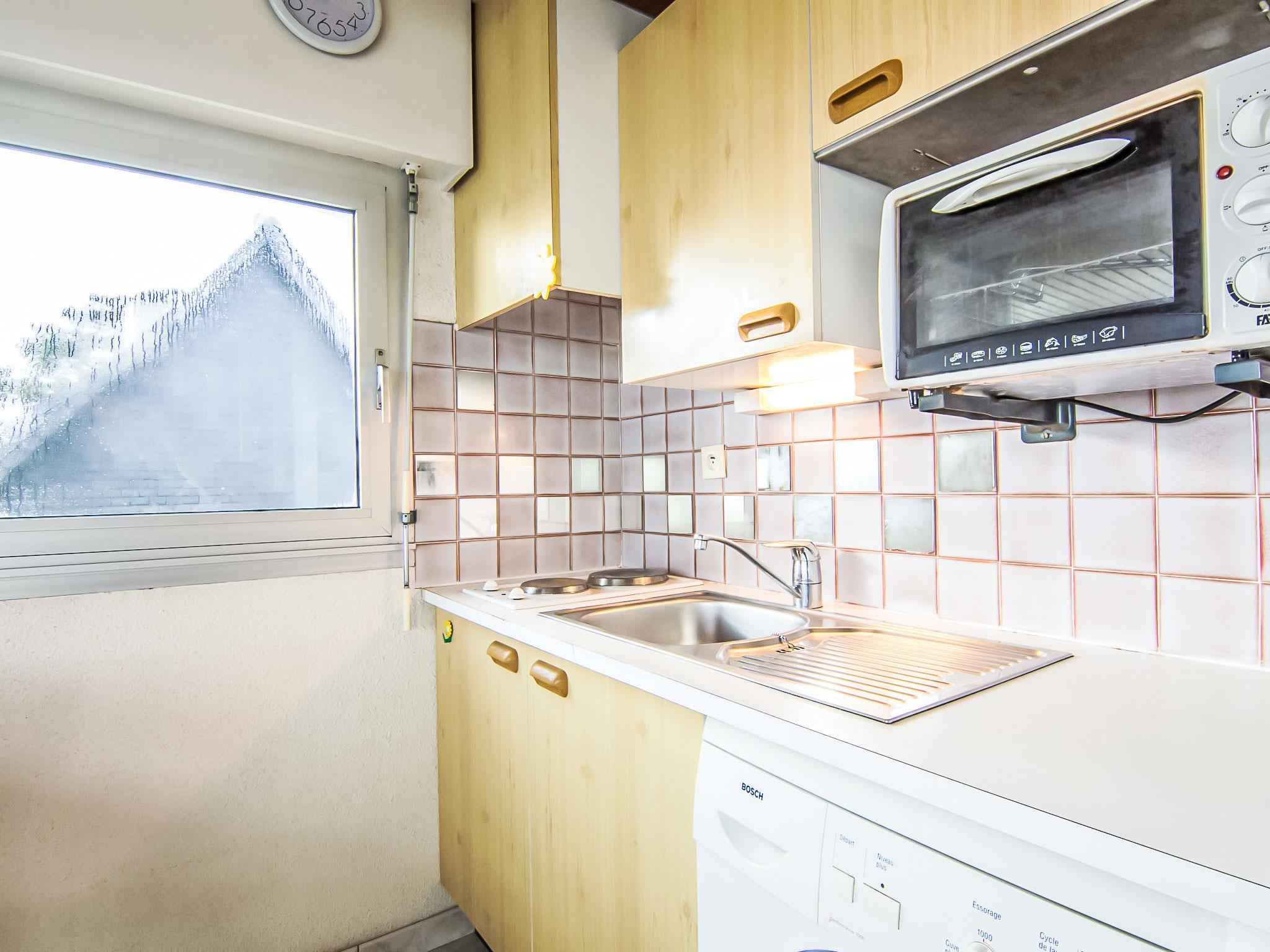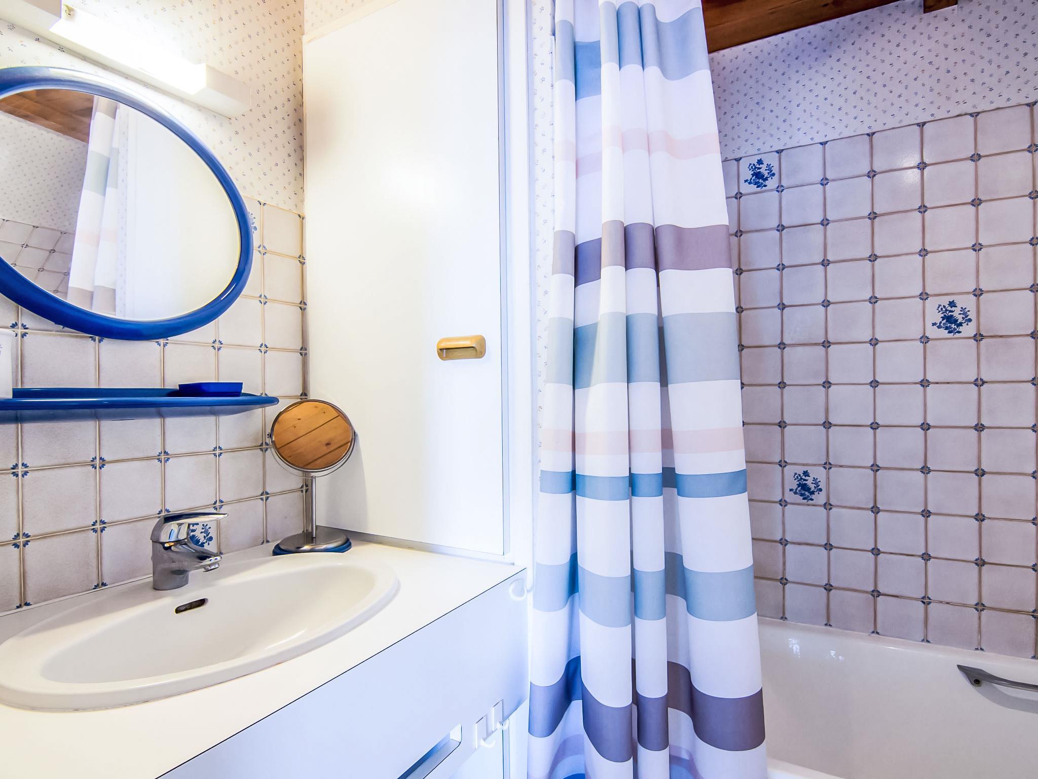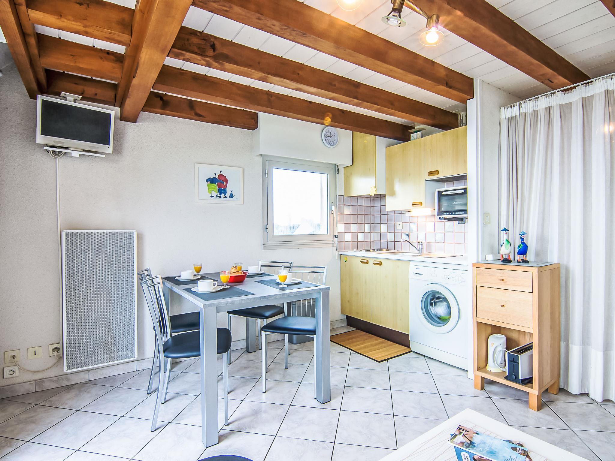 2-room apartment 29 m2 on 2 levels on 2nd floor, south-east facing position. Living/dining room with 1 pull-out bed (2 pers.), TV. Exit to the balcony. Kitchenette (2 hot plates, oven, microwave). Bath/WC. Upper floor: 1 room with sloping ceilings with 1 french bed (140 cm). Balcony 5 m2. Balcony furniture. Beautiful view of the sea. Facilities: washing machine, hair dryer. Internet (WiFi, extra). Parking space n 14. Please note: TV only FR. Smoke alarm.