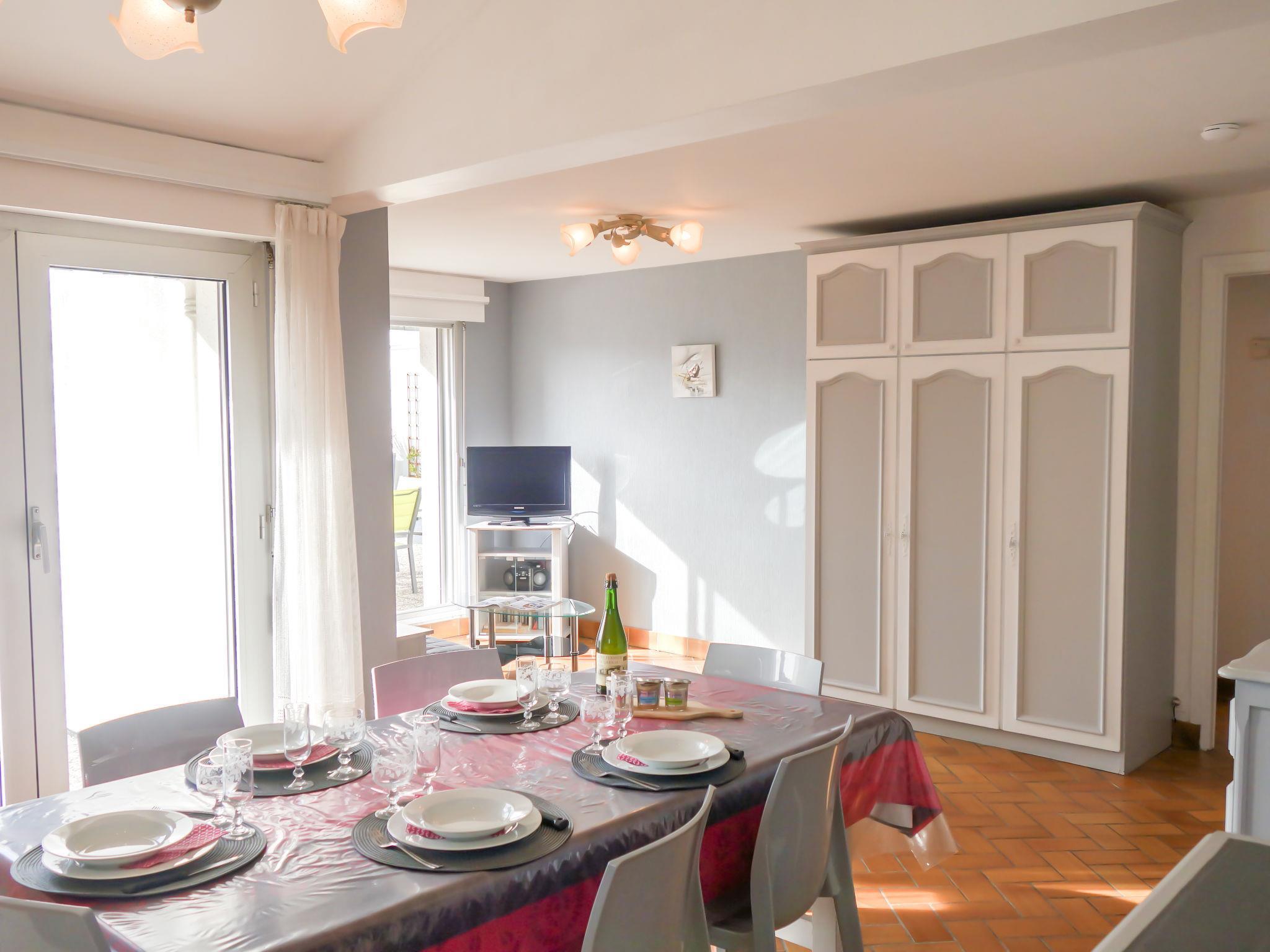 Apartment house "Les Embruns", 2 storeys. In the centre of Carnac, 300 m from the sea, 300 m from the beach. Shop 50 m, supermarket 500 m, restaurant, café, sandy beach "Grande plage de Carnac" 300 m. Golf course (18 hole) 13 km, sailing school 1 km. Nearby attractions: Vannes 34 km, La Trinité sur Mer 5 km, Golfe du Morbihan, Presqu'île de Quiberon 18 km, Alignements de Carnac 6 km, Thalassothérapie 300 m. Please note: no lift. The owner does not accept any youth groups.