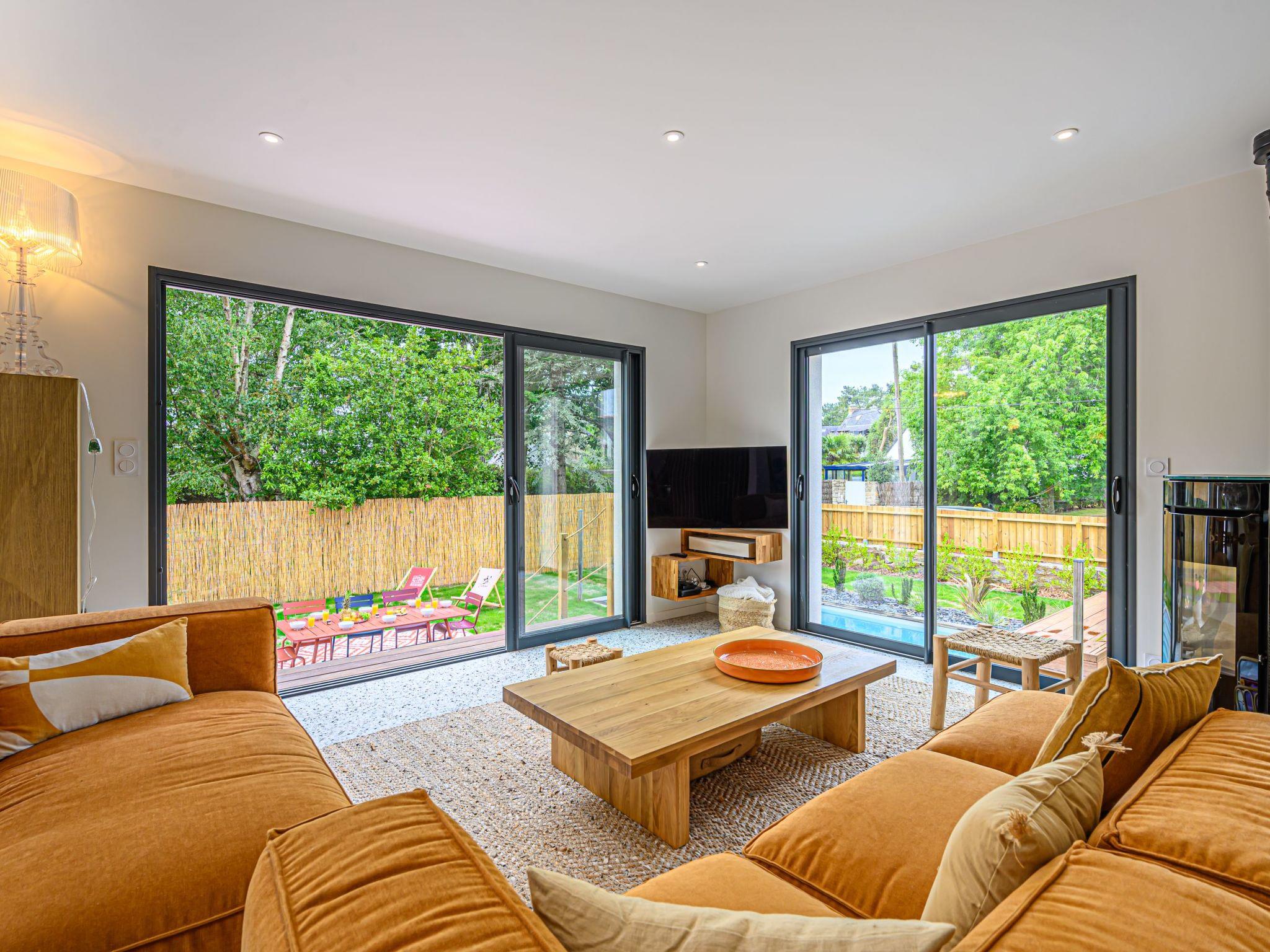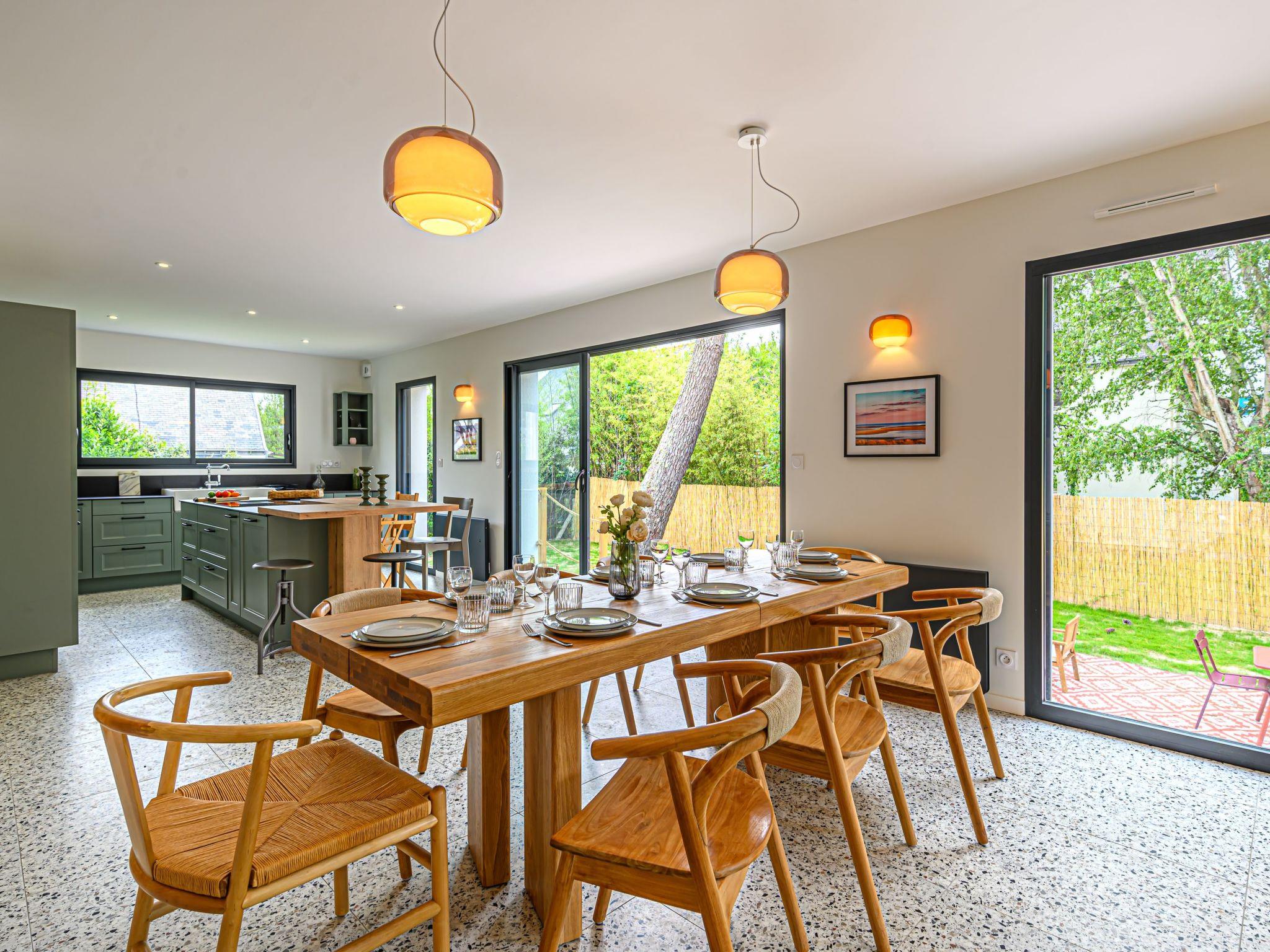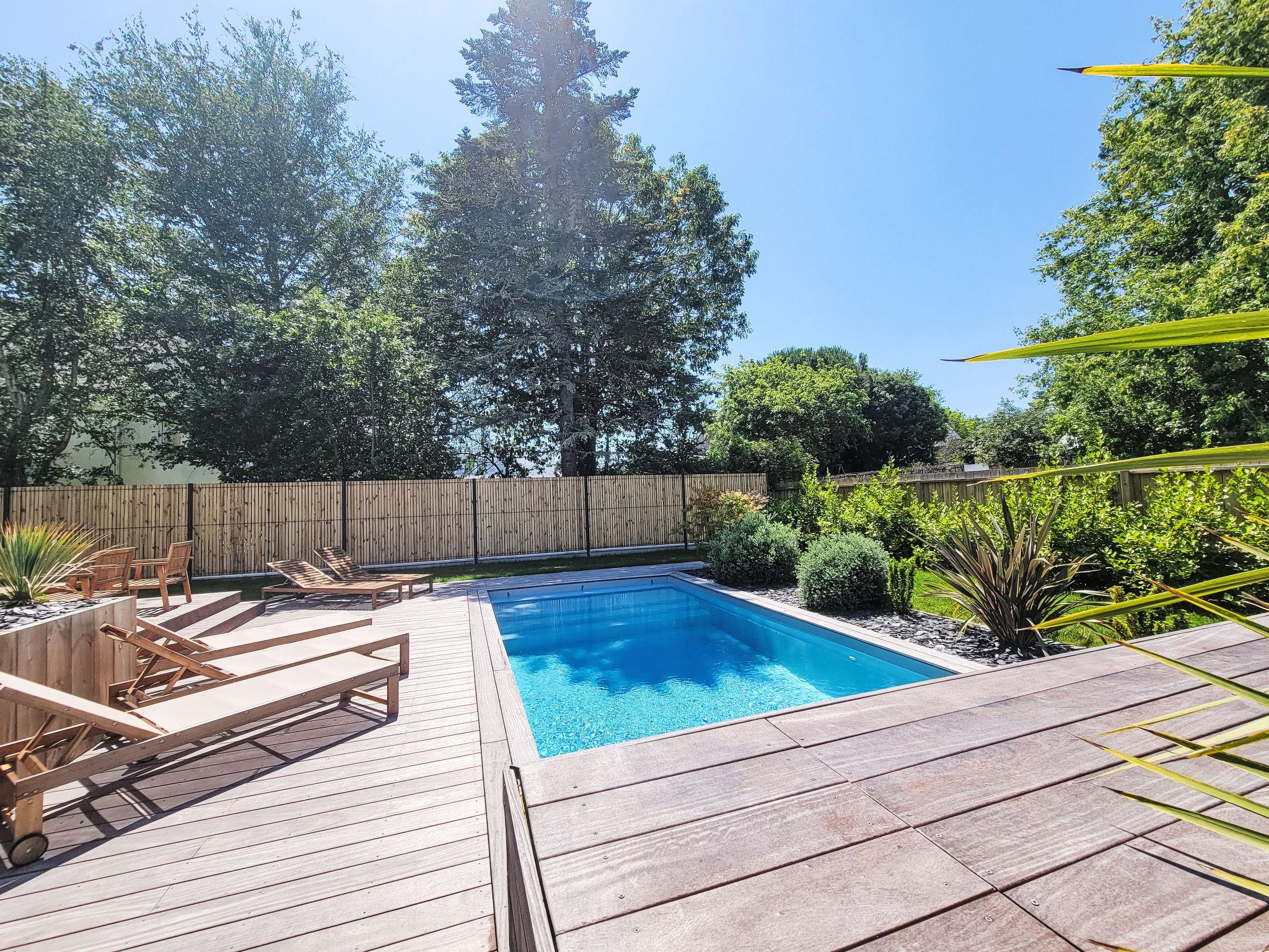 Very beautiful villa "Villa Azur", 2 storeys, built in 2022. In the resort 800 m from the centre of Carnac Plage, 300 m from the sea, from the beach, south facing position. Private: garden 635 m2 (fenced), swimming pool heated (8 x 3 m, seasonal availability: 15.Jun. - 15.Sep.) with internal staircase and shutter cover. Parking. Grocery, supermarket 50 m, restaurant, bakery 1.2 km, café 700 m, sandy beach "Le Men Du" 700 m. Sports harbour 4 km, golf course (18 hole) 15 km, surf school 7 km, sailing school 2 km, tennis 1 km. Nearby attractions: Les Alignements de Carnac 3 km, La Trinité sur Mer 3 km, Presqu'île de Quiberon 15 km, Auray - Port de St Goustan 15 km, Vannes 25 km. Hiking paths: Golf du Morbihan 20 km. Neighbourhood highly sensitive to noise. Quietness and good behaviour expected.