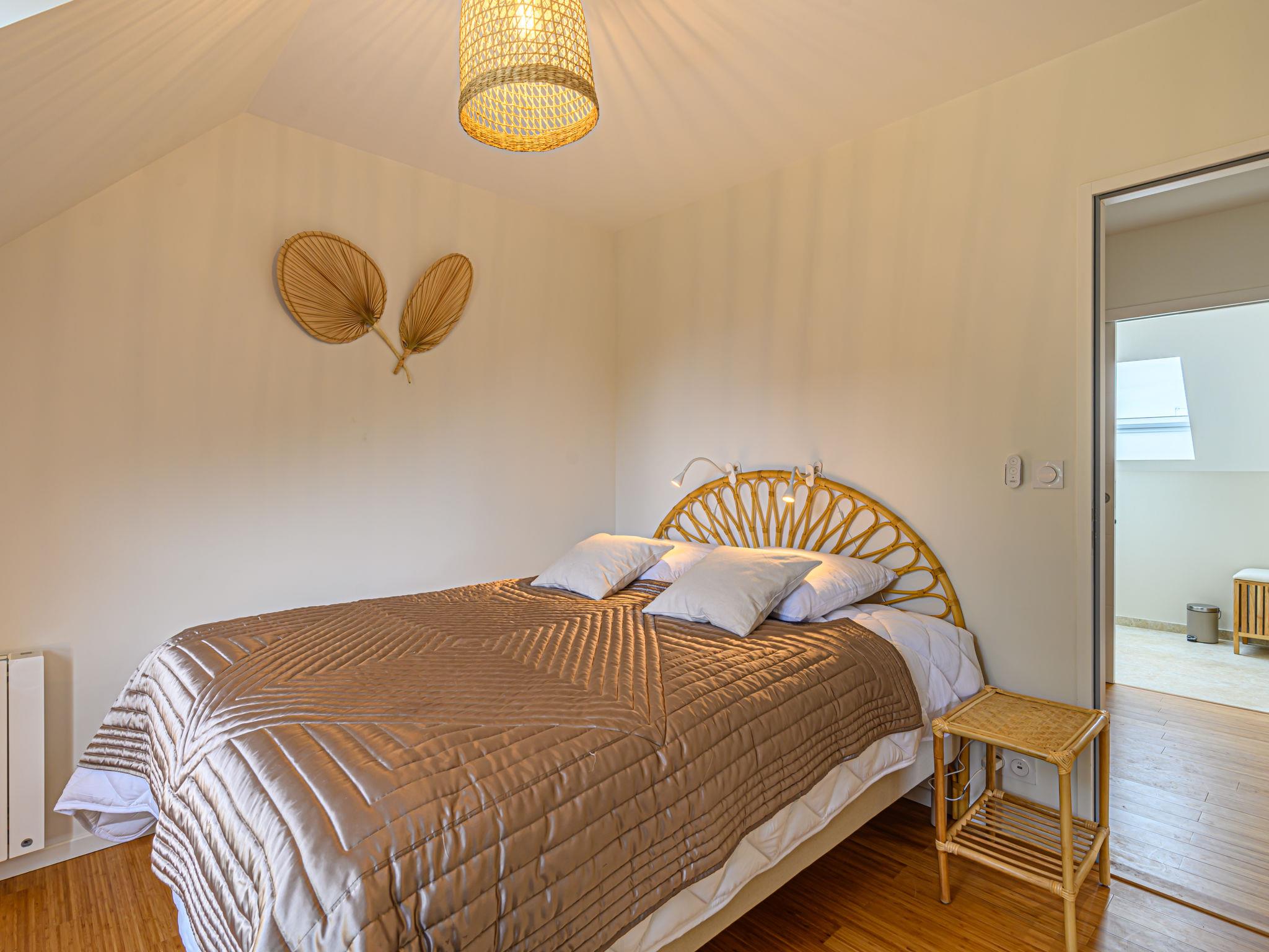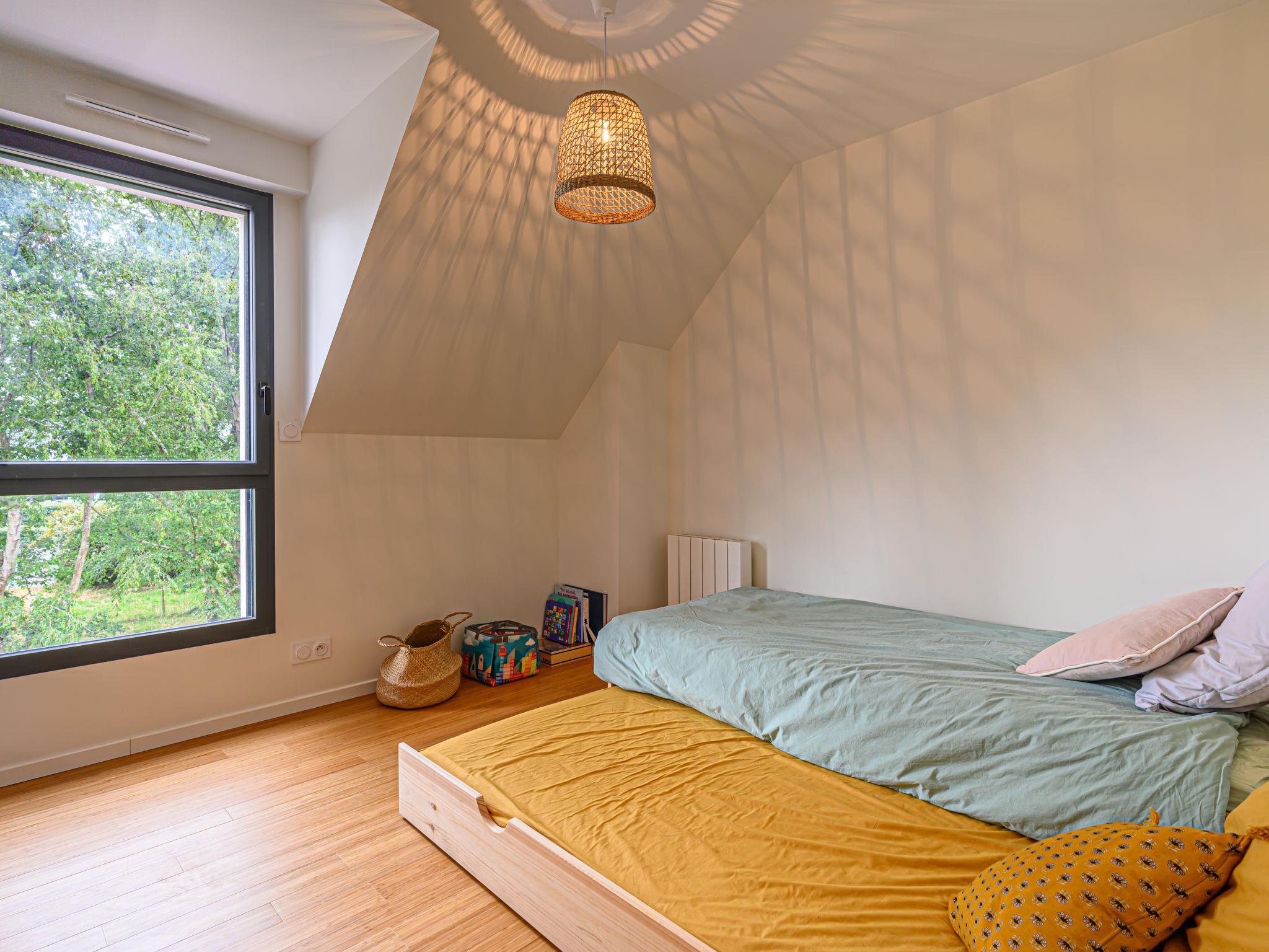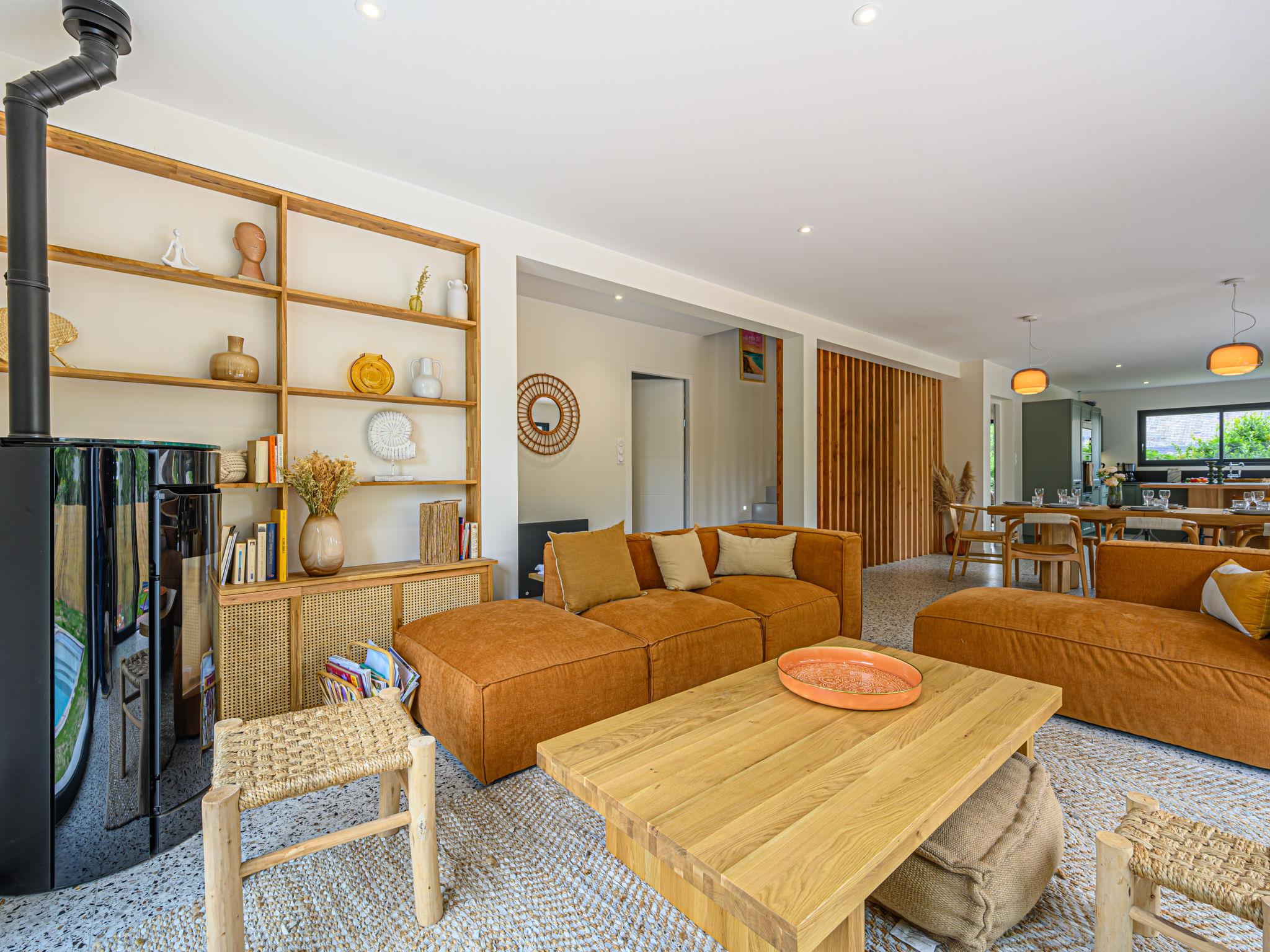 Very beautiful villa "Villa Azur", 2 storeys, built in 2022. In the resort 800 m from the centre of Carnac Plage, 300 m from the sea, from the beach, south facing position. Private: garden 635 m2 (fenced), swimming pool heated (8 x 3 m, seasonal availability: 15.Jun. - 15.Sep.) with internal staircase and shutter cover. Parking. Grocery, supermarket 50 m, restaurant, bakery 1.2 km, café 700 m, sandy beach "Le Men Du" 700 m. Sports harbour 4 km, golf course (18 hole) 15 km, surf school 7 km, sailing school 2 km, tennis 1 km. Nearby attractions: Les Alignements de Carnac 3 km, La Trinité sur Mer 3 km, Presqu'île de Quiberon 15 km, Auray - Port de St Goustan 15 km, Vannes 25 km. Hiking paths: Golf du Morbihan 20 km. Neighbourhood highly sensitive to noise. Quietness and good behaviour expected.