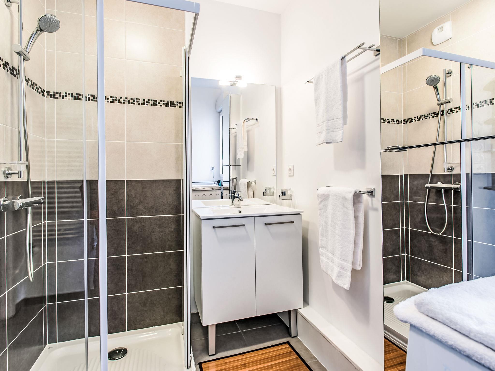 Market twice a week at the foot of the residence. Church at 30m. Residence "Stella Marine", 2 storeys, built in 2017. In the centre of Carnac Ville, 2 km from the sea, 2 km from the beach. In the complex: storage room for bicycles. Public parking. Shop 200 m, supermarket 1 km, restaurant 30 m, bar, bakery 50 m, café, sandy beach "Grande plage de Carnac" 2 km, thermal baths "Thalassothérapie" 2 km. Golf course (18 hole) 12 km, sailing school 2 km, tennis 2 km. Nearby attractions: Alignements de Carnac 1.5 km, La Trinité sur Mer 4 km, Golfe du Morbihan, Presqu'ile de Quiberon 15 km, Vannes 30 km, Lorient 55 km.