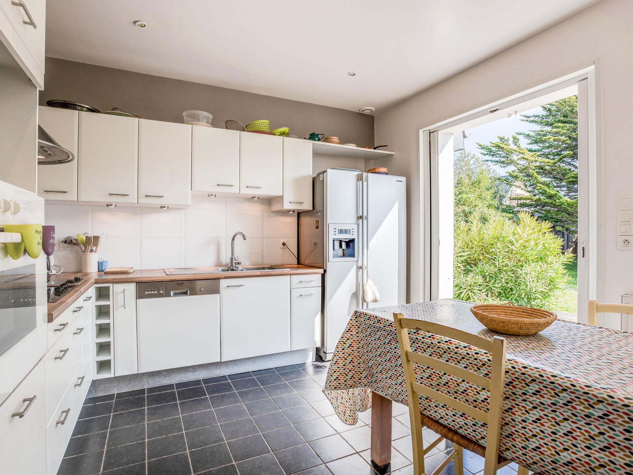 Beautiful single-family house "Maison Courlis", 2 storeys, renovated in 2013. In the resort, 1.4 km from the centre, in the residential district, 300 m from the sea, 300 m from the beach, in the countryside, south facing position. Private: garden 1'000 m2 (fenced). Outdoor shower, single garage. Shop 1.4 km, supermarket 1.4 km, restaurant 300 m, railway station "Auray" 16 km. Golf course (18 hole) 15 km, sailing school 1.4 km. Nearby attractions: Alignements de Carnac 4 km, La Trinité sur Mer 6 km, Presqu'île de Quiberon 15 km, Vannes 34 km.
