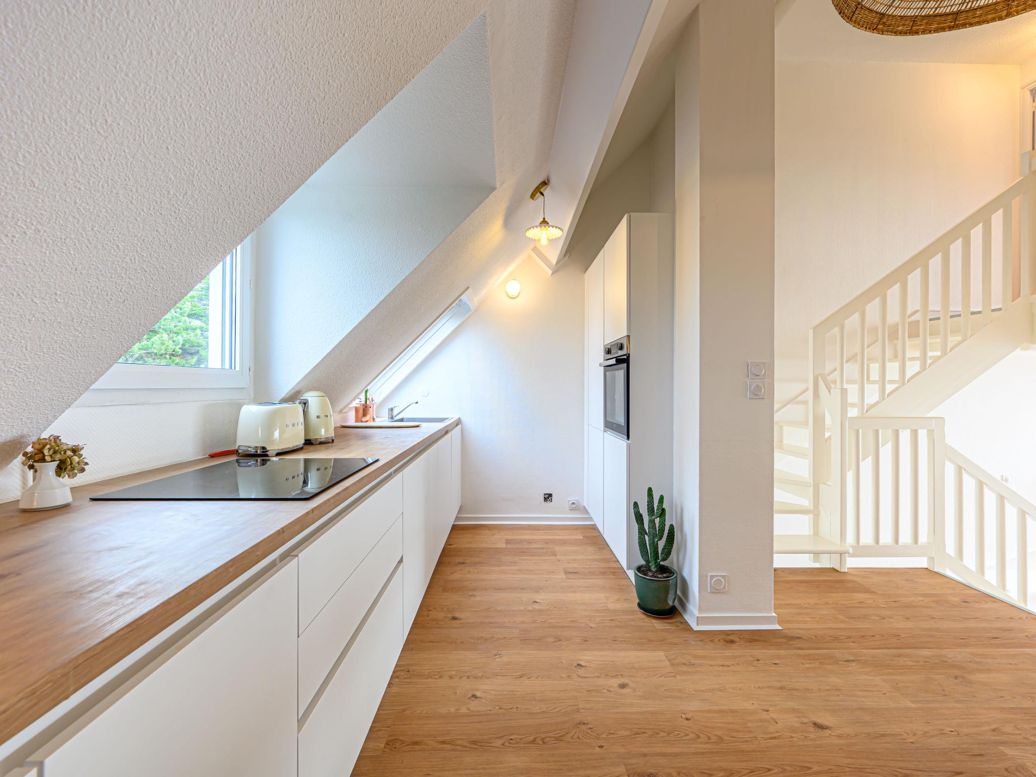 3-room maisonette 80 m2 on 1st floor. Fully renovated in 2025, beautiful furnishings: living/dining room with TV (flat screen). Exit to the terrace. 1 room with 2 beds (90 cm, length 190 cm). Open kitchen (oven, dishwasher, 3 induction hot plates, toaster, kettle, electric coffee machine, Capsules for coffee machine (Nespresso)). Bathroom, sep. WC, double hand-basin. Upper floor: 1 room with 1 french bed (1 x 160 cm, length 180 cm) with bathroom and separate WC. Terrace 13 m2, south facing position. Terrace furniture. Panoramic view of the sea. Facilities: washing machine, children's high chair, baby cot for up to 2 year olds, hair dryer. Internet (WiFi, free). Parking space n 2.3. Please note: non-smokers only. Smoke alarm. electric plancha. Offer by a private individual according to Art. 155, IV of CGI. 5603400099617