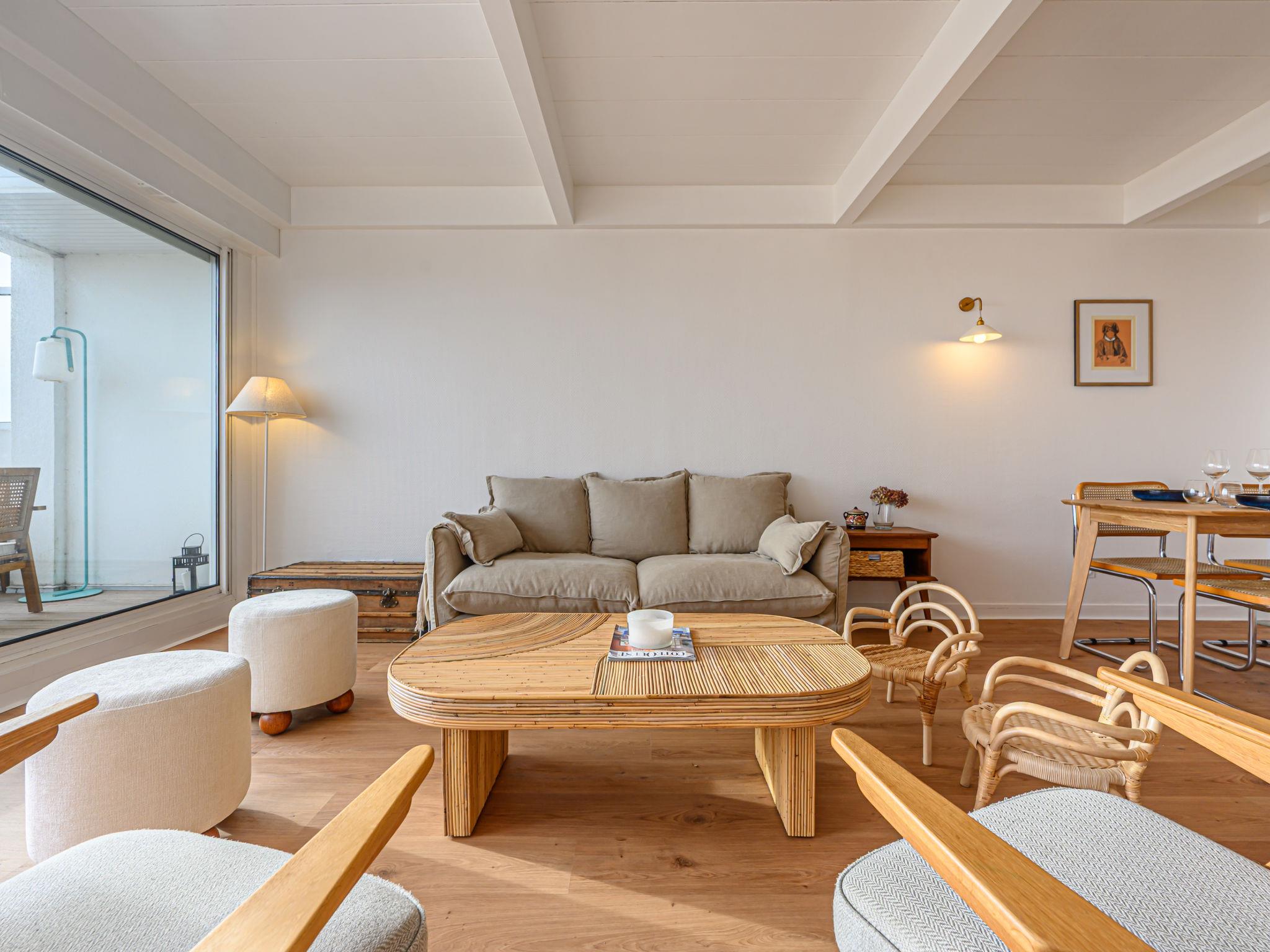 Apartment block "Madavoar", 3 storeys. In the resort Carnac Plage, 20 m from the sea, 20 m from the beach. Shop, grocery 350 m, restaurant 500 m, bakery 700 m, café, bus stop 500 m, sandy beach "Grande plage de Carnac" 20 m, thermal baths "Thalazur Carnac" 3 km. Sports harbour 3.5 km, golf course (18 hole) 15 km, surf school 5 km, sailing school 2.5 km. Nearby attractions: Les Alignements de Carnac 5 km, Les quais de la trinité-sur-mer 3 km, Auray & Saint-Goustan 15 km, Presqu'île de Quiberon 19 km, Vannes 35 km, Lorient 62 km. Hiking paths: Golfe du Morbihan 20 km.