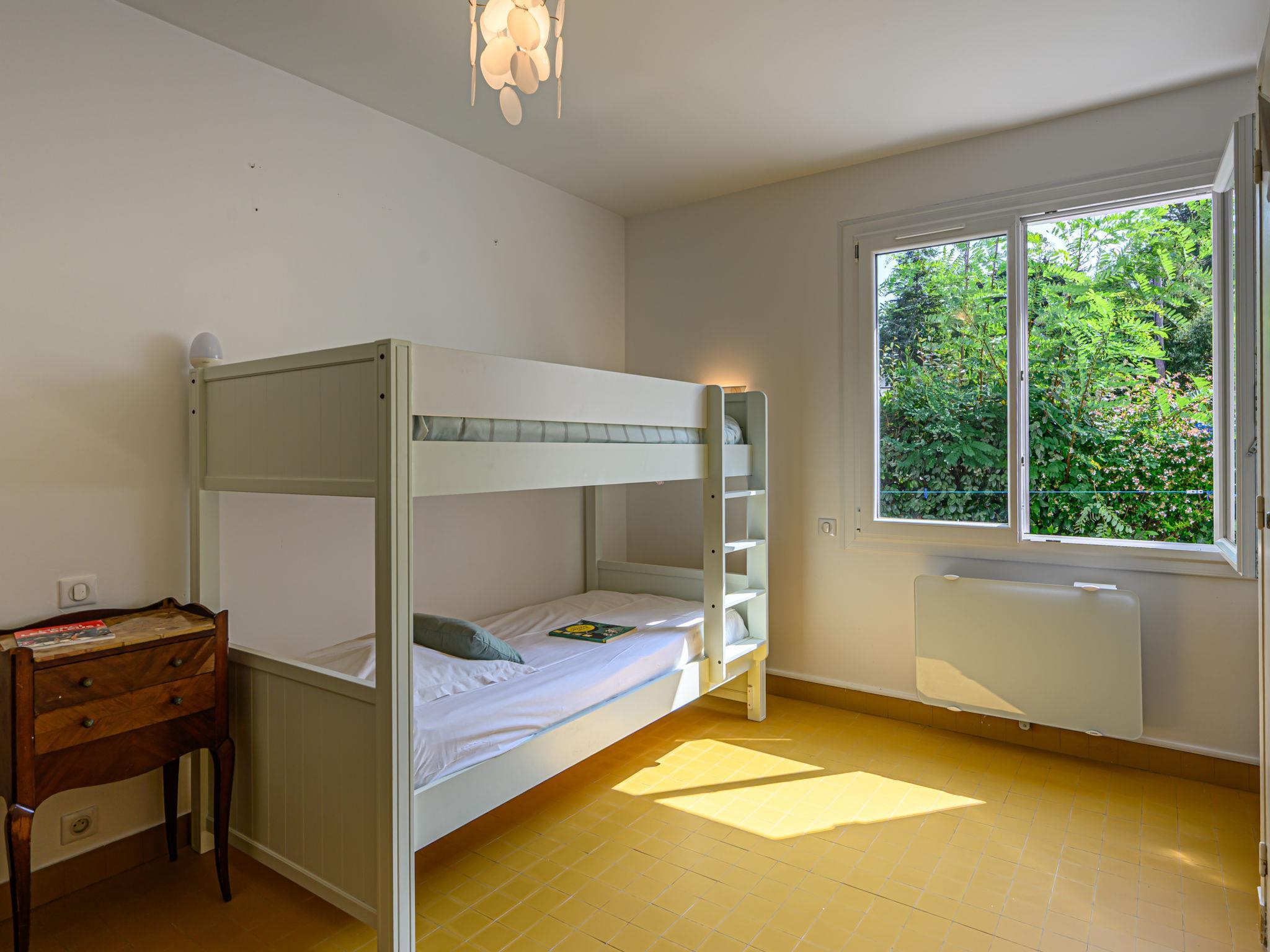 "L'Oasis 1", 4-room apartment 70 m2, on the ground floor. Partly renovated, comfortable furnishings: living/dining room with TV (flat screen). Exit to the terrace. 1 room with 1 french bed (1 x 160 cm, length 200 cm). 1 room with 2 beds (90 cm, length 190 cm). 1 room with 1 x 2 bunk beds (90 cm, length 190 cm), 1 french bed (1 x 140 cm, length 190 cm). Kitchen (oven, dishwasher, 3 ceramic glass hob hotplates, toaster, kettle, microwave, electric coffee machine). Shower, sep. WC. Natural stone floors. Terrace 40 m2, south facing position, large garden 800 m2, south facing position. Terrace furniture, barbecue. Facilities: washing machine, hair dryer. Internet (WiFi, free). Please note: smoke alarm. Offer by a private individual according to Art. 155, IV of CGI. 56034000768F7