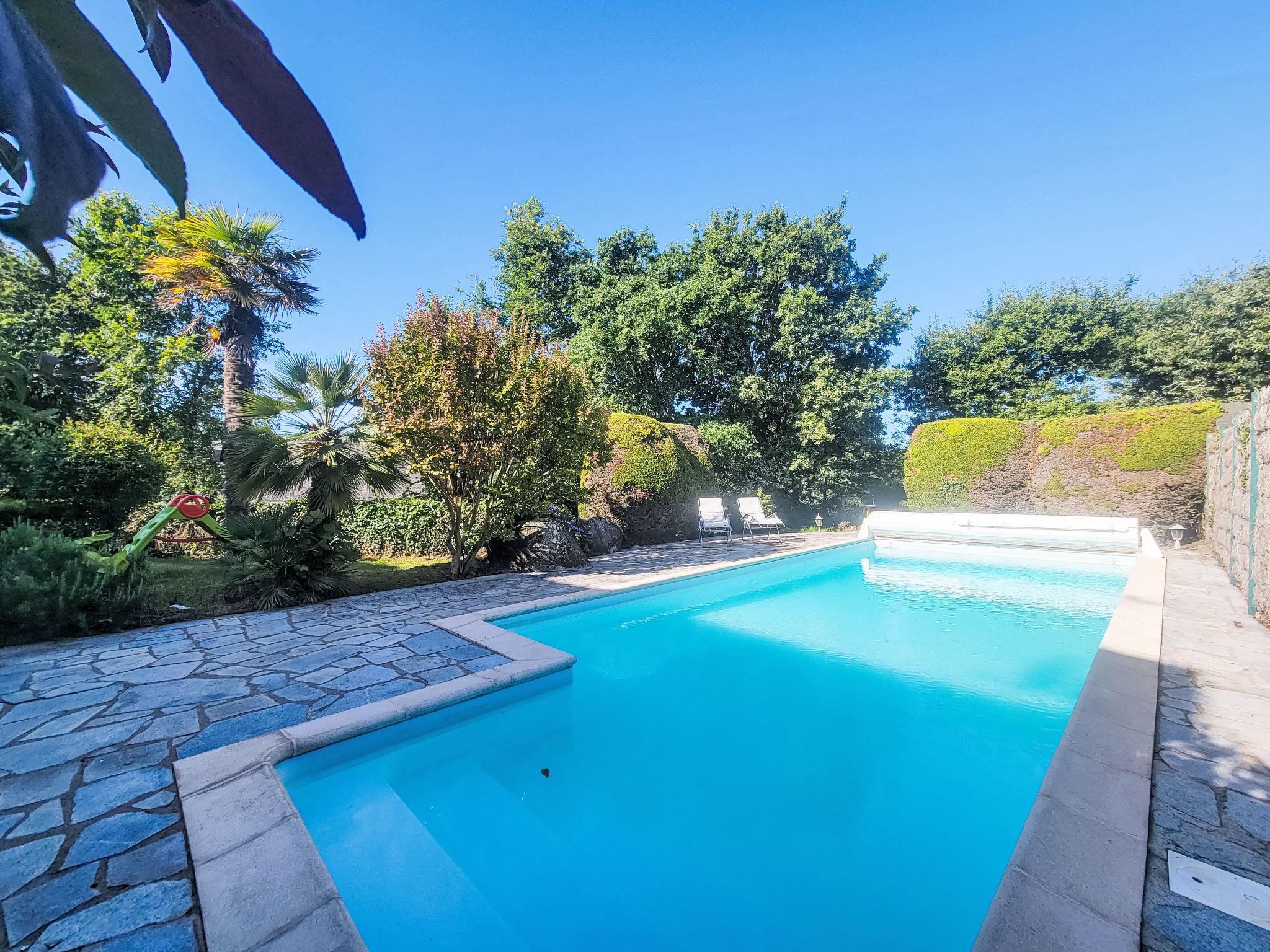 Large single-family house "Kergrim", 2 storeys, surrounded by trees. 7 km from the sea, 7 km from the beach. Private: garden 980 m2 (fenced), swimming pool heated (8 x 4 m, seasonal availability: 24.Jun. - 23.Sep.). Terrace (20 m2), garden furniture, barbecue, parking (for 3 cars). Supermarket 4 km, restaurant 4 km, bakery 4 km, café 4 km, sandy beach "Grande plage Carnac" 7 km. Golf course (18 hole) 7 km, surf school 5 km, sailing school 7 km. Nearby attractions: Les Alignements de Carnac 5 km, Port de la Trinité sur Mer 7 km, Presqu'île de Quiberon 15 km, Vannes 30 km. Hiking paths: Golf du Morbihan.