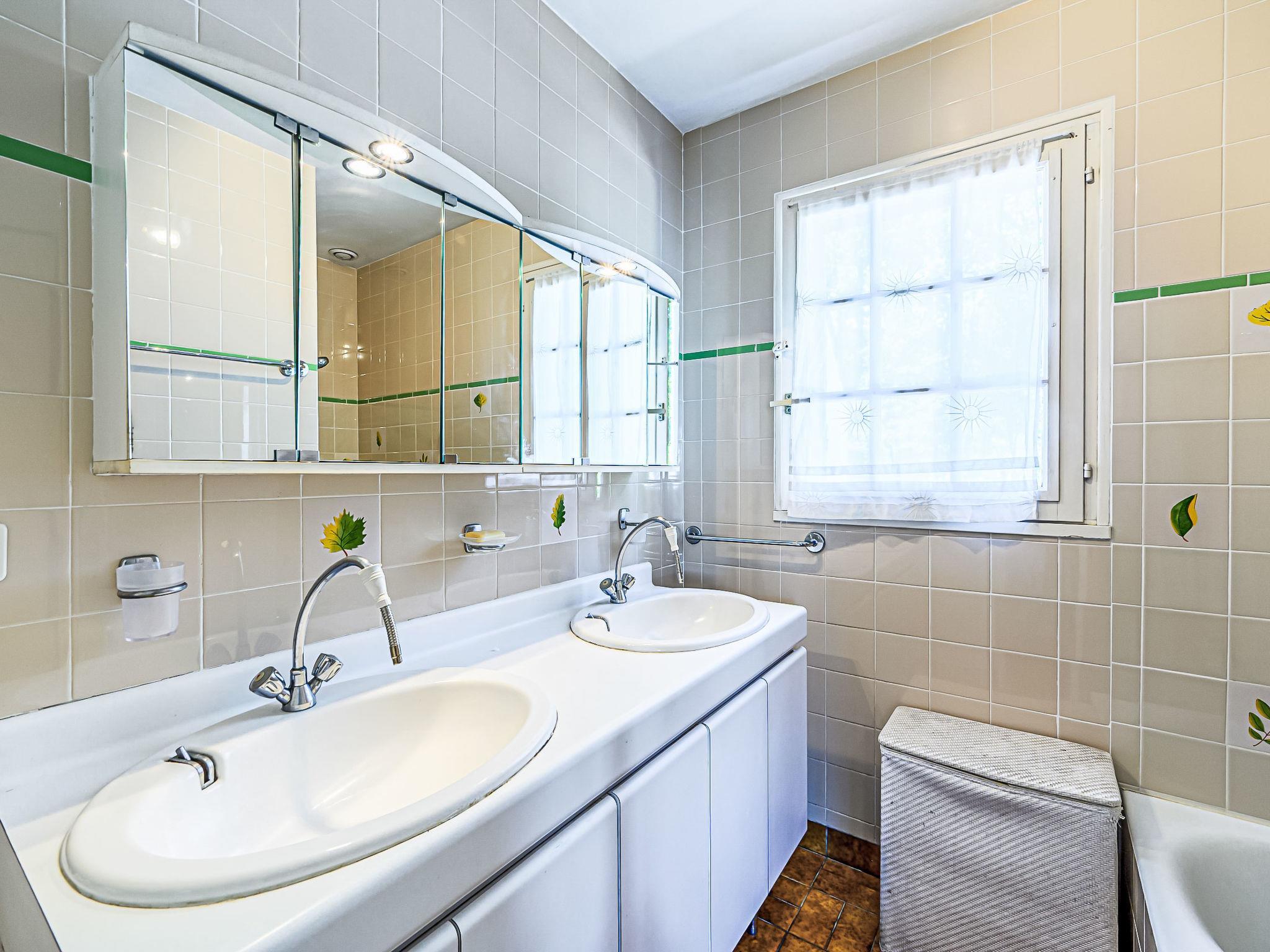 9-room house 200 m2, on the ground floor. Practical furnishings: living/dining room with open-hearth fireplace (only for decoration). Exit to the veranda. Office with TV (flat screen). 2 rooms, each room with 1 french bed (1 x 140 cm, length 190 cm). Kitchen (3 hot plates, oven, dishwasher, toaster, kettle, microwave, electric coffee machine). Bathroom, bath/shower, 2 sep. WC's. Upper floor: 1 room with 1 bed (90 cm, length 190 cm), 1 x 2 bunk beds (90 cm, length 190 cm). 3 rooms, each room with 1 bed (90 cm, length 190 cm). 2 rooms, each room with 1 french bed (1 x 140 cm, length 190 cm). Bathroom, sep. WC. Terrace 20 m2, south facing position. Terrace furniture. Facilities: washing machine, hair dryer. Internet (WiFi, free). Parking (5 cars). Please note: smoke alarm. No internal connecting door between the separated properties. The house is composed of a main part and an adjoining annex. Distribution of rooms: main house composed of 5 bedrooms (10 people) and annex composed of 3 bedrooms (4 people). The washing machine is installed in the annex. Offer by a private individual according to Art. 155, IV of CGI. 5603400085484