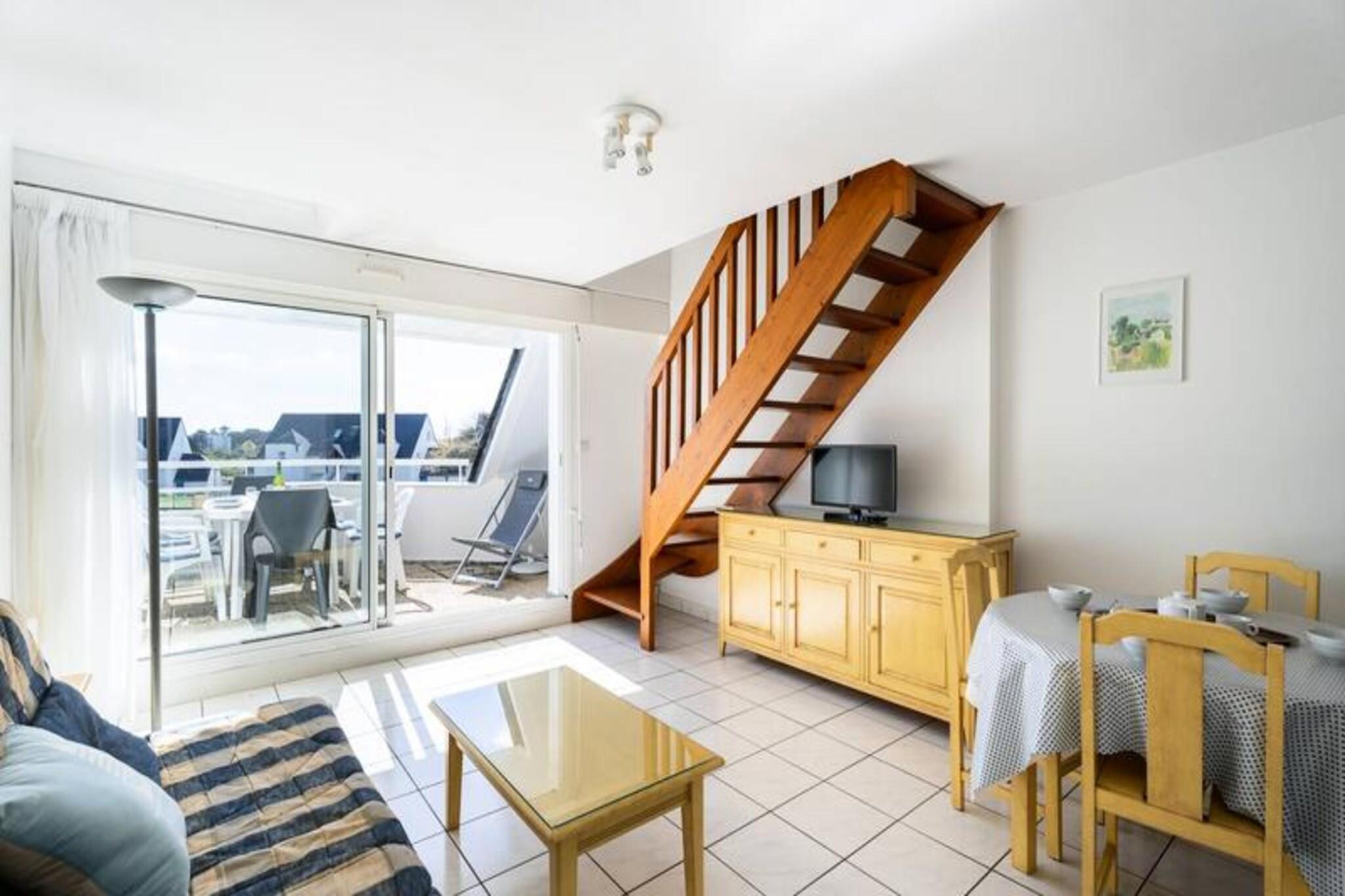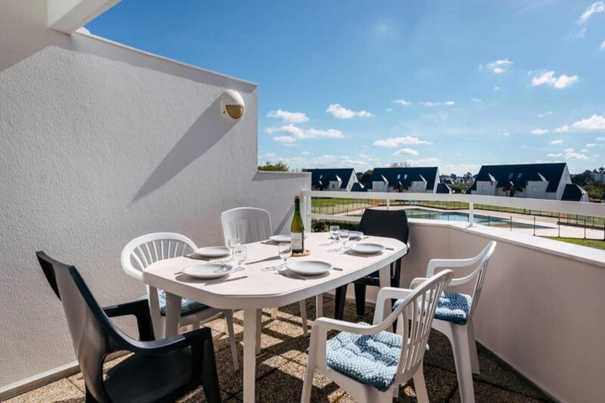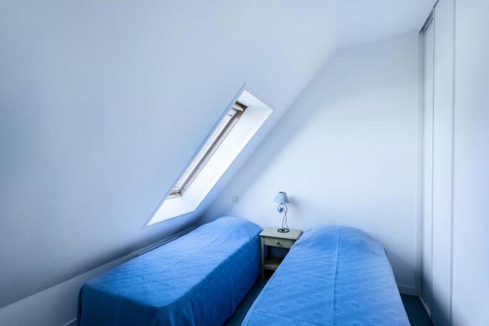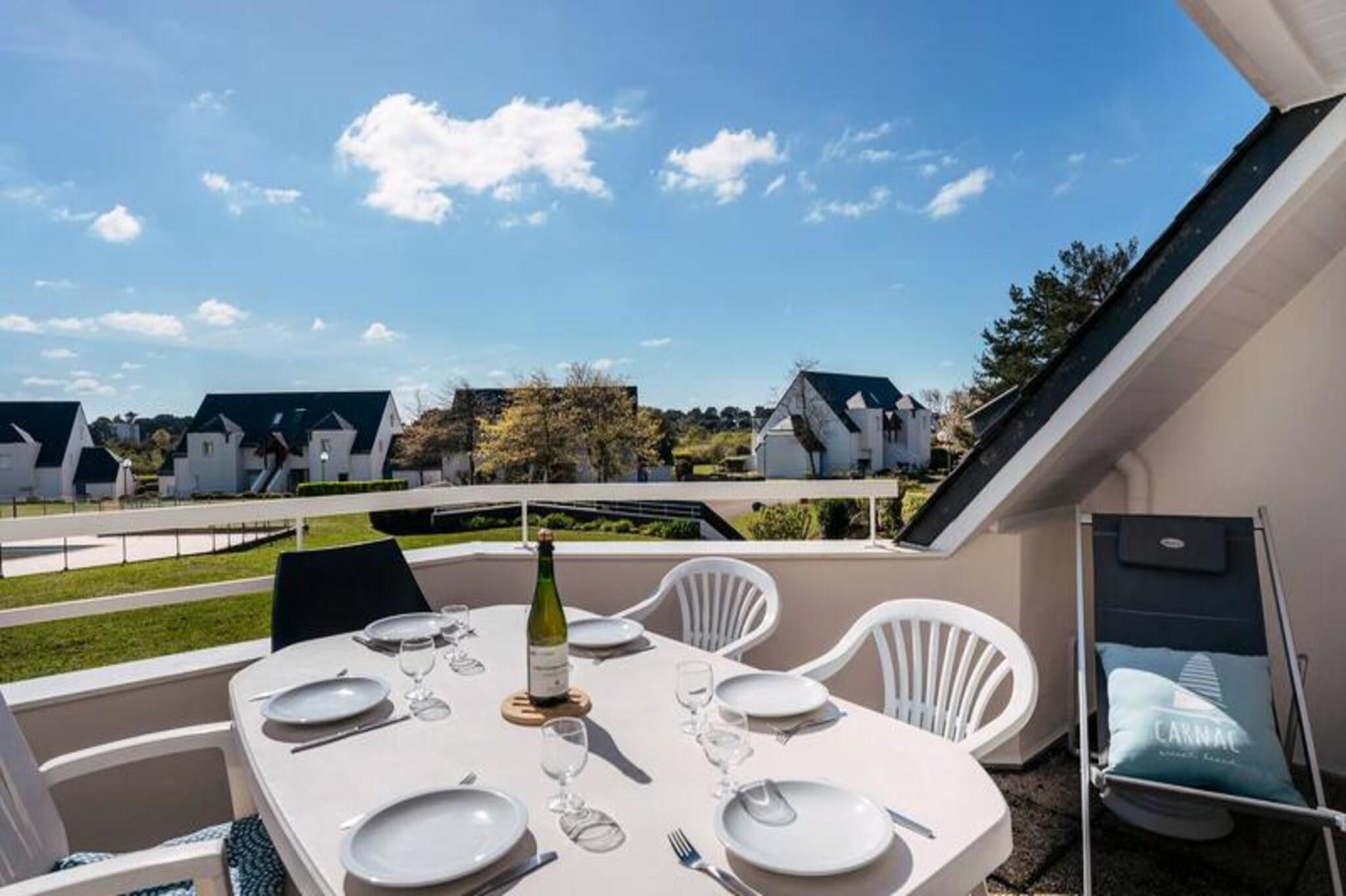 Denne charmerende 3-værelses duplex lejlighed (50m²) til 6 personer ligger kun 1 km fra Légenèse Strand, Thalassoterapi og byen Carnac. Lejligheden er beliggende i det rolige boligkompleks "Le Domaine des Tadornes" (Bygning G, 1. sal, dør 78), med en opvarmet fælles swimmingpool tilgængelig fra midten af ??juni til midten af ??september. Stuen har en spiseplads med bord og stole, et opholdsområde med et tv og en sovesofa til to personer. Rummet åbner ud til en sydøstvendt altan med havemøbler, der giver en behagelig udsigt til swimmingpoolen og boligens have. Det fuldt udstyrede køkken omfatter en 4-brænder kogeplade, miniovn, mikroovn, køleskab og opvaskemaskine. Der er også et separat toilet på denne etage. Ovenpå finder du to hyggelige soveværelser - et med dobbeltseng (140 cm) og et andet med to enkeltsenge (80 cm). Lejligheden byder også på et badeværelse og et andet toilet. En privat garage (nr. 78) er inkluderet for din bekvemmelighed, og kæledyr er velkomne mod et ekstra gebyr på EURO4/dag. Yderligere tilgængelige tjenester inkluderer en valgfri slutrengøring for 95 EURO, leje af sengetøj, udstyr til børnepasning og en wifi-miniboks. En forbrugspakke er ekstra, undtagen mellem 23. maj og 20. september 2025. Varme- og energiomkostninger er inkluderet i ugeprisen under dit ophold.