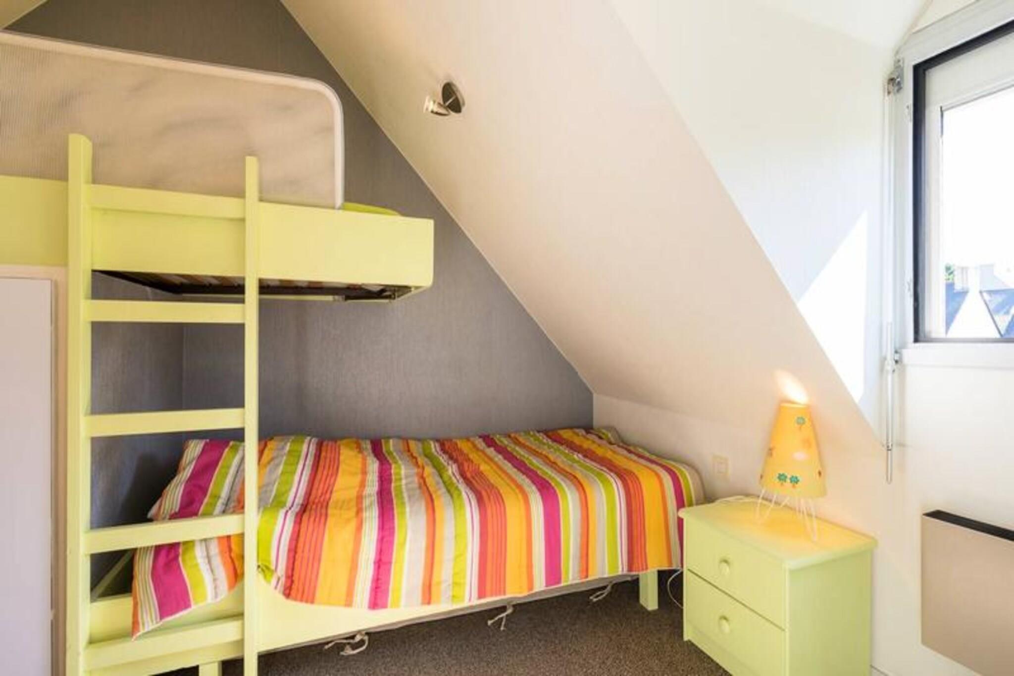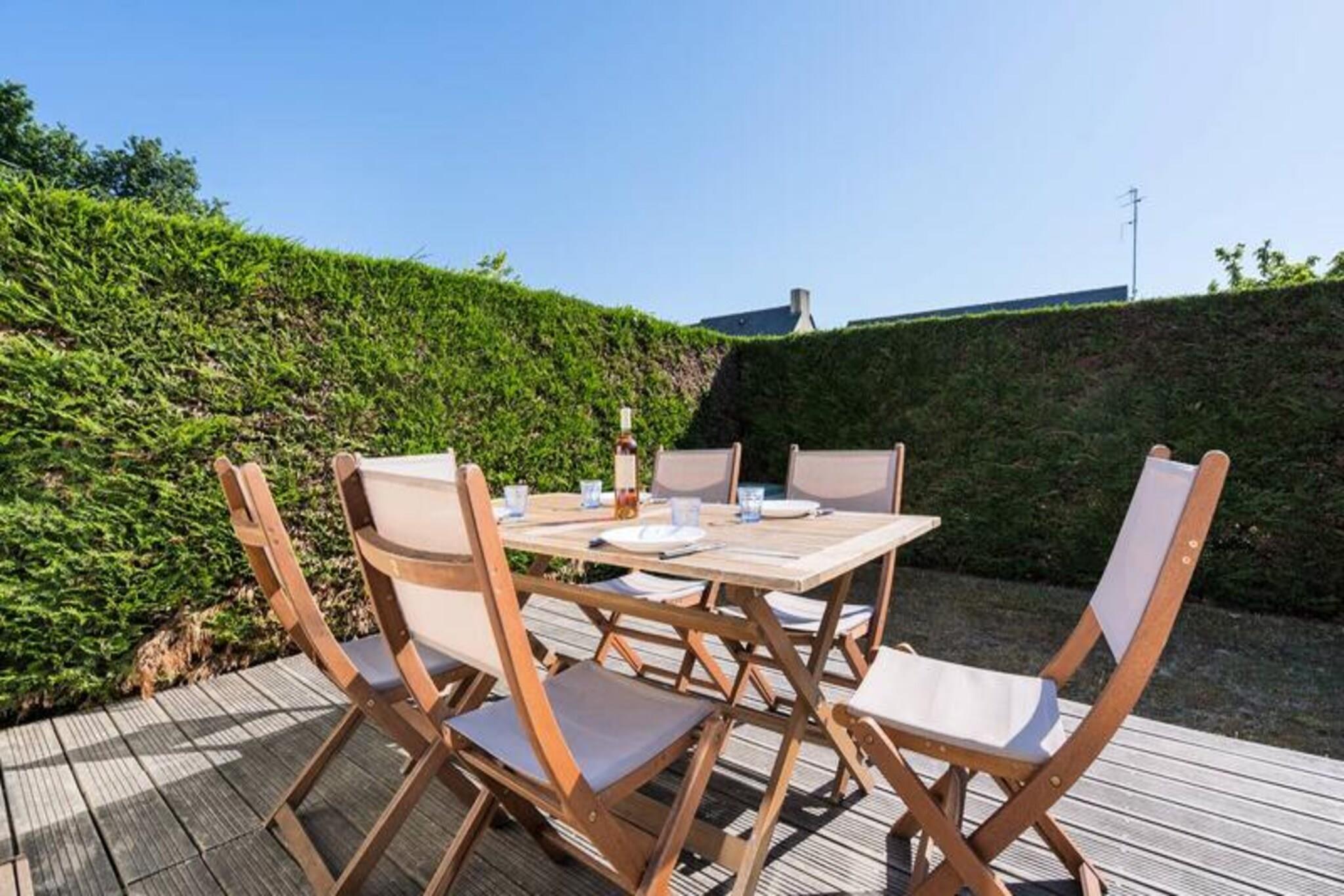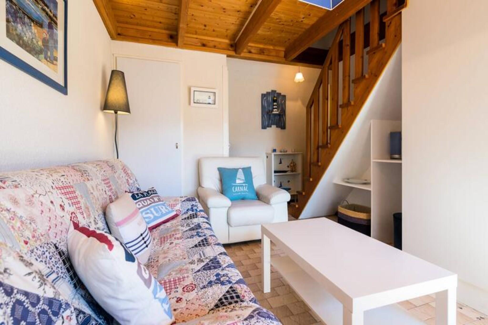 Dette feriehus på 45 m² ligger i en rolig bolig og er perfekt til op til 4 gæster. Det har et åbent soveværelse med to enkeltkøjesenge og et separat soveværelse med en dobbeltseng, der tilbyder komfort og privatliv. Den hyggelige opholdsstue indeholder en sofa, lænestol og tilsluttet tv, der fører til en østvendt terrasse og en lille lukket have med udendørsmøbler, liggestole og en elektrisk grill. Denne ikke-ryger ejendom omfatter gratis trådløs internetadgang og privat parkering, hvor kæledyr ikke er tilladt, hvilket sikrer et fredeligt ophold for alle gæster. Ideelt beliggende 800 meter fra butikker og 1 kilometer fra den smukke Grande Plage de Carnac, er boligen en god base for at udforske området. Nyd sandstranden, lokale caféer og pulserende markeder med friske råvarer og regionale specialiteter. Området byder på masser af aktiviteter, herunder vandsport, cykling og naturskønne vandreture, der giver underholdning for alle aldre. Huset er designet til bekvemmelighed og indeholder et veludstyret køkken med en 3-brænder kogeplade, kombineret mikrobølgeovn, køleskab, opvaskemaskine og vaskemaskine. Et pulver værelse og separat toilet tilføjer til komforten. Valgfri tjenester, såsom leje af sengetøj og slutrengøring, er tilgængelige mod et gebyr. En børnesikkerhedslåge øverst på trappen gør det familievenligt, og privat parkering sikrer problemfri adgang.