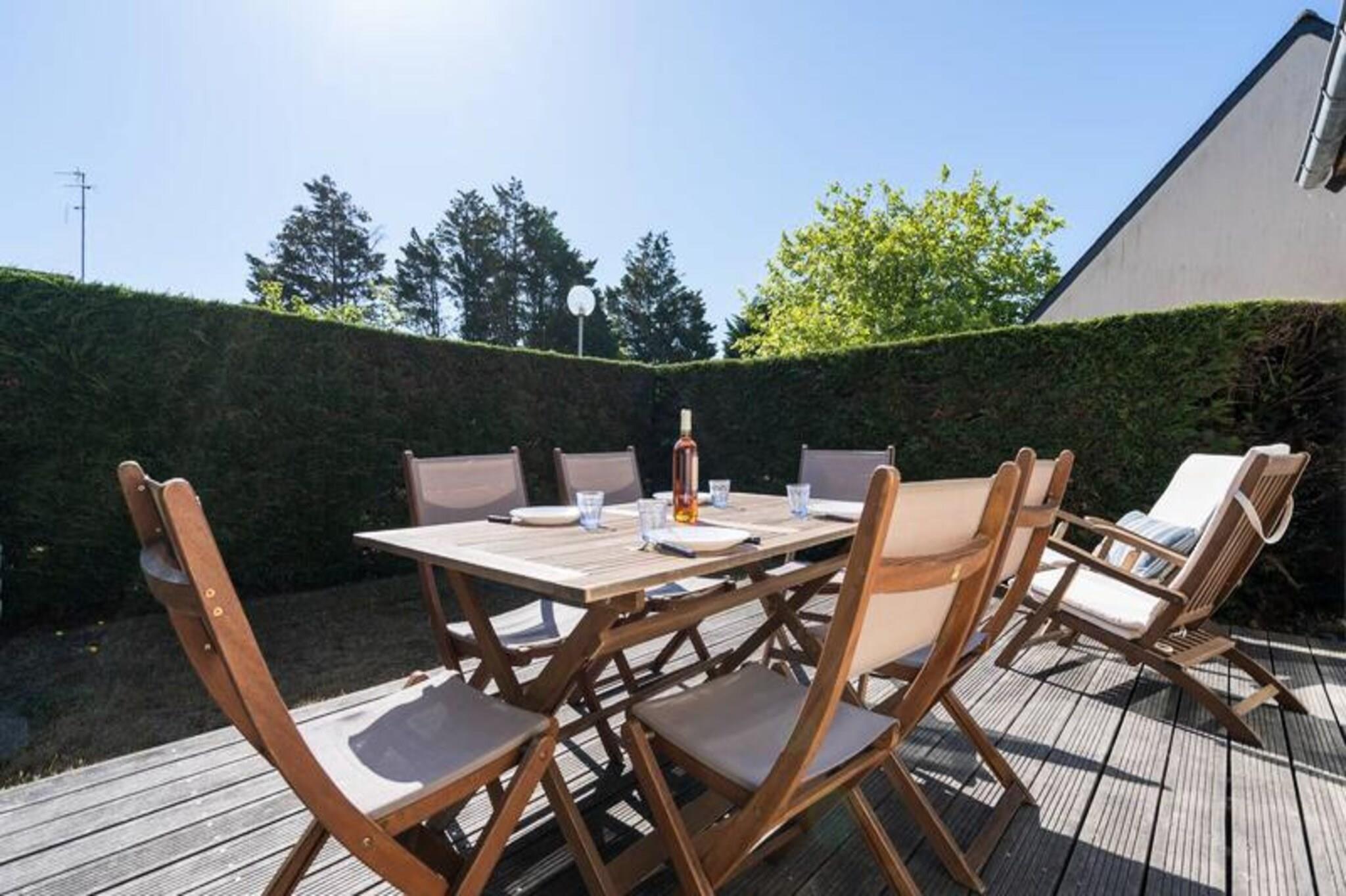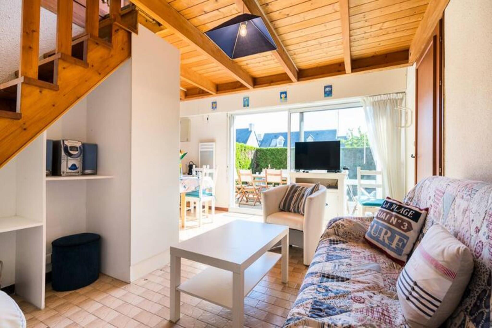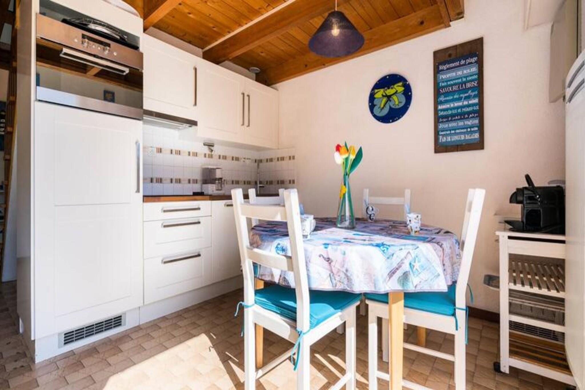 Dette feriehus på 45 m² ligger i en rolig bolig og er perfekt til op til 4 gæster. Det har et åbent soveværelse med to enkeltkøjesenge og et separat soveværelse med en dobbeltseng, der tilbyder komfort og privatliv. Den hyggelige opholdsstue indeholder en sofa, lænestol og tilsluttet tv, der fører til en østvendt terrasse og en lille lukket have med udendørsmøbler, liggestole og en elektrisk grill. Denne ikke-ryger ejendom omfatter gratis trådløs internetadgang og privat parkering, hvor kæledyr ikke er tilladt, hvilket sikrer et fredeligt ophold for alle gæster. Ideelt beliggende 800 meter fra butikker og 1 kilometer fra den smukke Grande Plage de Carnac, er boligen en god base for at udforske området. Nyd sandstranden, lokale caféer og pulserende markeder med friske råvarer og regionale specialiteter. Området byder på masser af aktiviteter, herunder vandsport, cykling og naturskønne vandreture, der giver underholdning for alle aldre. Huset er designet til bekvemmelighed og indeholder et veludstyret køkken med en 3-brænder kogeplade, kombineret mikrobølgeovn, køleskab, opvaskemaskine og vaskemaskine. Et pulver værelse og separat toilet tilføjer til komforten. Valgfri tjenester, såsom leje af sengetøj og slutrengøring, er tilgængelige mod et gebyr. En børnesikkerhedslåge øverst på trappen gør det familievenligt, og privat parkering sikrer problemfri adgang.