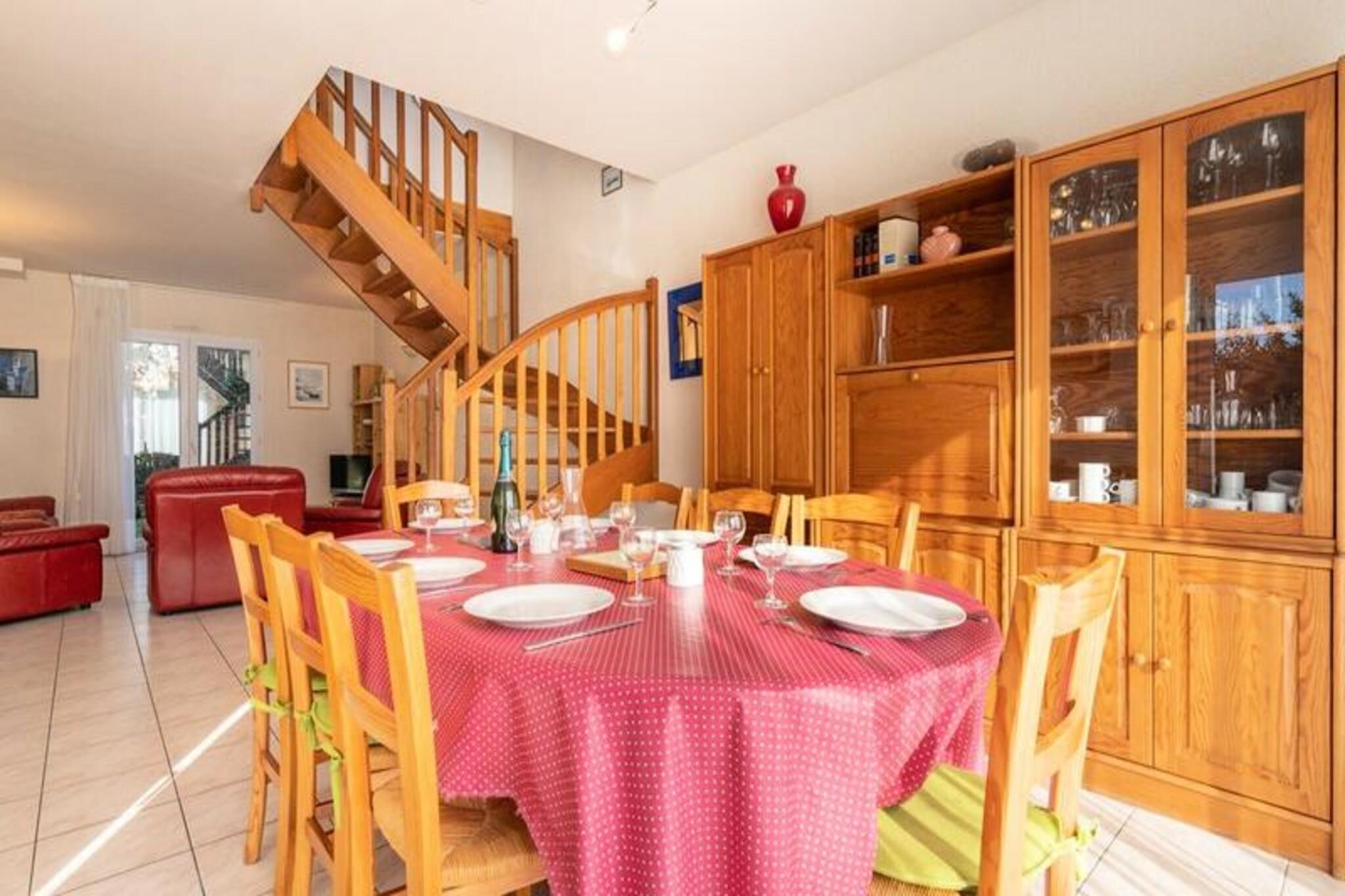 Denne rummelige 5-værelses villa tilbyder et behageligt ophold for op til 8 gæster, hvilket gør den ideel til familier eller grupper. Villaen har fire hyggelige soveværelser, heraf to med dobbeltsenge (140 cm) og to med enkeltsenge (90 cm). Et soveværelse har også en privat vask område. I stuen er der spiseplads og opholdsstue med lænestole, sofa og tv, alt sammen med udgang til en sydvendt terrasse med havemøbler og grill. Villaen er kæledyrsvenlig og tillader et lille dyr mod et gebyr på 4EURO pr. dag og tilbyder parkering i den lukkede gård samt en garage med vaskemaskine. Beliggende kun 700 meter fra landsbyens centrum og 1,3 km fra den fantastiske Grande Plage de Carnac, har denne villa en førsteklasses beliggenhed for at udforske området. Gæsterne kan nyde nem adgang til lokale butikker, caféer og markeder, med stranden og den naturskønne kystlinje kun en kort gåtur væk. Uanset om du foretrækker at slappe af ved stranden eller udforske den maleriske landsby, er der noget for enhver smag inden for rækkevidde. Villaen har et veludstyret køkken med en 4-brænder elektrisk kogeplade, en kombineret mikrobølgeovn, et køleskab med fryser og en opvaskemaskine, perfekt til at tilberede måltider under dit ophold. Der er også et separat pulver værelse og toilet i stueetagen, og et komplet badeværelse ovenpå. Gratis Wi-Fi sikrer, at du forbliver forbundet, og varme- og energiomkostningerne er inkluderet for din bekvemmelighed. Valgfrie tjenester omfatter slutrengøring og leje af sengetøj, hvilket giver ekstra komfort til dit ophold.
