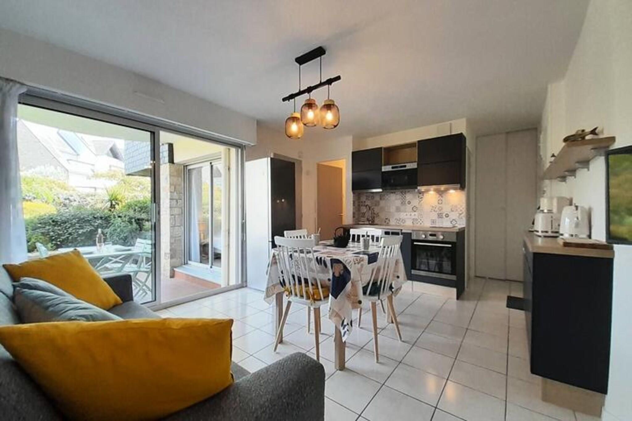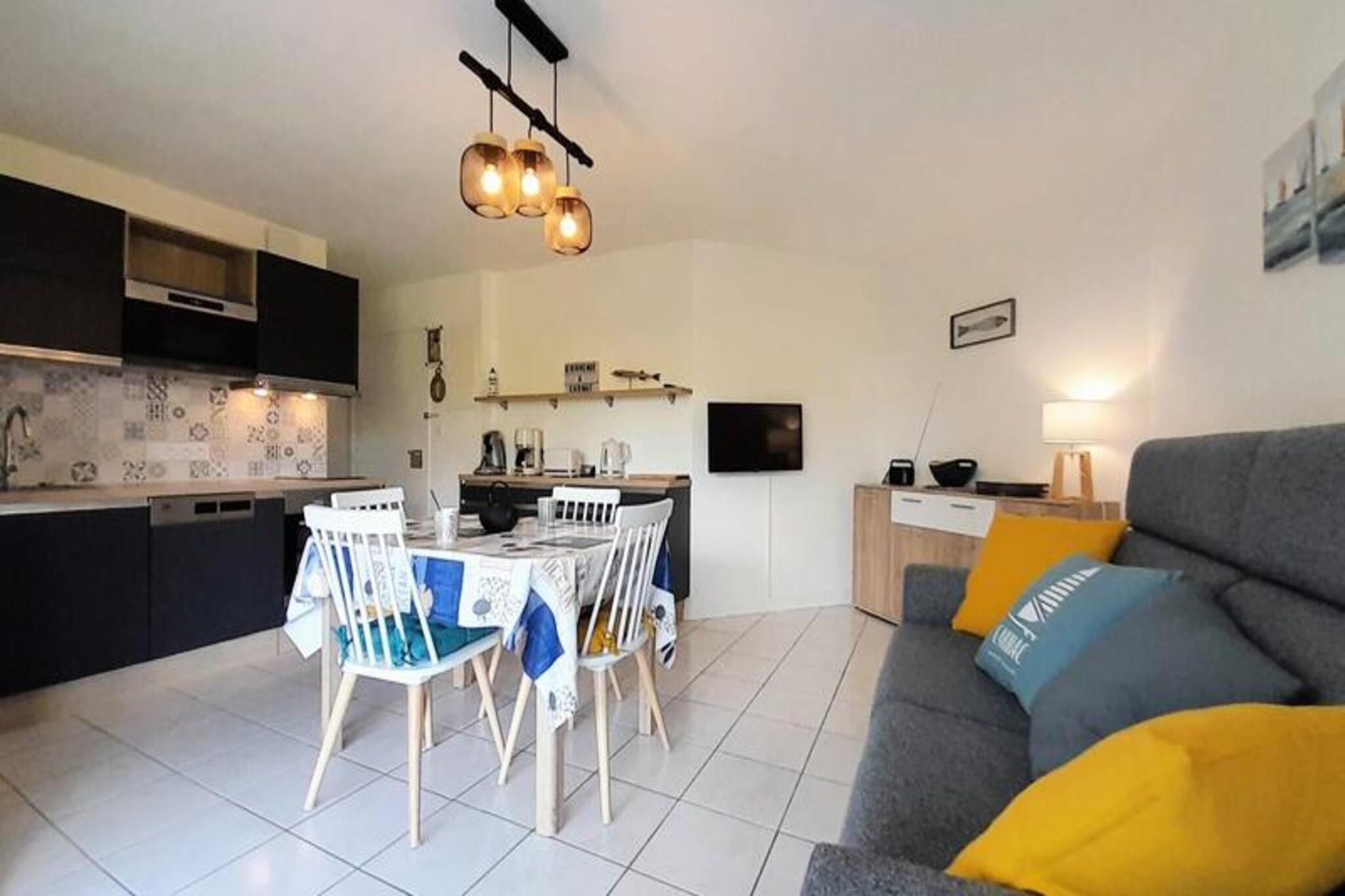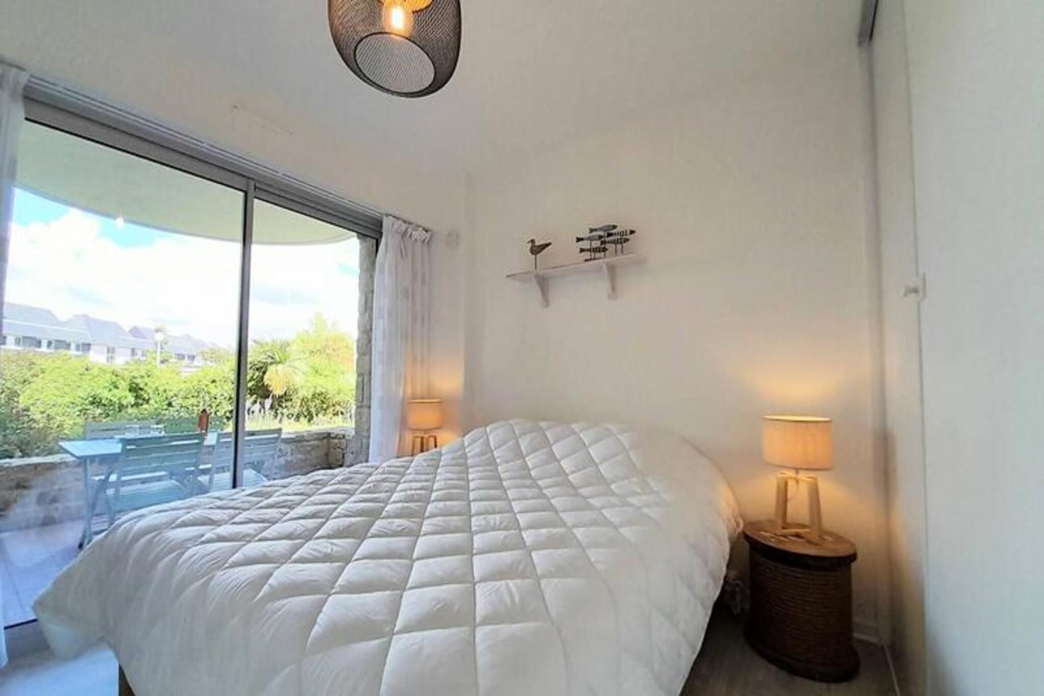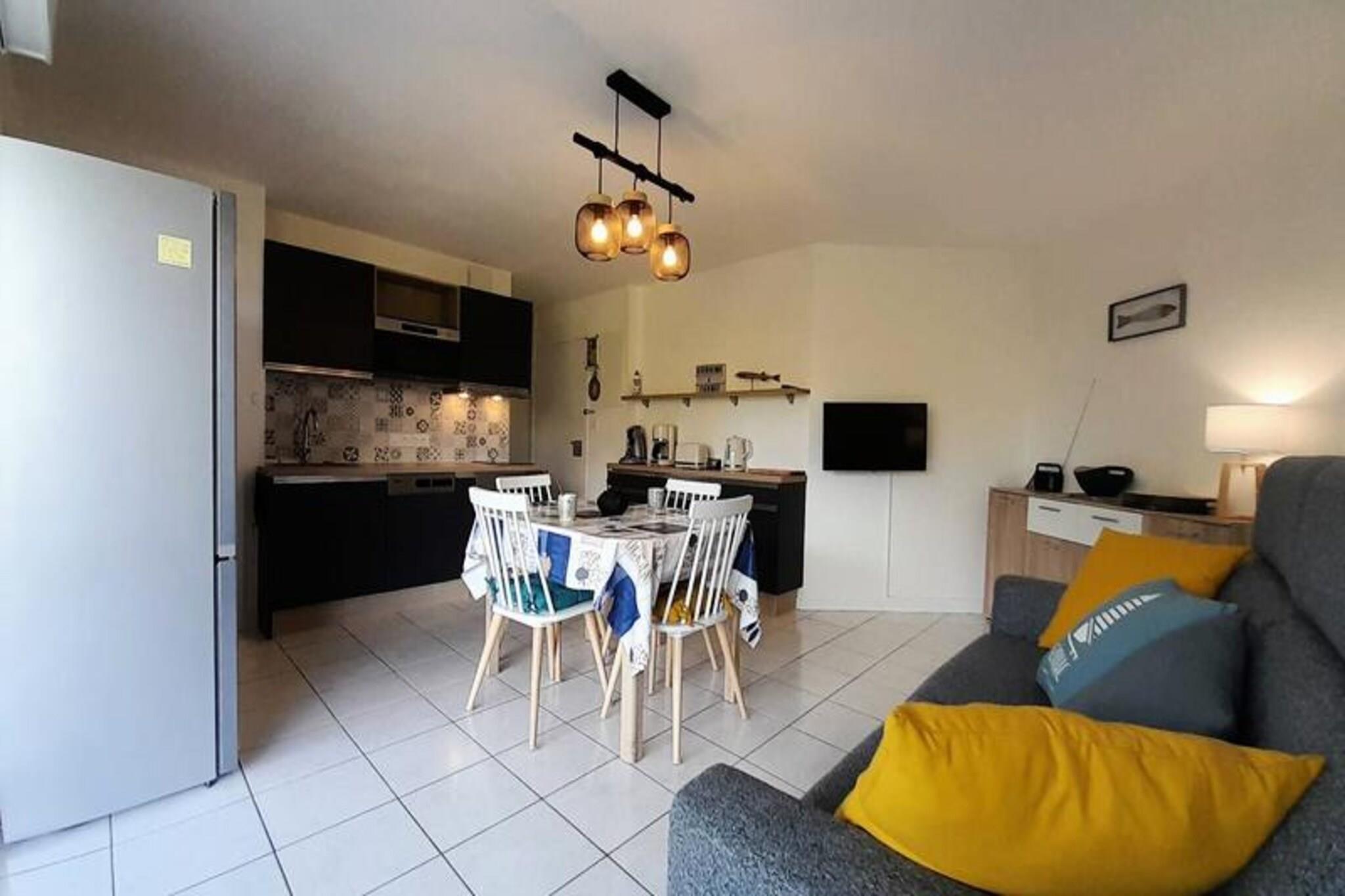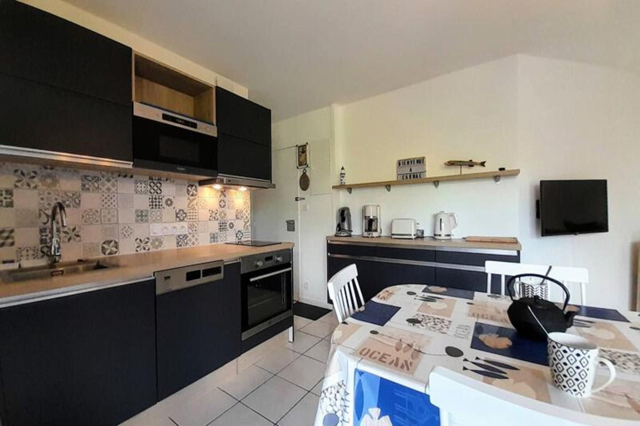 This charming 2-room apartment, located in the OCEANIA 2 Residence, is perfect for a relaxing getaway for two. The accommodation features a comfortable living room with a sofa and TV, as well as a dining area. The bedroom offers a cozy double bed (160 cm) and opens directly onto the private terrace, perfect for enjoying the fresh air. The shower room includes a washing machine, and there is a separate WC for added convenience. Please note that pets are not allowed on the property, ensuring a peaceful and allergy-friendly environment. The apartment is ideally located just 500 meters from the renowned Grande Plage and Légenèse Beach, making it perfect for beach lovers. Additionally, guests can visit the nearby Yacht Club and Thalassotherapy center for ultimate relaxation. The area also offers a variety of cafes, markets, and restaurants, allowing you to enjoy the local cuisine and culture. Whether you're interested in outdoor activities or simply strolling around, there is something for everyone just a short walk away. For your convenience, the apartment is equipped with a fully functional kitchen, including a 2-burner induction hob, oven, microwave, fridge/freezer, and a dishwasher. The living area opens to a South-East facing terrace with garden furniture, ideal for enjoying meals outdoors. The residence provides parking, and optional services such as end-of-stay cleaning, linen rental, childcare equipment, and Wi-Fi access are available upon request for added comfort during your stay.
