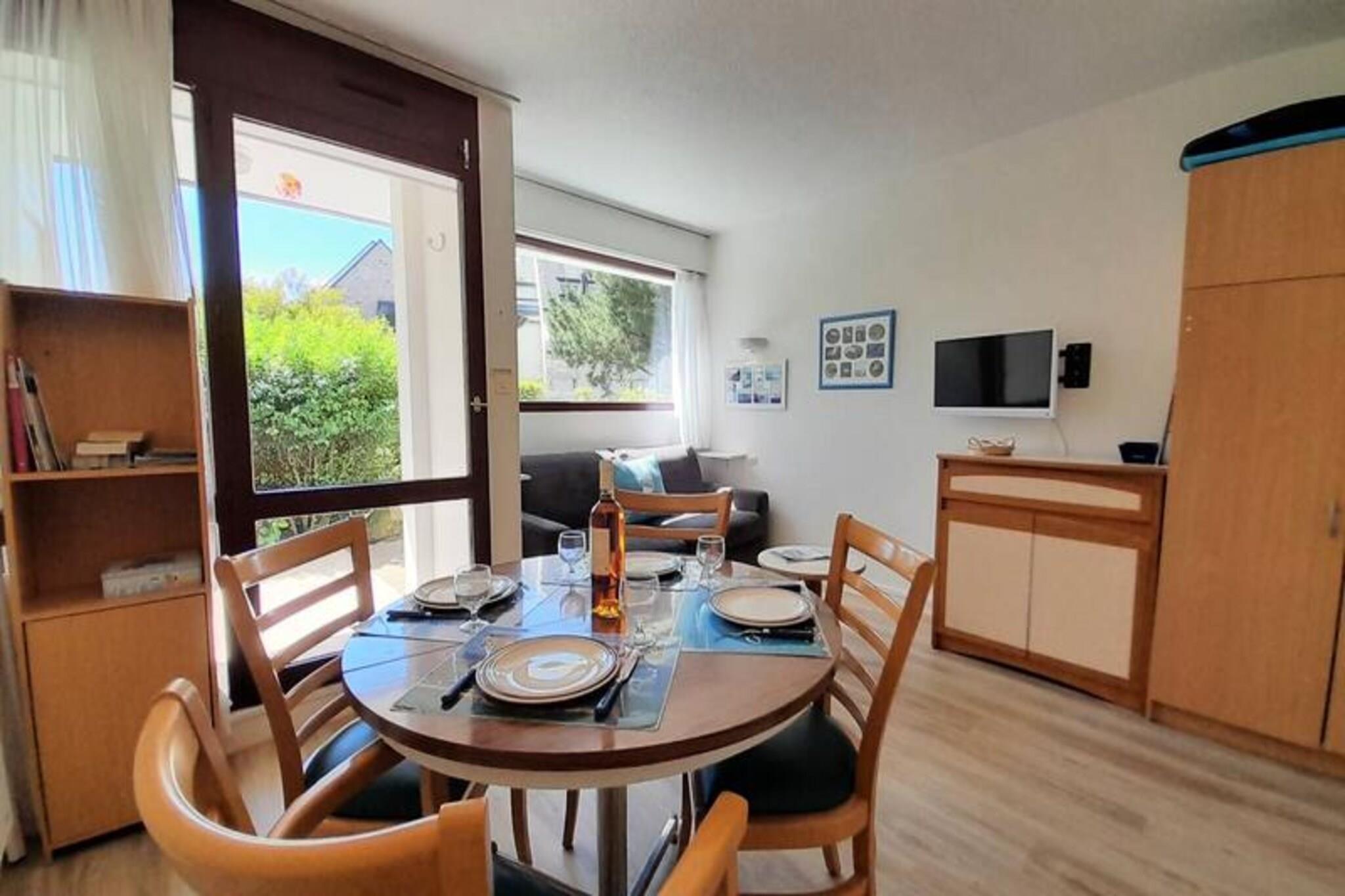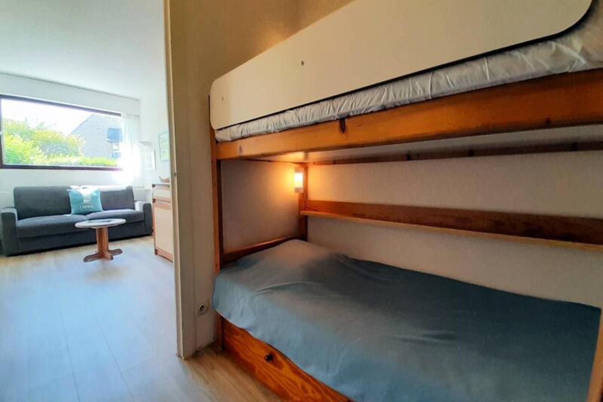 Denne hyggelige kabine-studie er ideel til op til 4 personer, og byder på et soveområde med to enkeltkøjesenge og en stue med en 140 cm sovesofa med plads til 2 personer. Lejligheden er kæledyrsvenlig og tillader et dyr mod et tillæg på EURO 3 om dagen. Det ligger i stueetagen af ??en bolig og inkluderer adgang til en opvarmet swimmingpool, åben fra midten af ??april til midten af ??september. Studiet er perfekt til familier eller små grupper, der leder efter en afslappende ferie ved stranden. Boligen er bekvemt placeret kun 350 meter fra Carnac Grande Plage og 300 meter fra Thalassoterapi-centret, hvilket gør det til et ideelt sted for dem, der ønsker at nyde stranden eller nyde spa-behandlinger. Offentlig parkering er tilgængelig i nærheden, og området er fyldt med caféer, butikker og lokale attraktioner, der tilbyder en perfekt blanding af afslapning og bekvemmelighed. Indvendigt byder studiet på et opholdsområde i åbent plan med spisebord og et veludstyret køkken med opvaskemaskine, køleskab, mikroovn og en elektrisk kogeplade med 2 brændere. Bruserummet har et toilet, der giver alle de nødvendige faciliteter til et behageligt ophold. Gæsterne kan slappe af på den vestvendte terrasse, møbleret med havemøbler, og nyde de hyggelige omgivelser. Valgfrie tjenester såsom slutrengøring og leje af sengetøj er tilgængelige for ekstra bekvemmelighed.